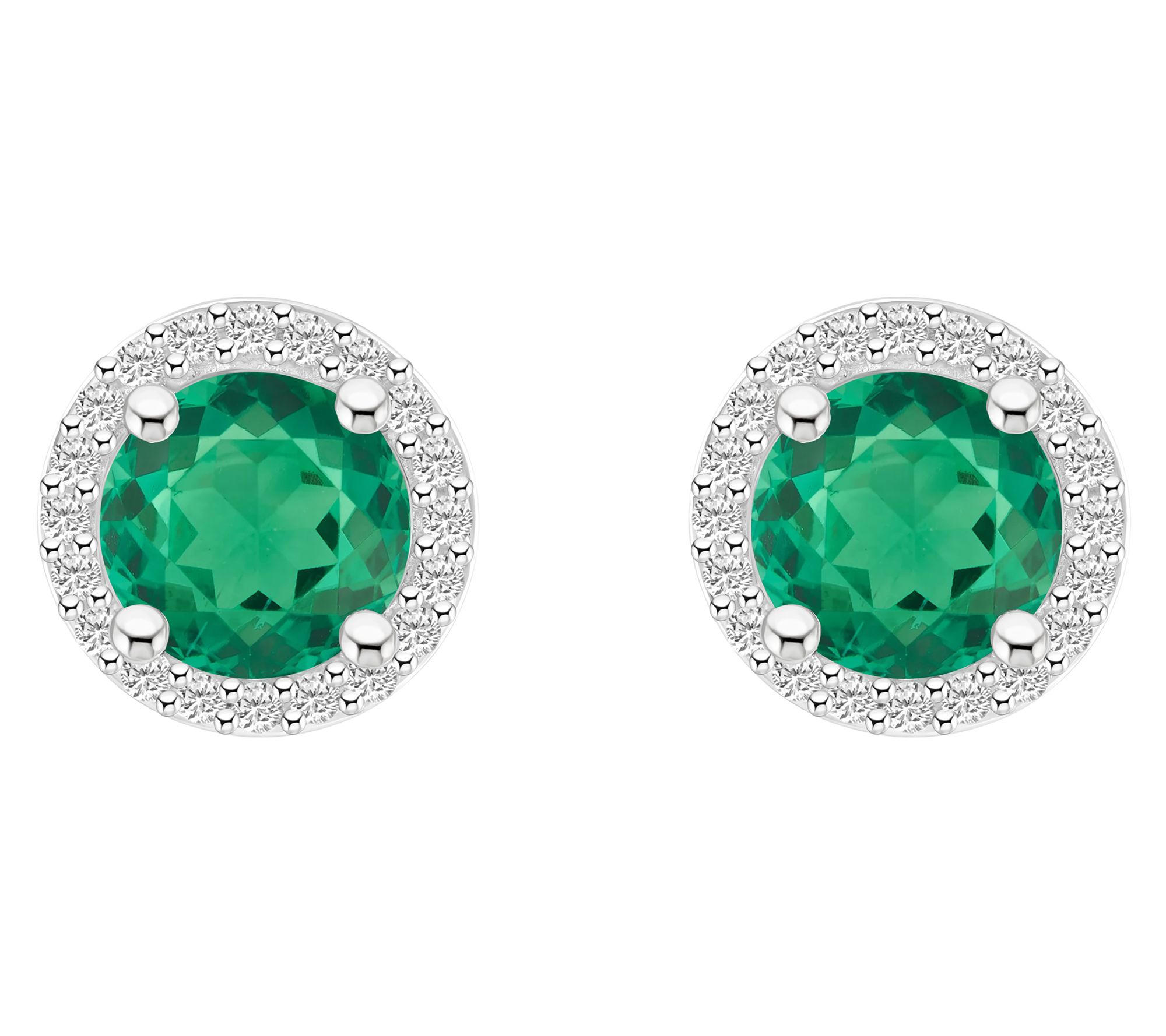 Attractively designed for every occasion, these round-cut earrings feature created gemstones surrounded by luminous created white sapphire halos. From Affinity® Gems.