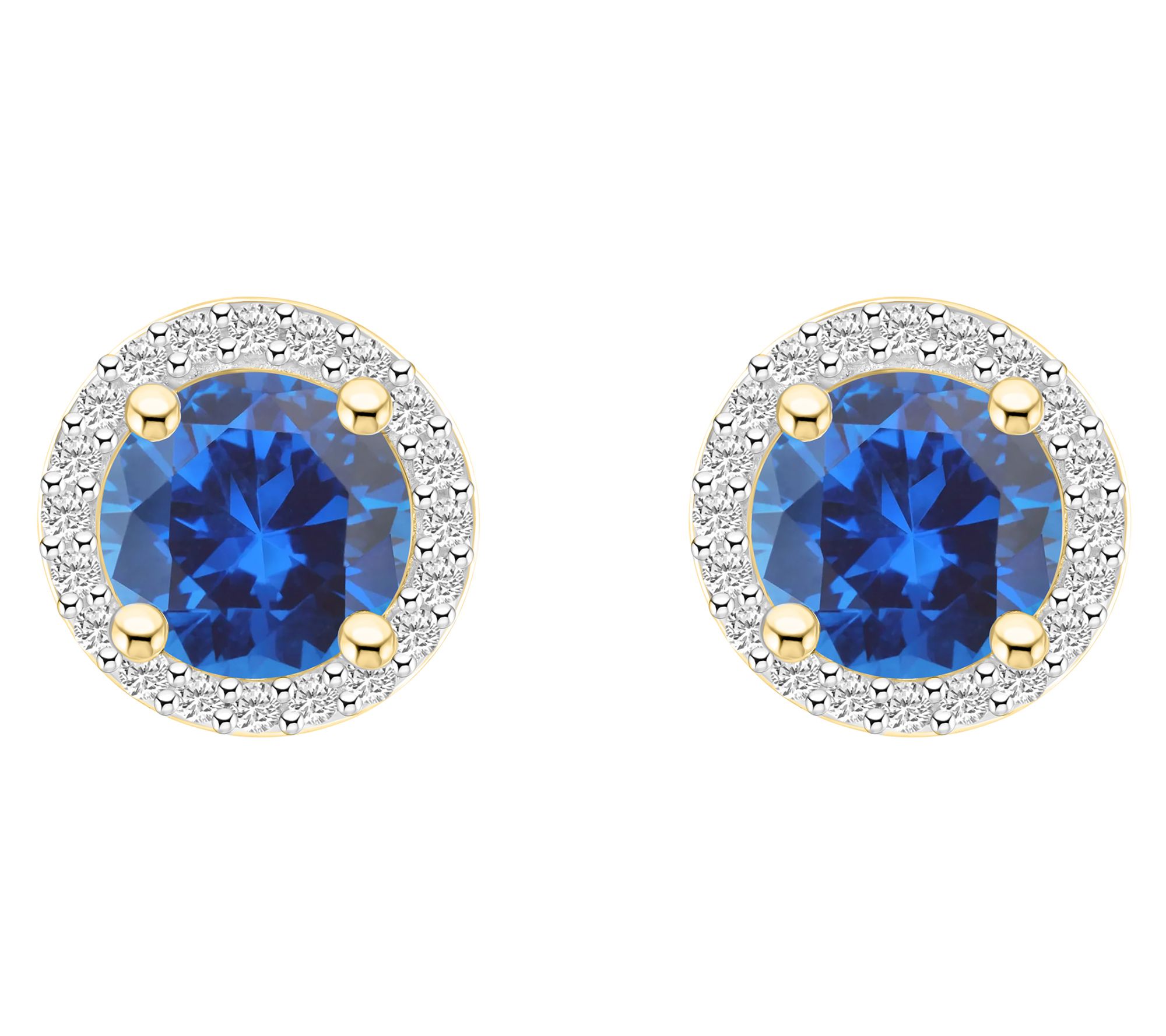 Elevate your style with these stunning stud earrings featuring a pair of created round-cut gemstones delicately surrounded by a halo of created white sapphires. From Affinity® Gems.