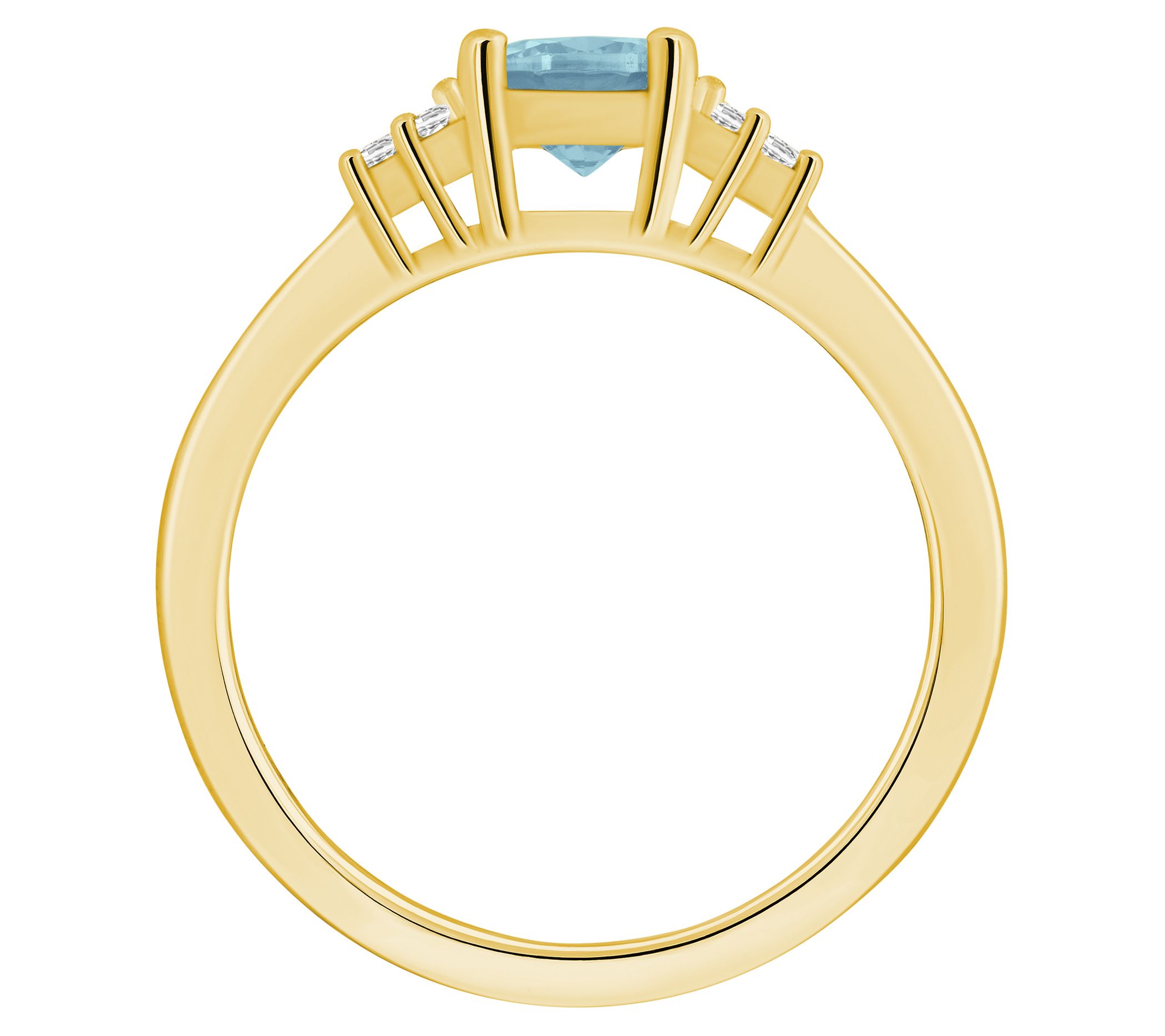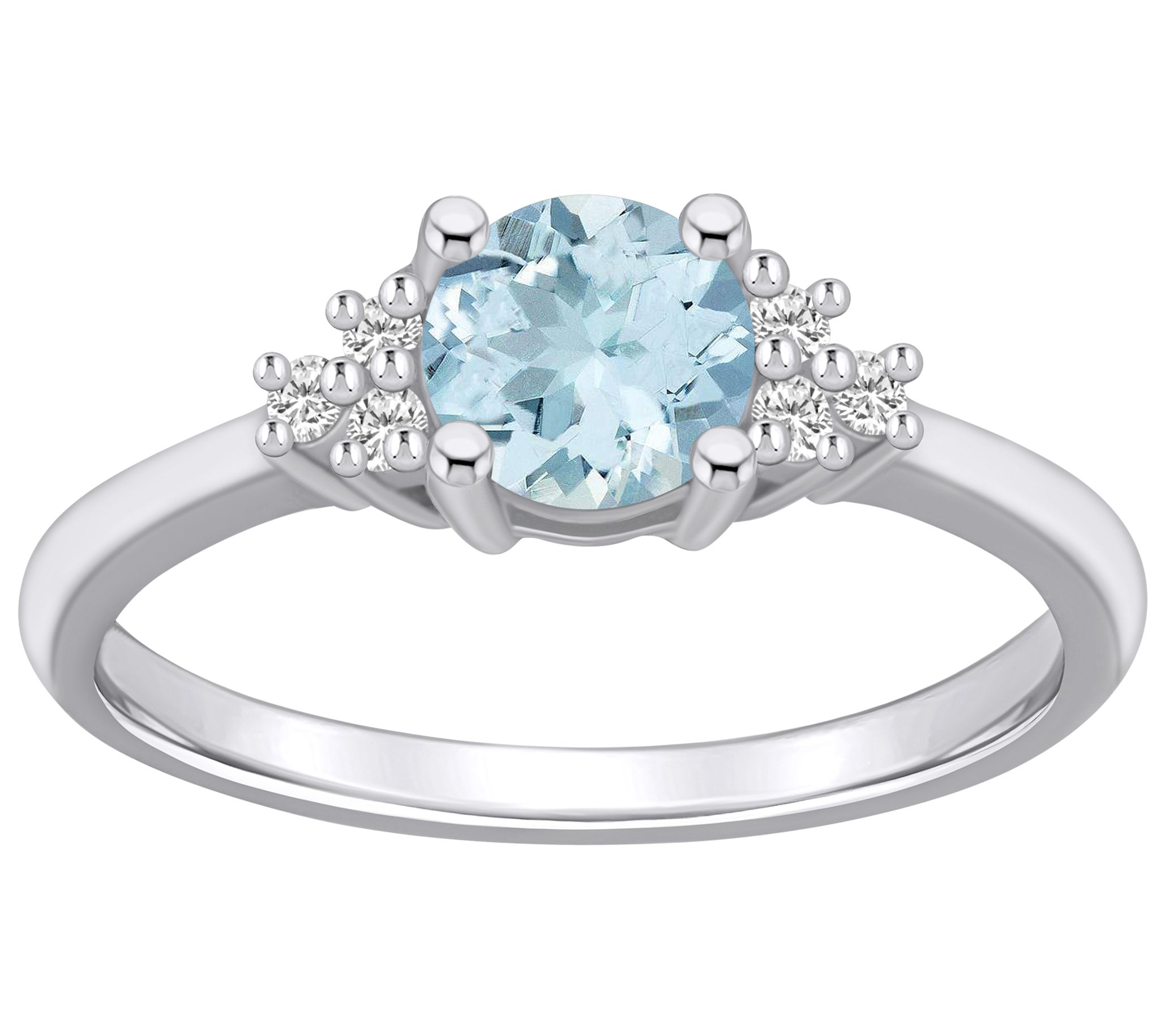 - Center round-cut aquamarine with three diamonds on each side
