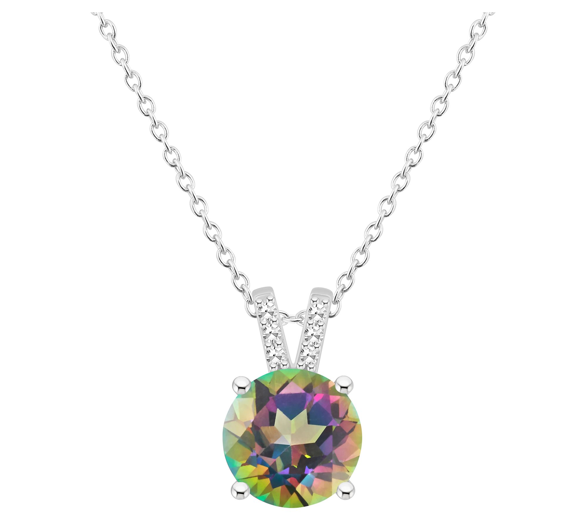 Affinity Gems Round Topaz & Diamond Pendant w/Chain, Sterling