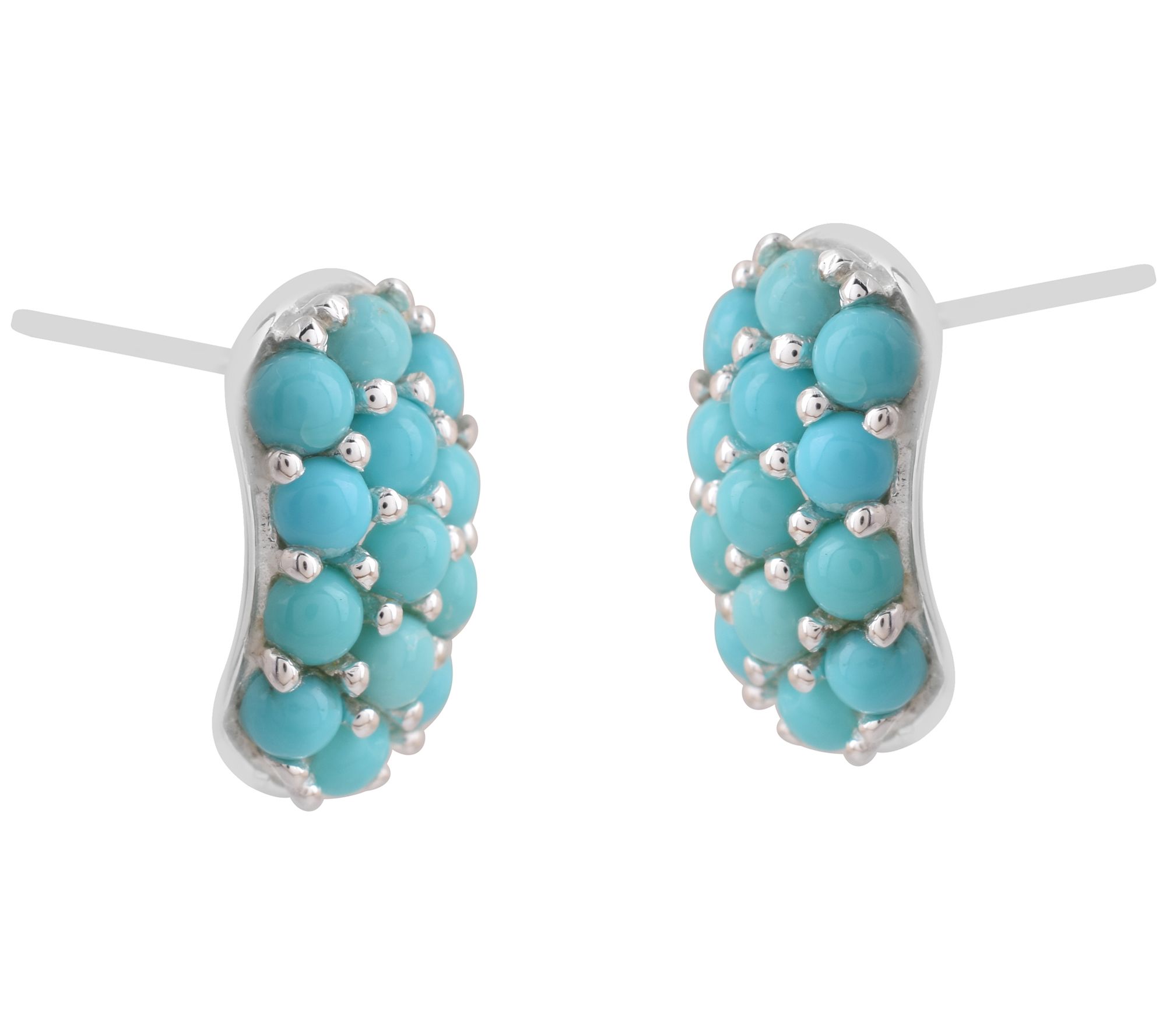 Make a statement with the elegant design of these elongated stud earrings set with round turquoise stones. From Affinity Gems.