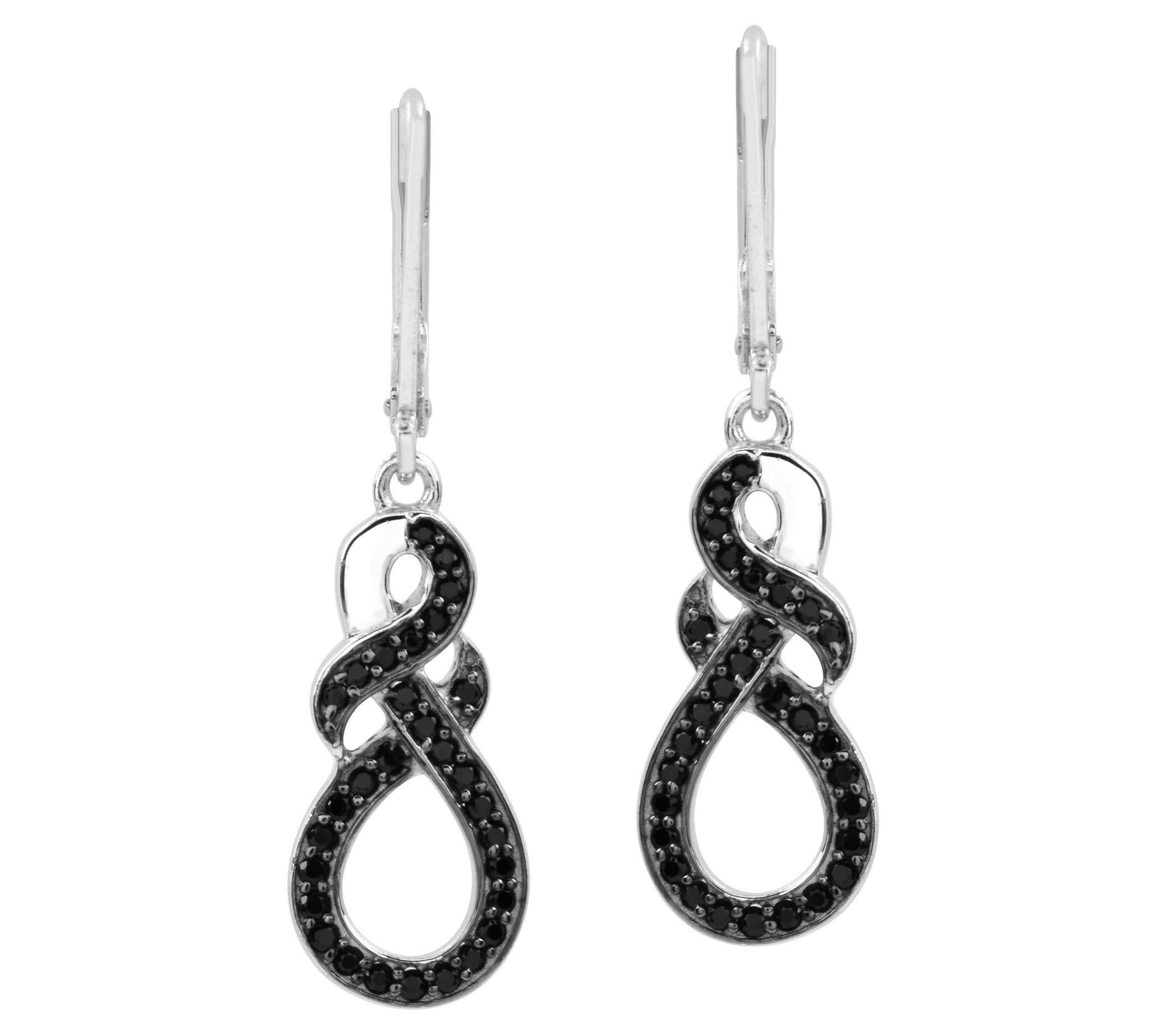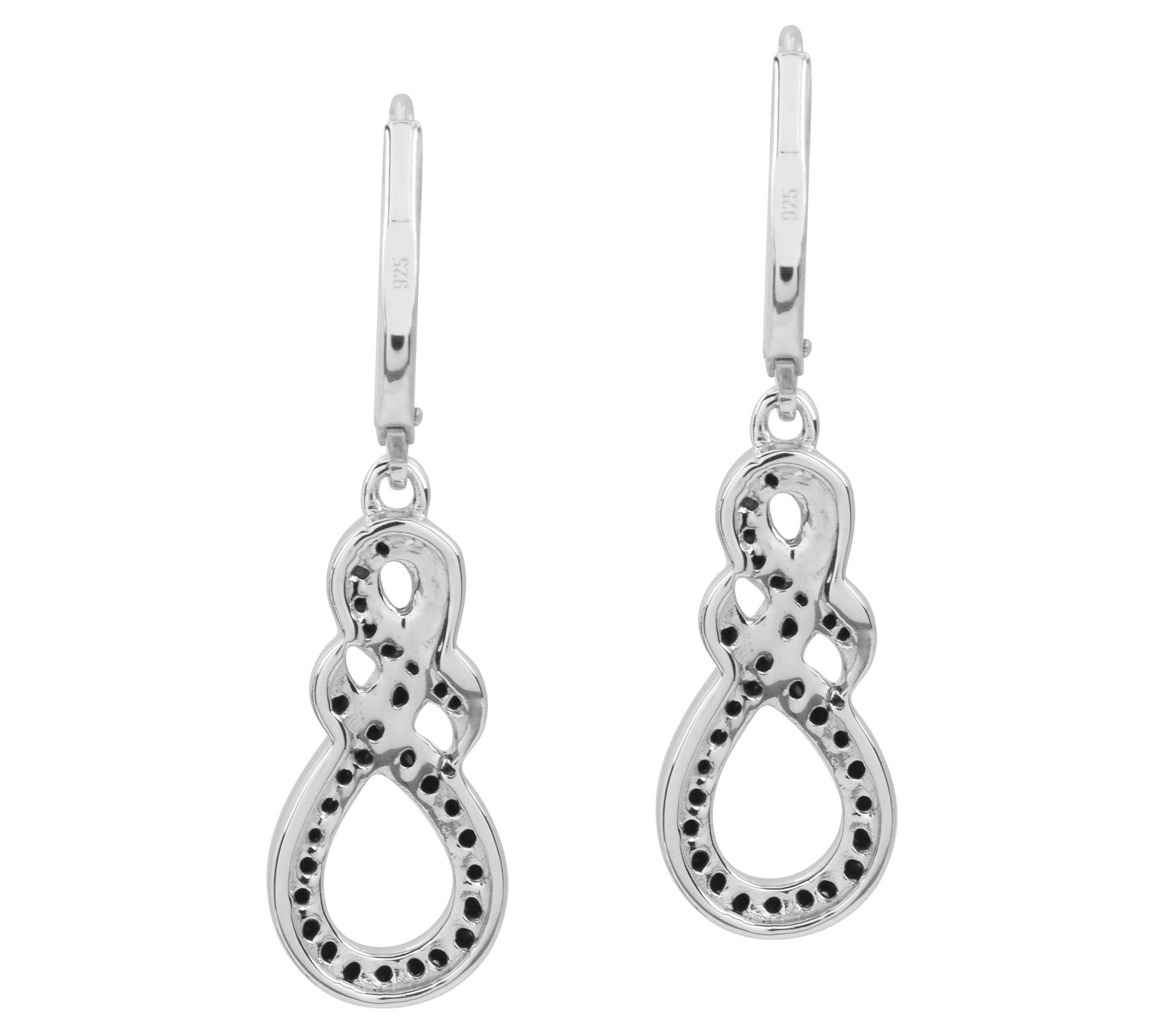 • Dangle design with round-cut, prong-set black spinel gemstones