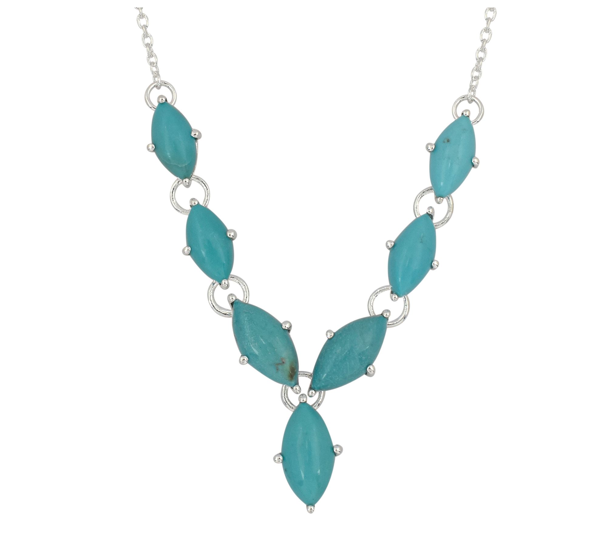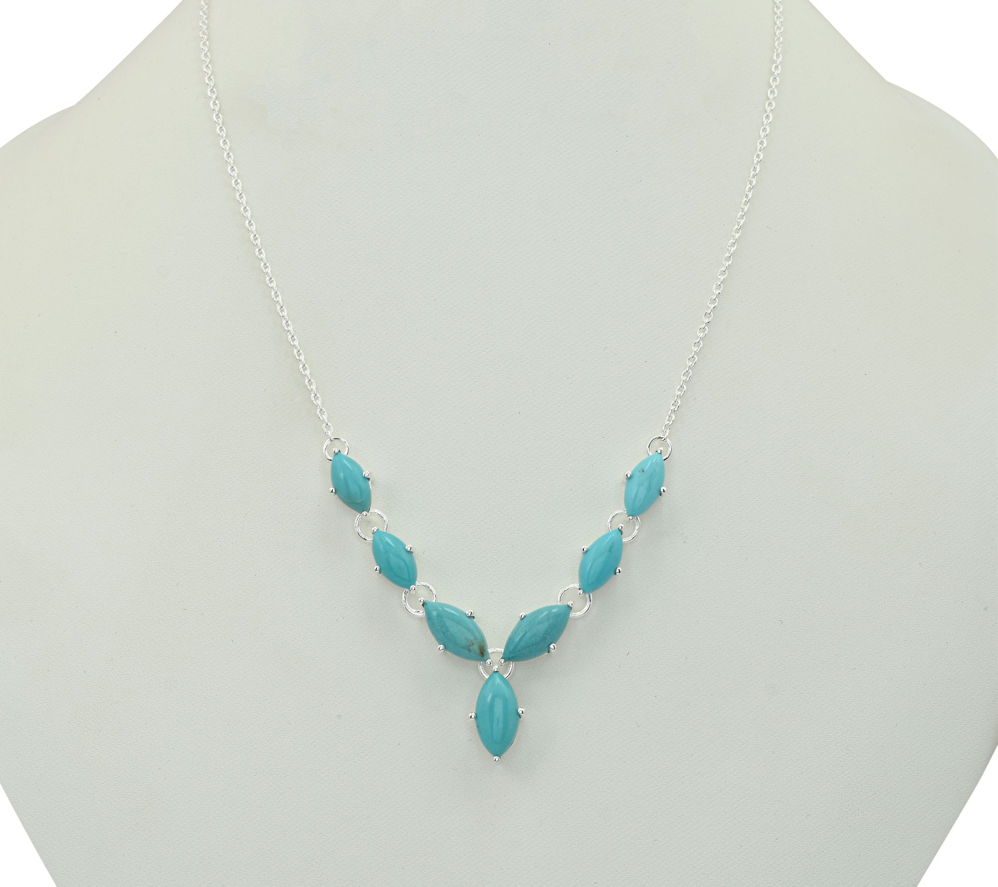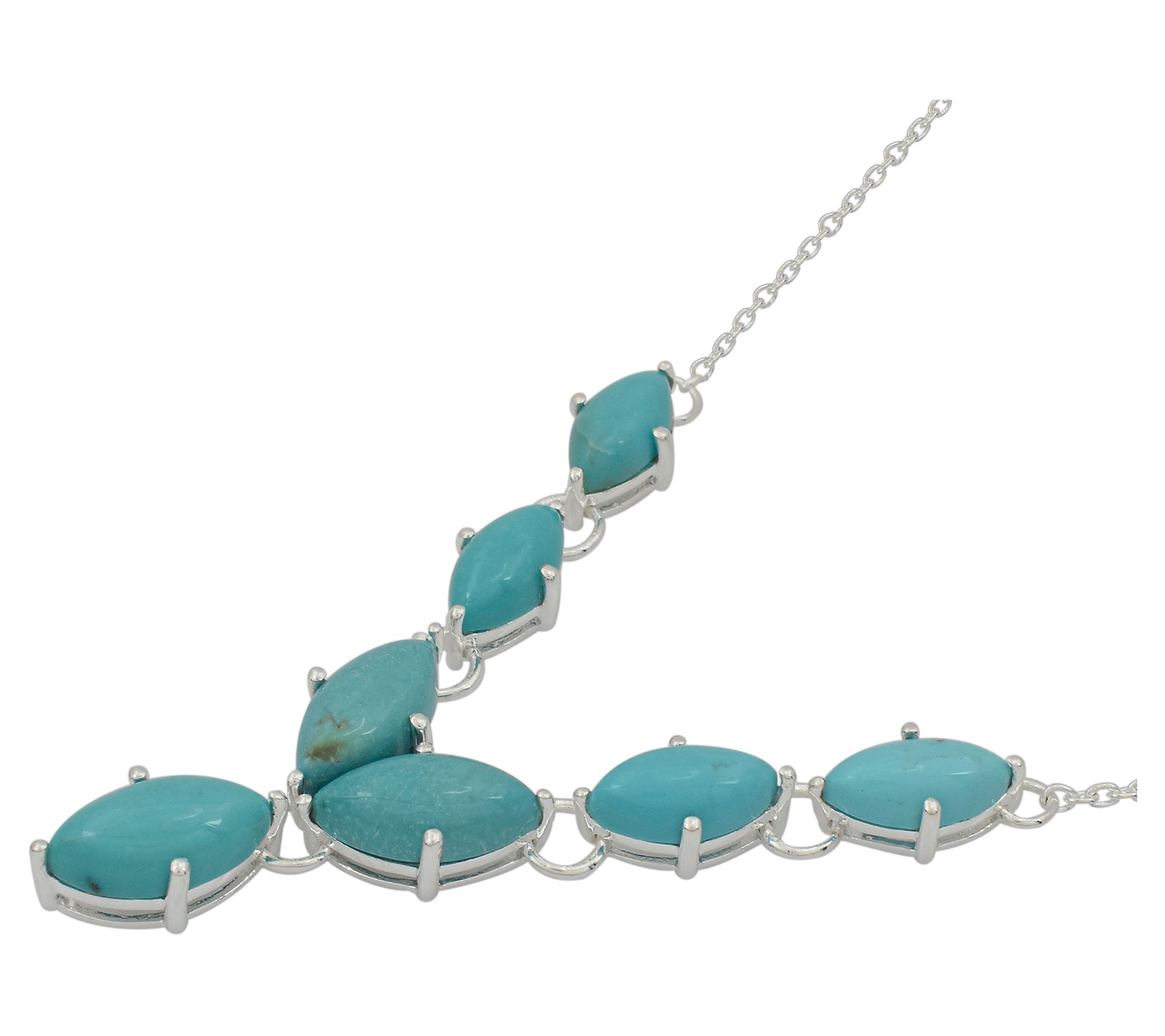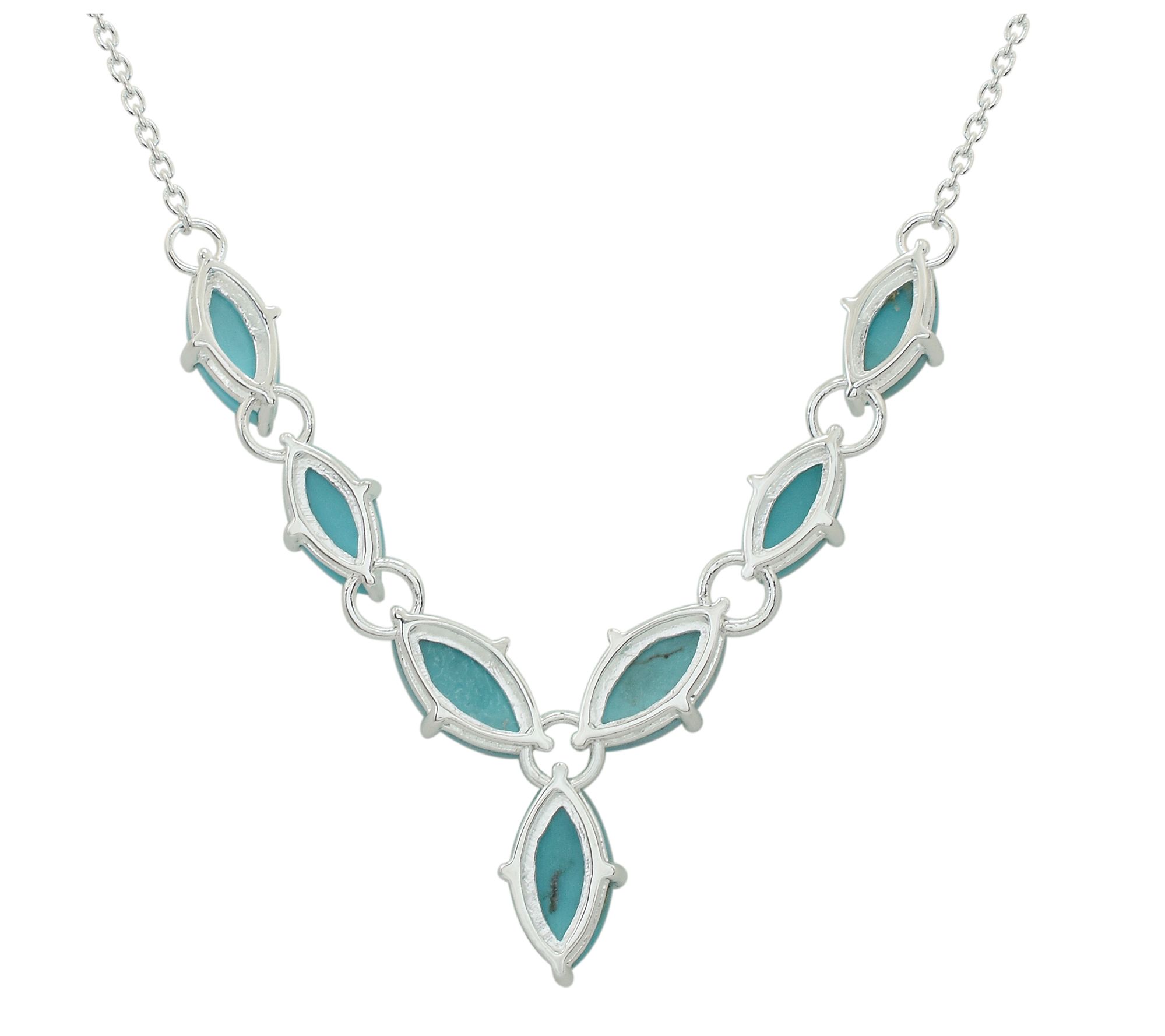 Adorn yourself with this striking necklace, featuring exquisite Sleeping Beauty turquoise in marquise-shaped stations. Perfect for any occasion, the high-polished piece will elevate your jewelry collection with its vibrant color and sleek design. From Affinity Gems®.