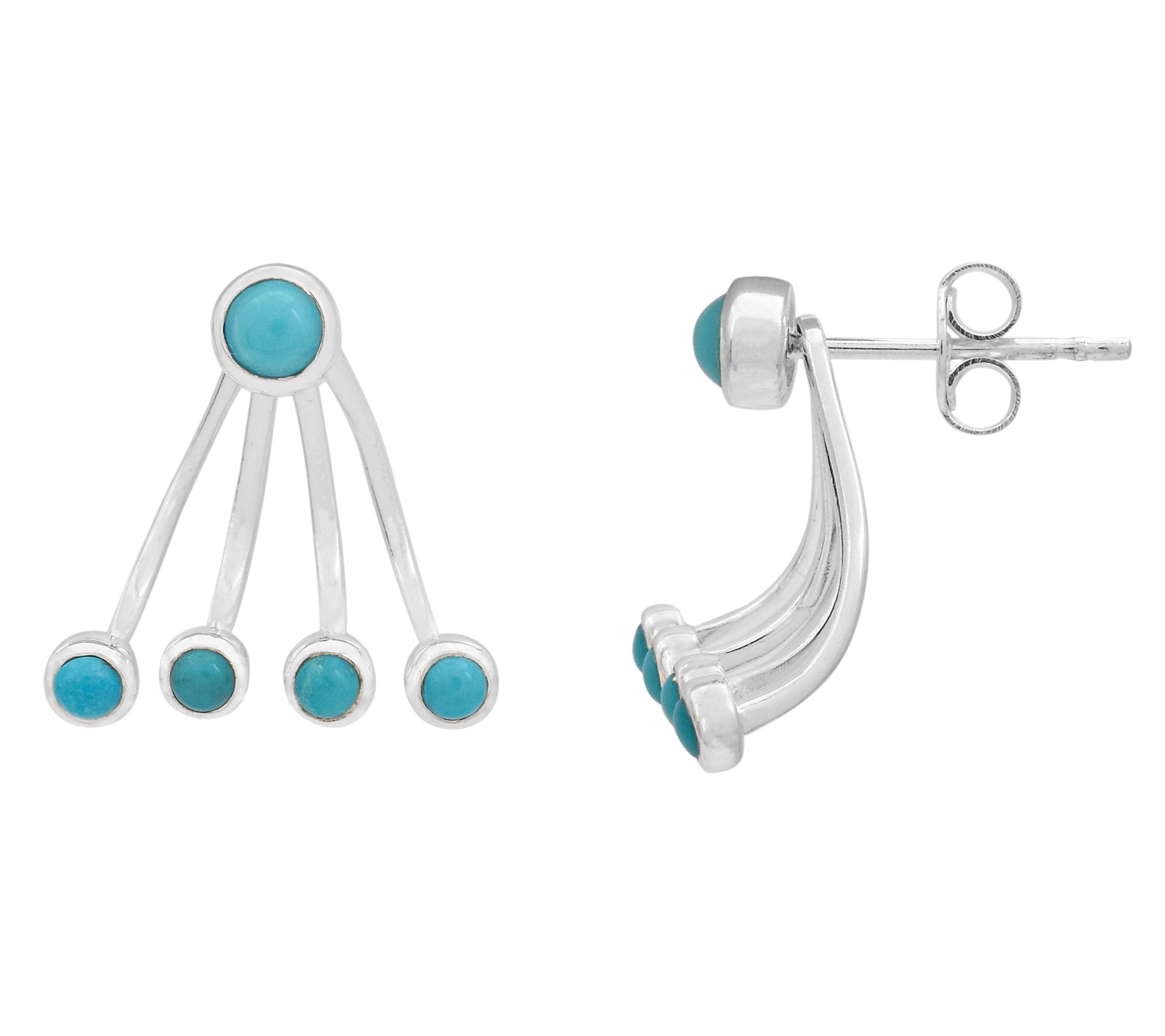 Brighten your everyday style with these sterling silver stud earrings, showcasing round Sleeping Beauty turquoise cabochons in polished bezels. Their vibrant blue stones bring a pop of color, making them an effortless accent for work, weekend outings, or special celebrations. From Affinity® Gems.
