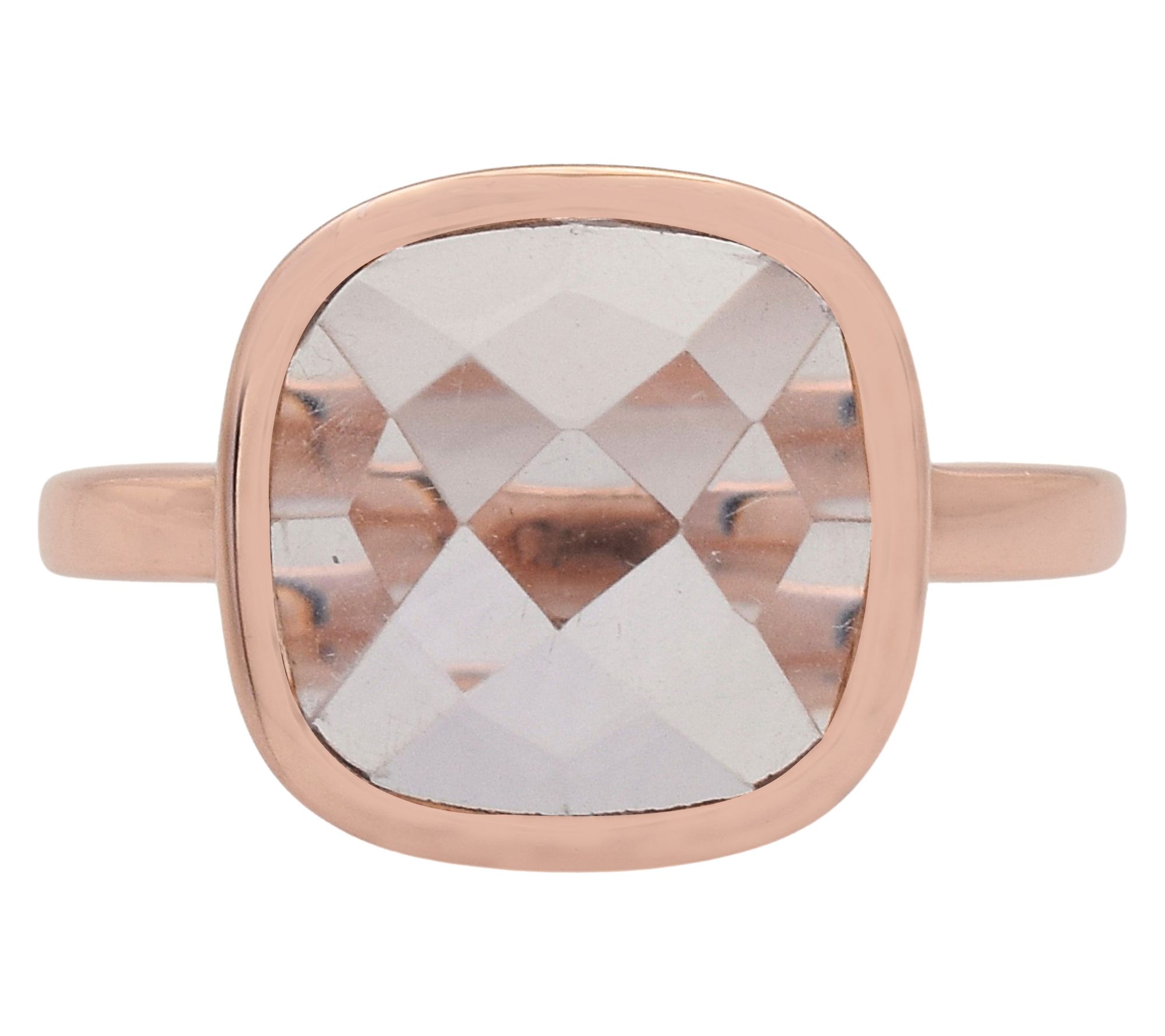 Cushion checkerboard-cut gemstone; bezel setting