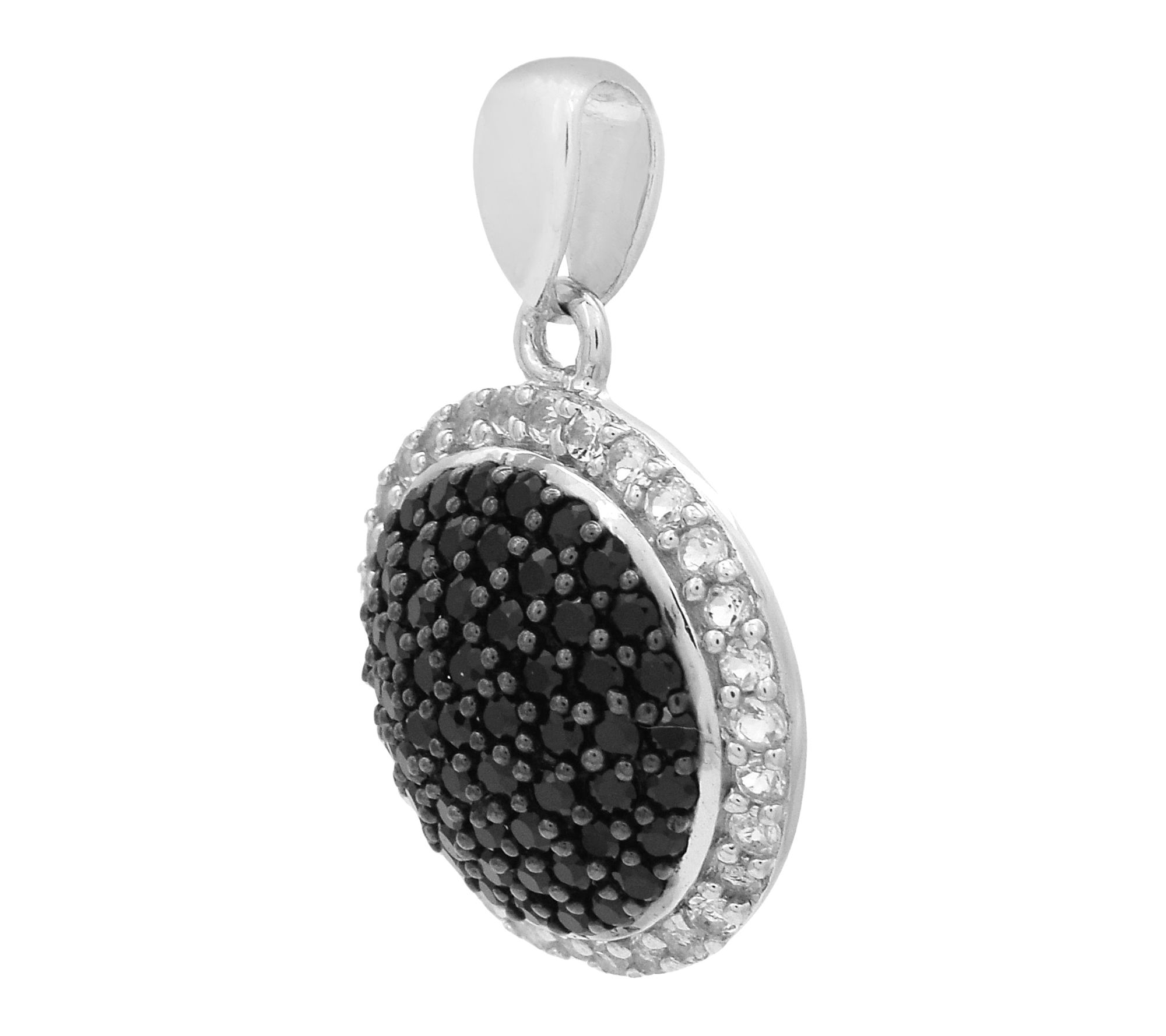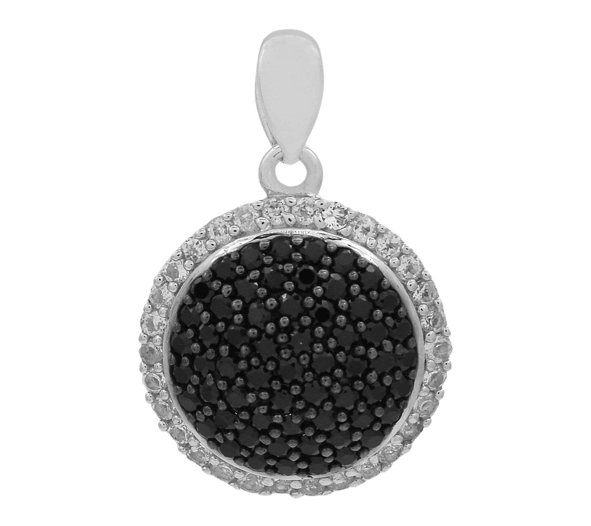 Turn everyday moments into something memorable with this sterling silver cluster pendant. Glimmering black spinel and white zircon stones catch the light beautifully, creating eye-catching sparkle whether you're at brunch or celebrating a special event. From Affinity® Gems.