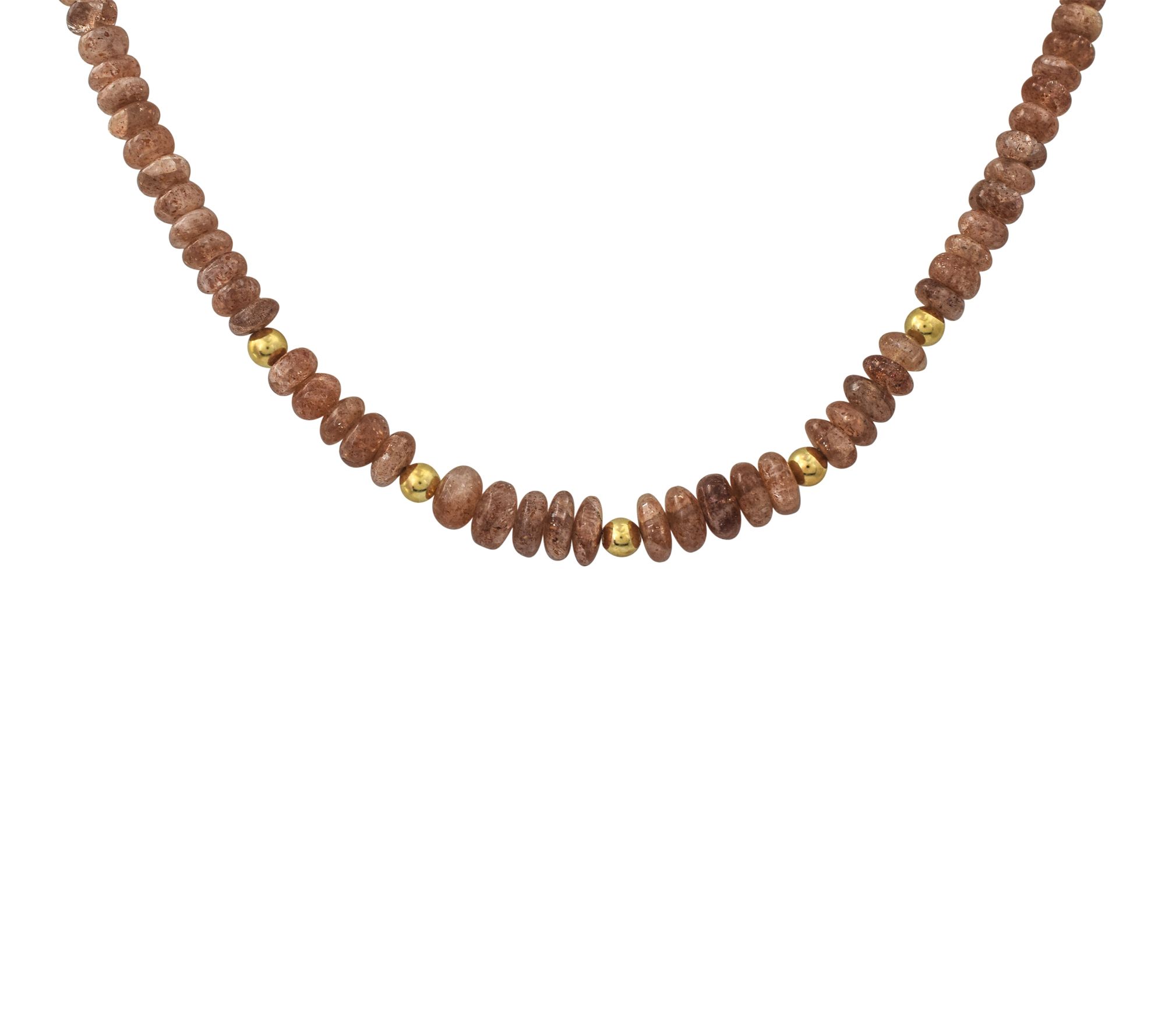 Affinity Gems Sun Stone Beaded Necklace, 14K Gold Plated