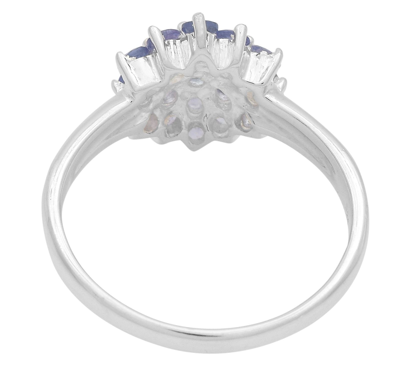 Brighten up any day with the vibrant beauty of this floral cluster ring, showcasing dazzling tanzanite gemstones set in sparkling sterling silver. Whether you're headed to a weekend brunch or want to add a cheerful accent to your office look, this ring's blooming design brings a fresh burst of color and joyful elegance to your style. From Affinity® Gems.