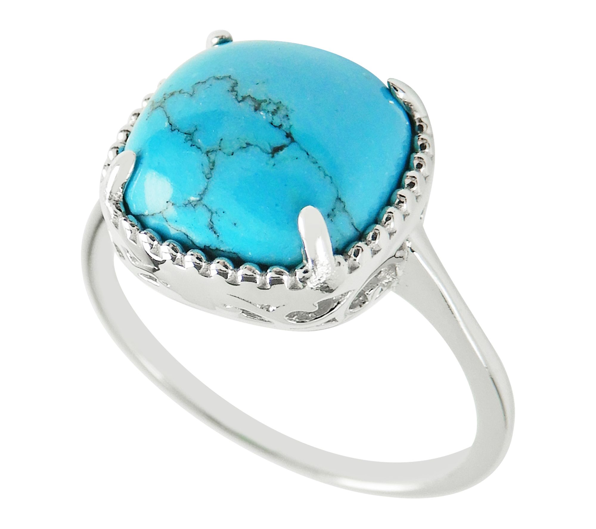 A pop of serene color and artful design, this turquoise solitaire ring breathes fresh elegance into any day -- whether worn with your favorite blouse at brunch or sparkling against little black dress on date night. Gleaming sterling silver, a cushion-cut turquoise center, and polished shine create a sophisticated accent you'll reach for again and again. From Affinity® Gems.