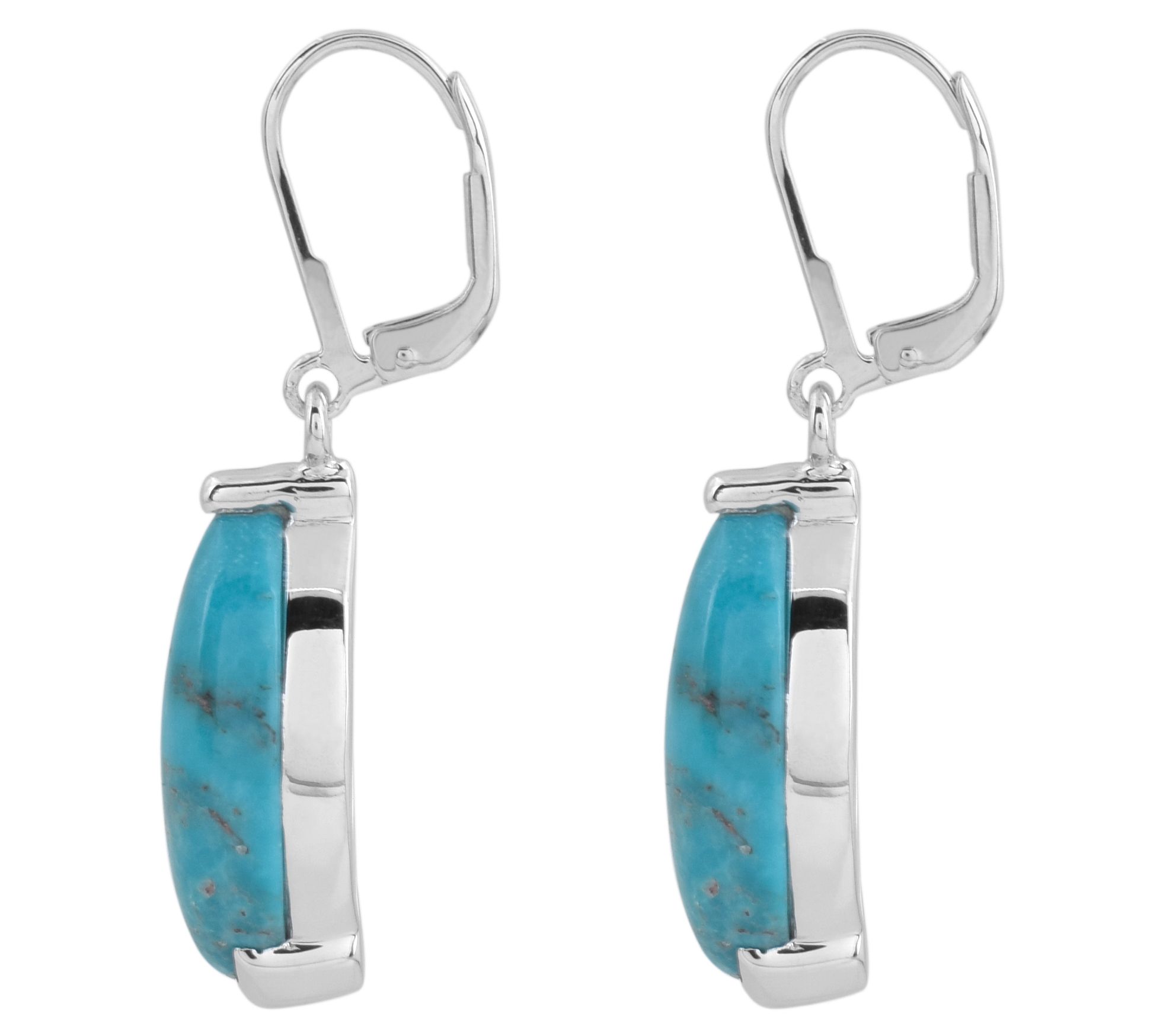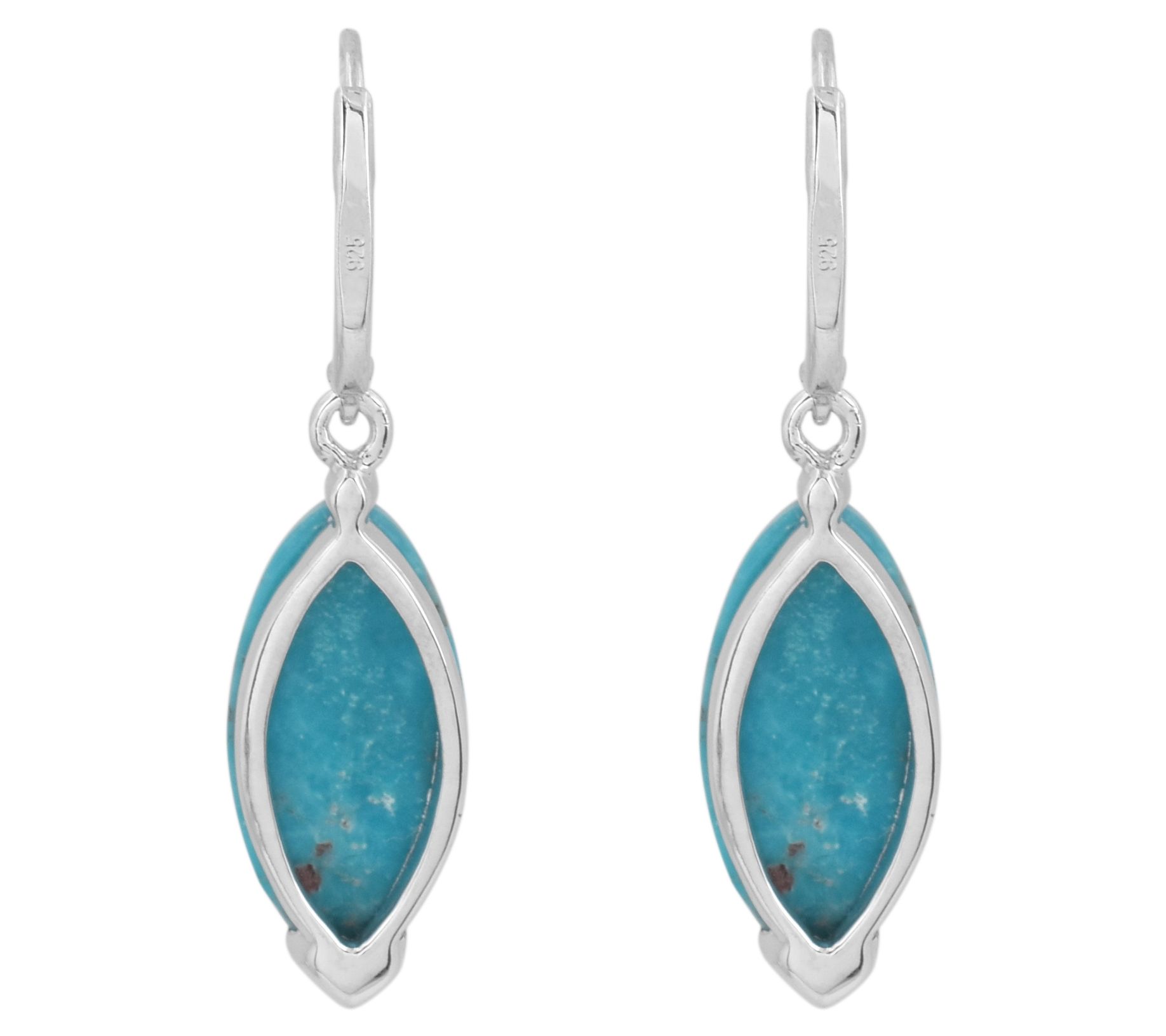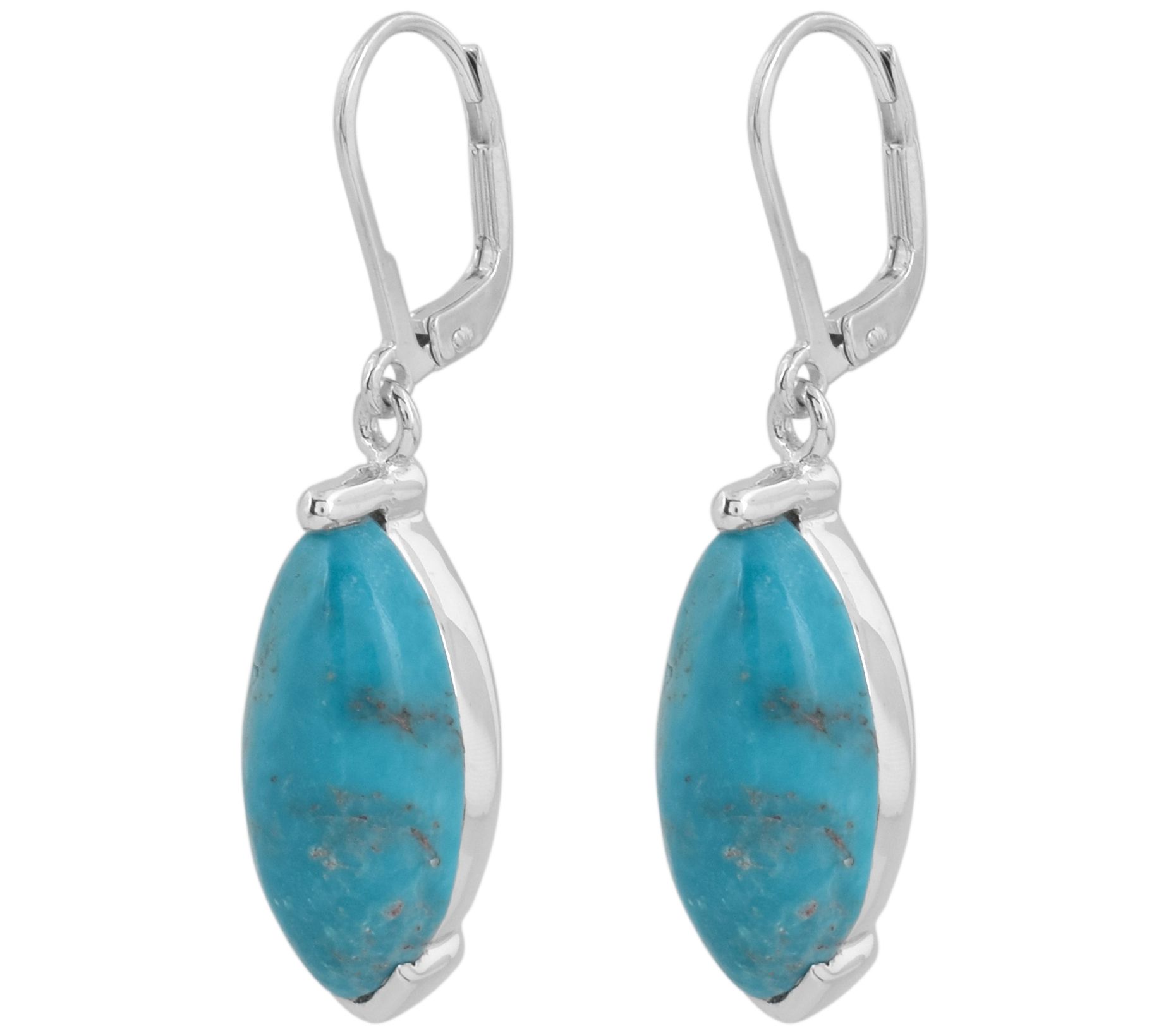 Elevate your style with these gorgeous turquoise drop earrings. Featuring marquise cabochon stones set in sterling silver with a platinum plating, these earrings offer an earthy yet sophisticated touch to any outfit. From Affinity® Gems.