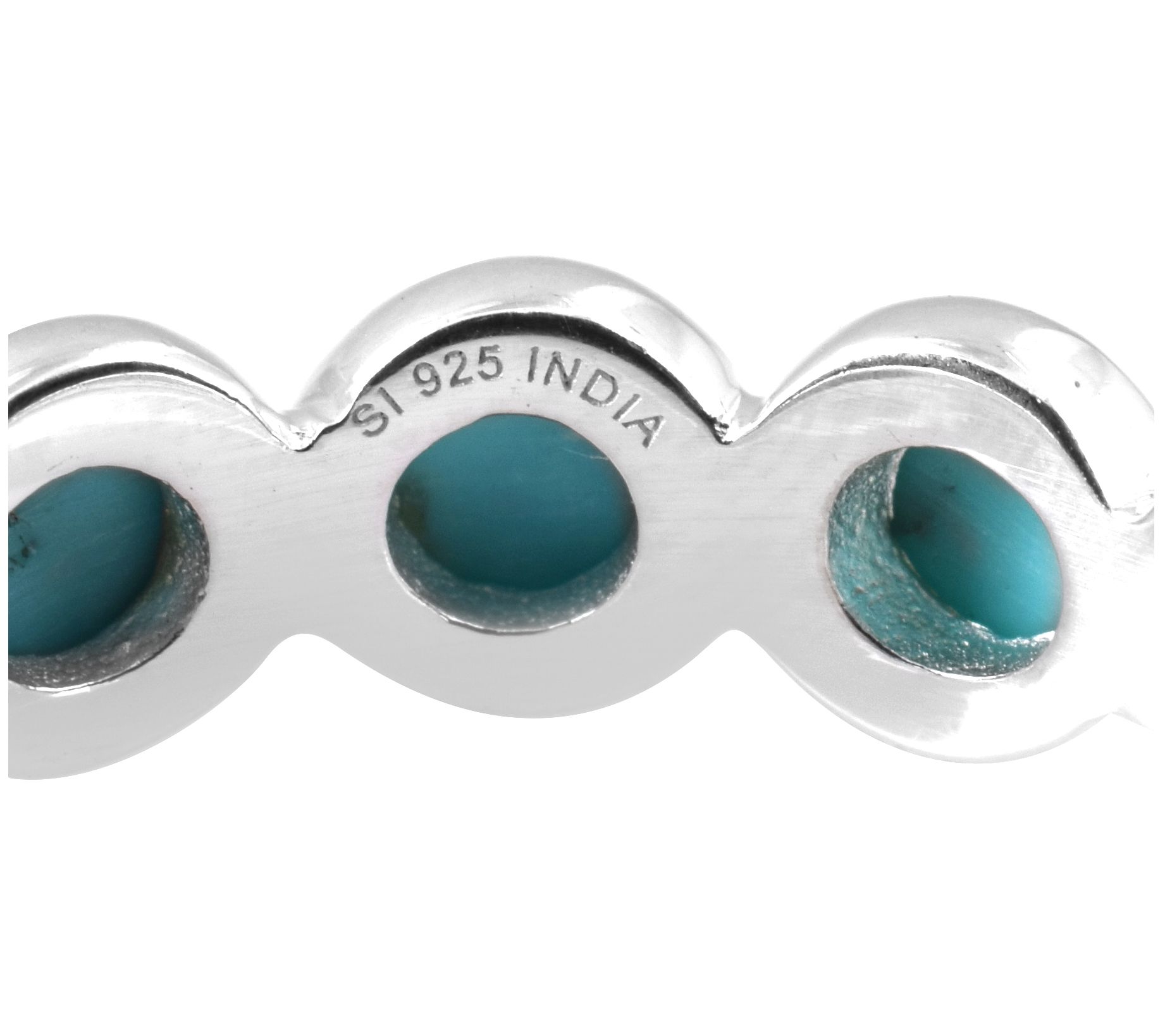 • Round prong-set turquoise cabochons; high polish