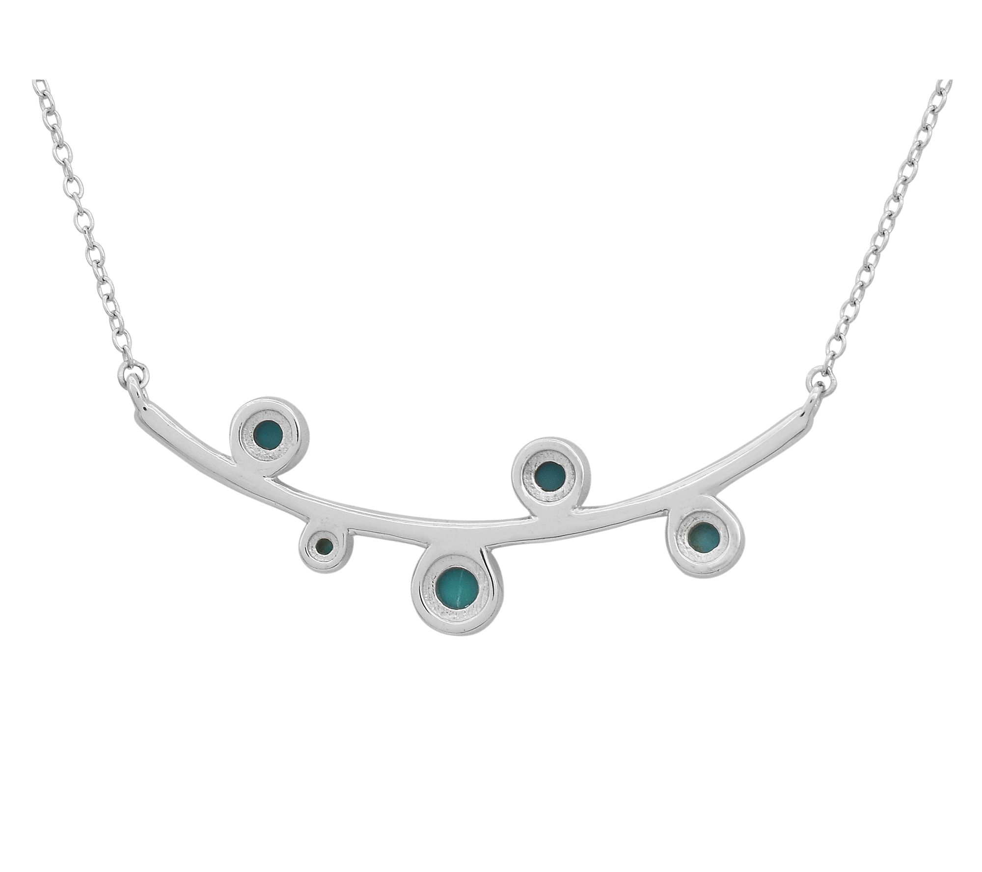 Let your look shine bright with the stunning hues of Sleeping Beauty turquoise showcased in this sterling silver necklace. Five bezel-set cabochons are elegantly arranged along a sleek platinum-plated chain, making this journey pendant a captivating accent for dressy evenings or stylish days out. From Affinity® Gems.