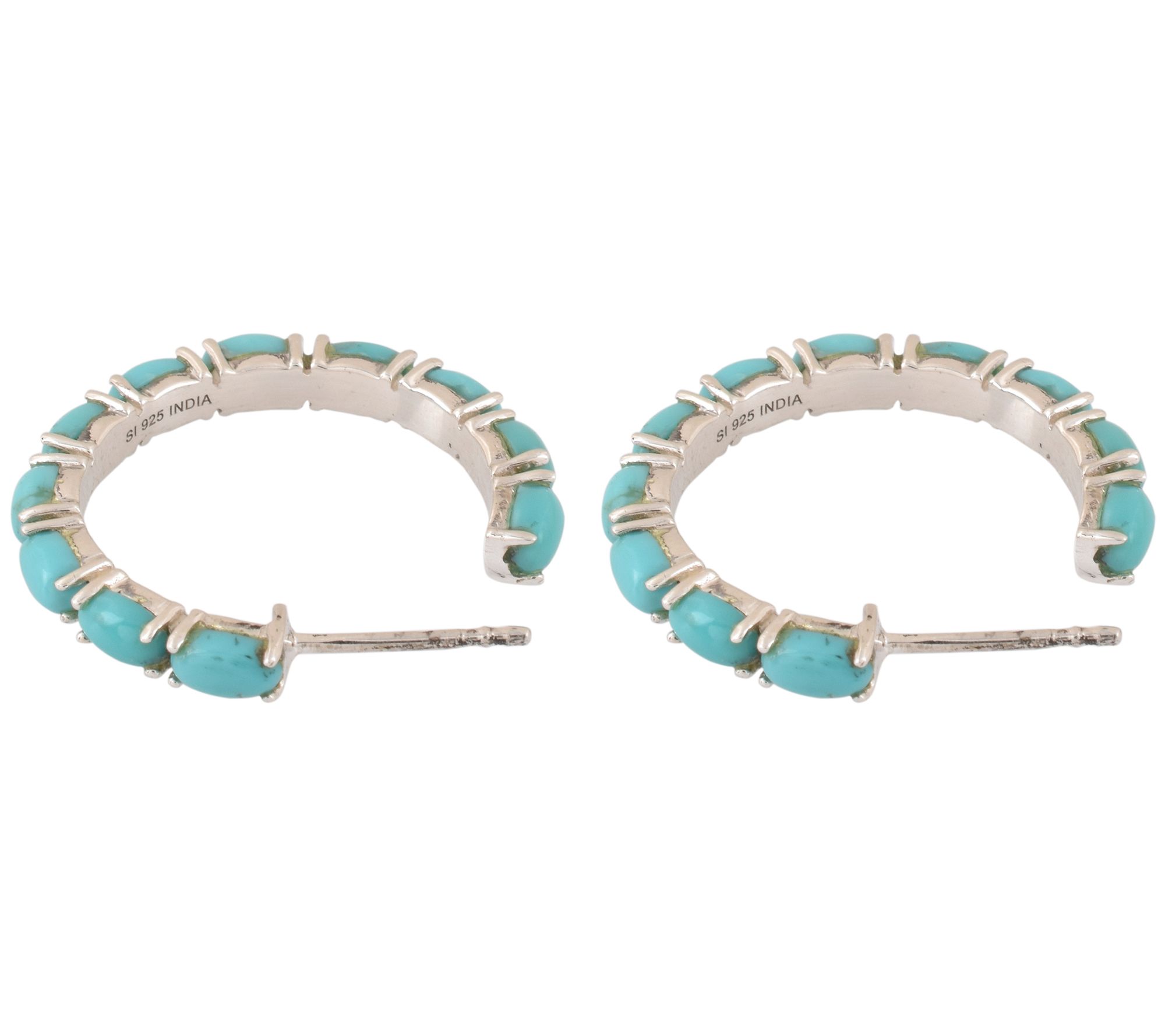 Affinity Gems Turquoise Oval Hoop Earrings, Sterling Silver