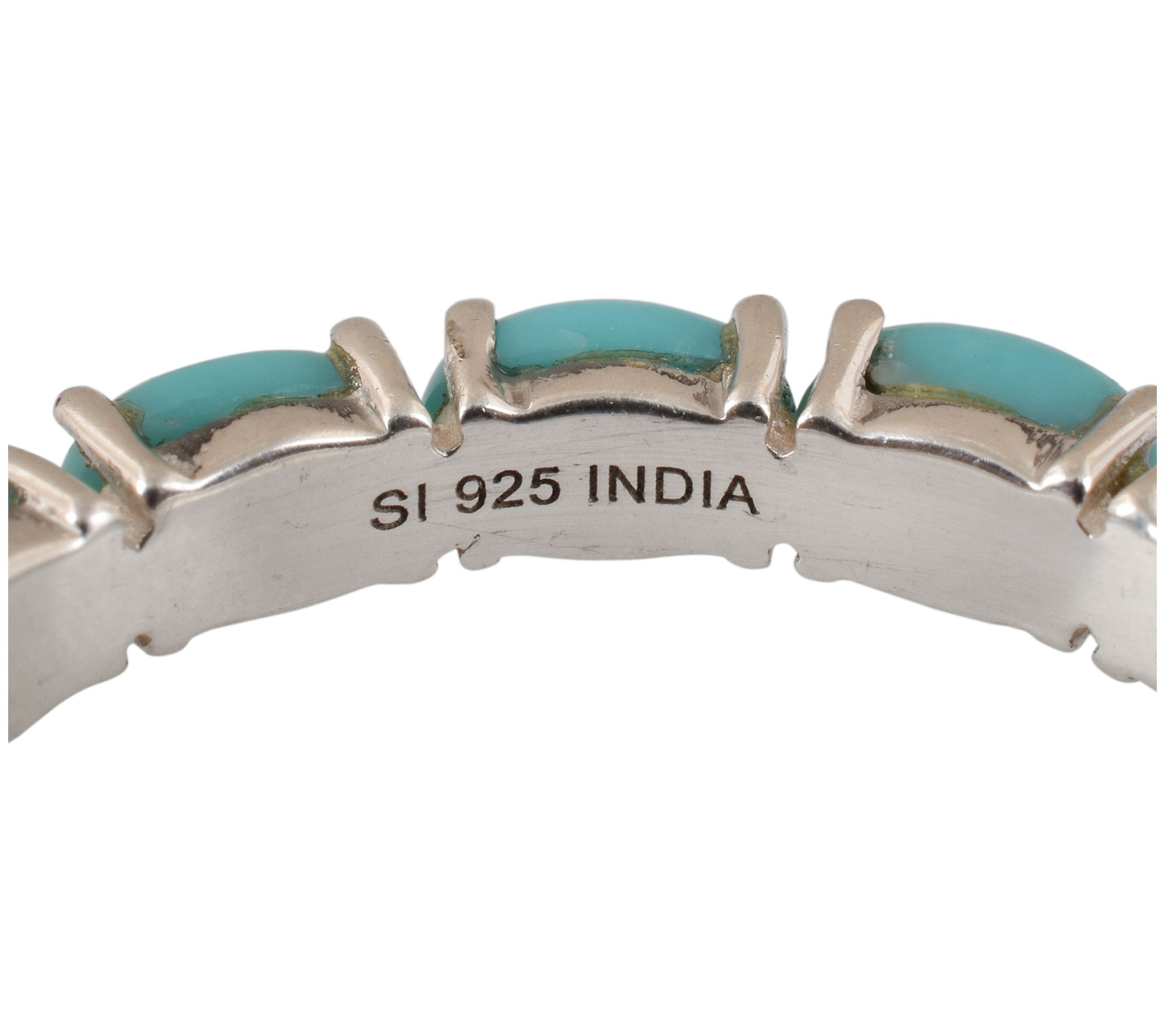 • Oval prong-set turquoise cabochons; high polish