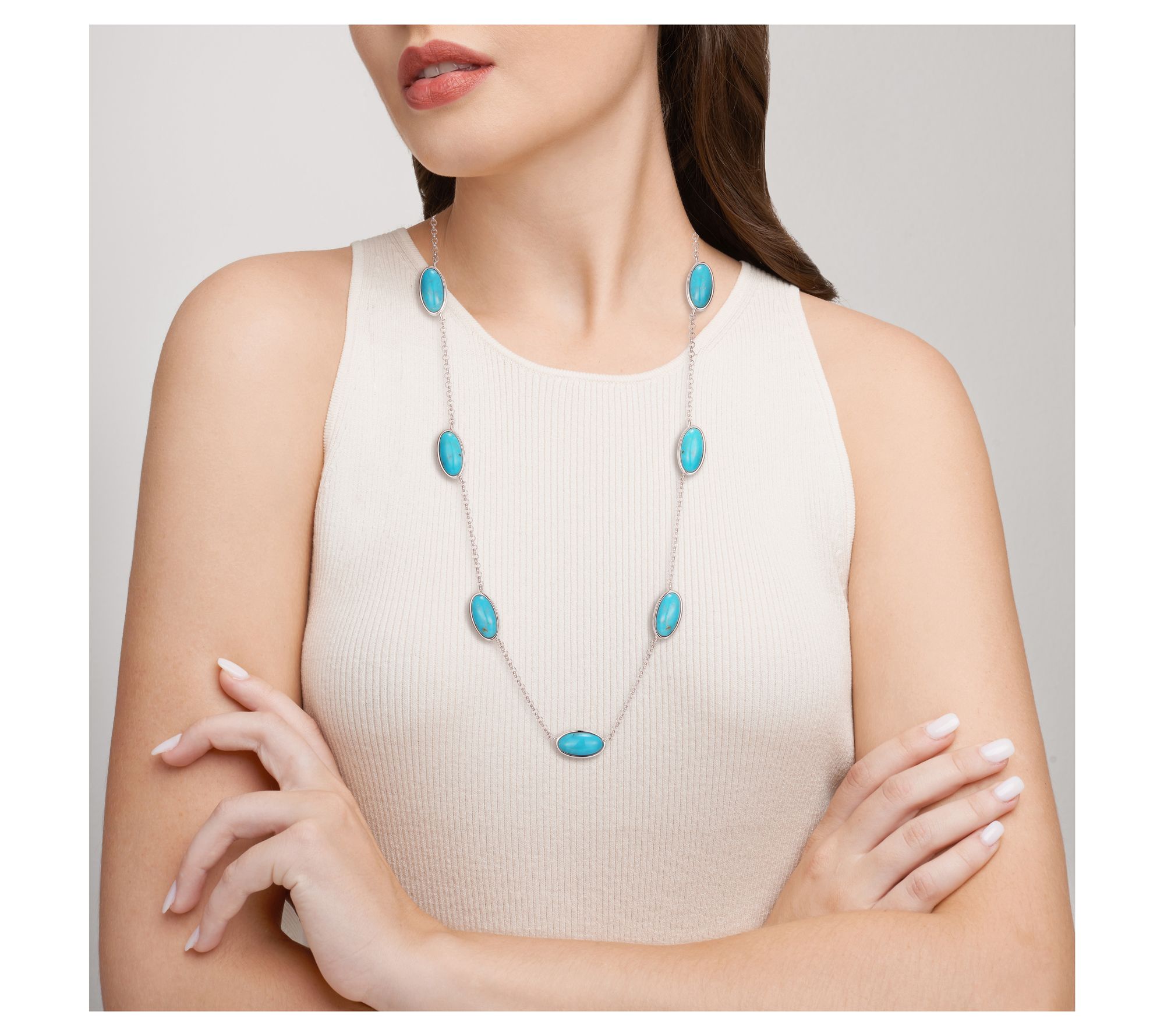 Affinity Gems Turquoise Station Necklace, Sterling Silver