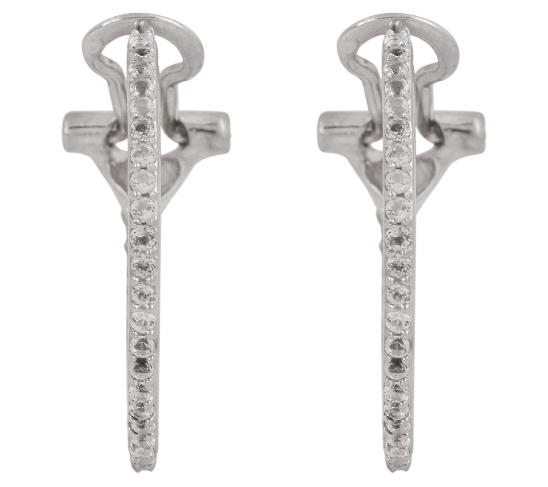 Draw admiration by flaunting these classic hoop earrings bedecked with white topaz gems that sparkle and shimmer. From Affinity Gems.