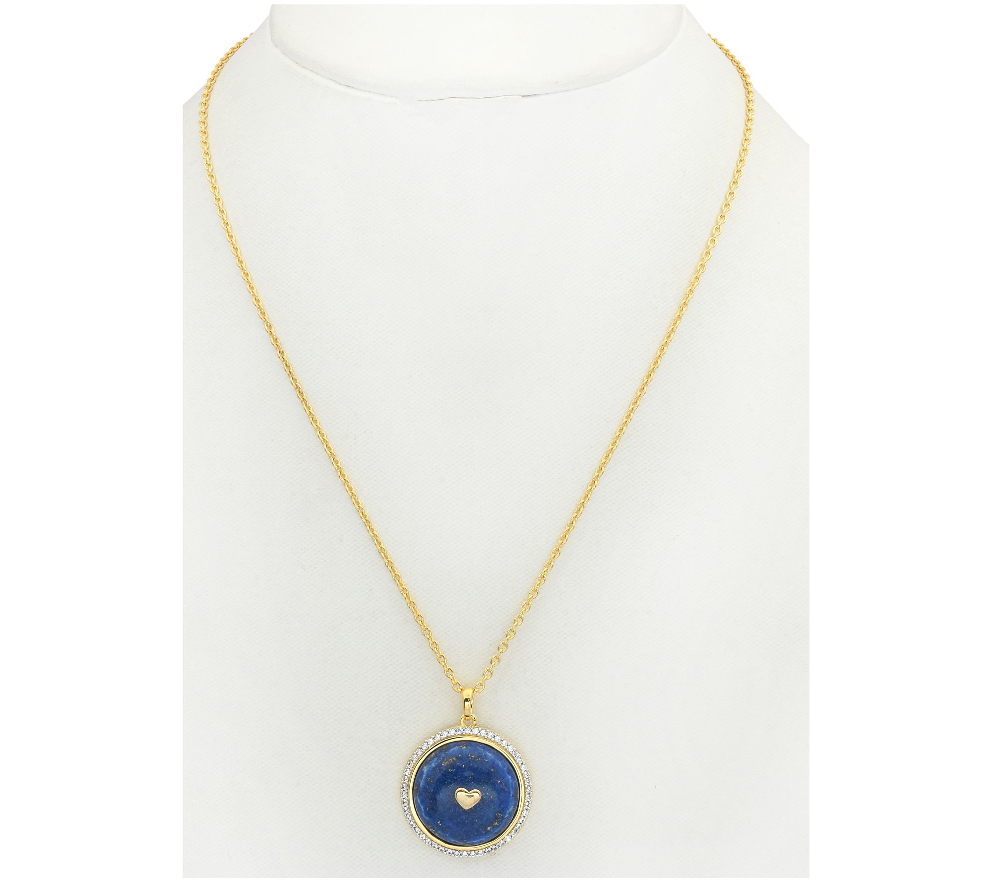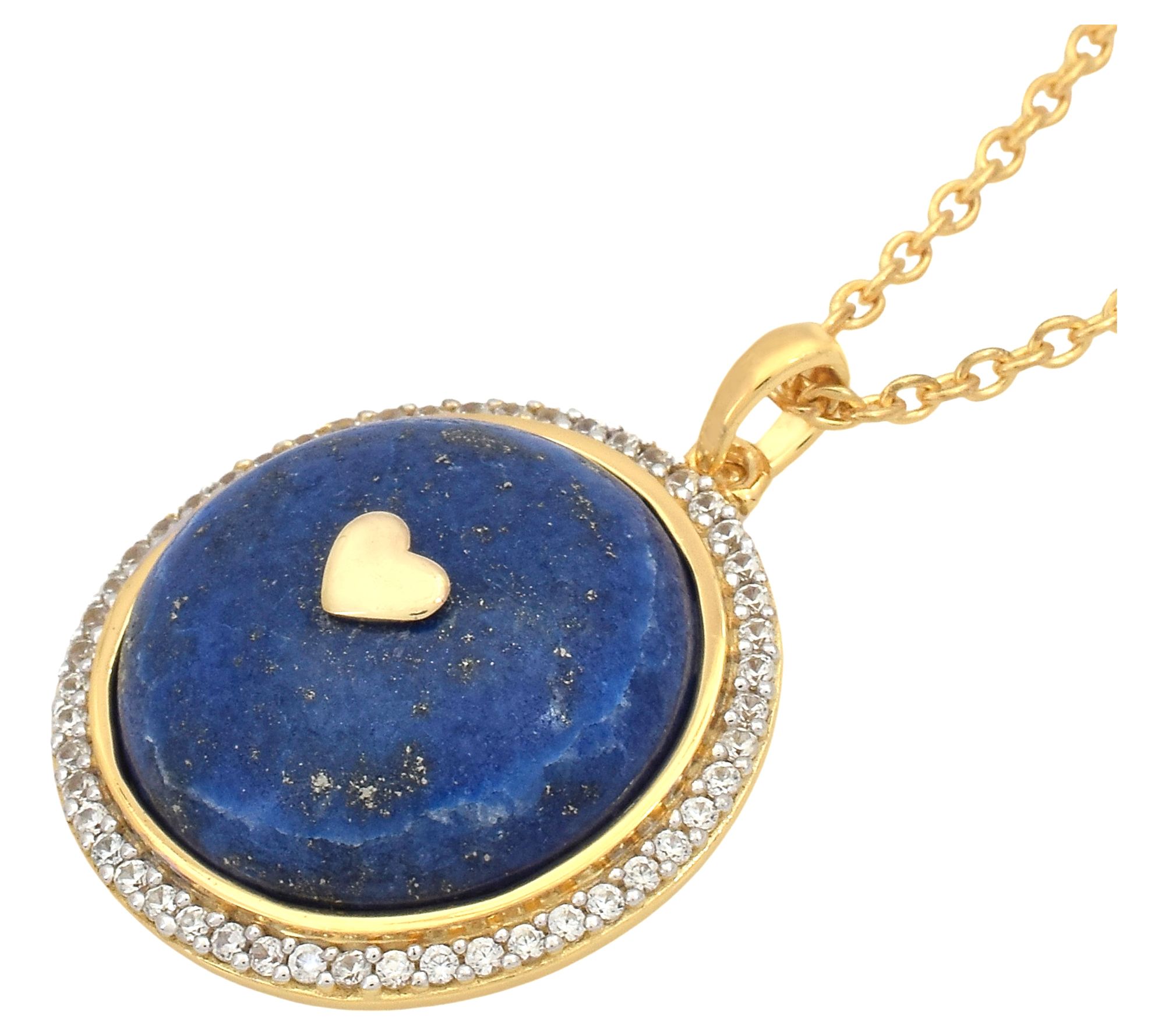 Whether you're dressing up for dinner or looking to add a romantic accent to your everyday look, this circle pendant necklace brings together vibrant lapis lazuli and sparkling white zircon in a heartfelt design. An oval link chain with extender lets you adjust the fit, making it easy to layer or wear solo for a signature style statement. From Affinity® Gems.