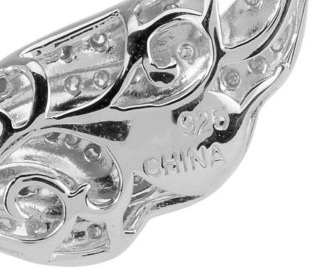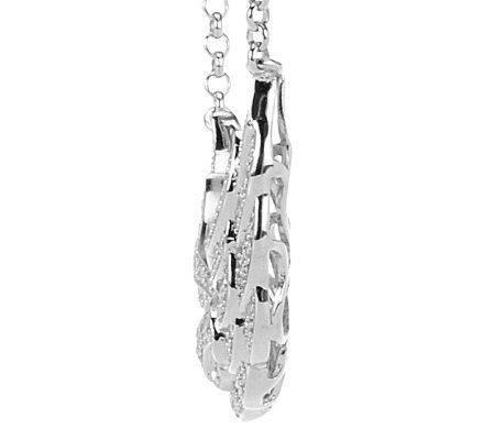• Pave-set white diamonds in angel wing design, open scroll design at back; rolo link chain