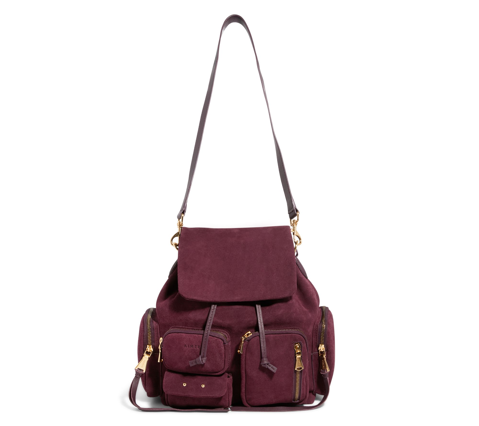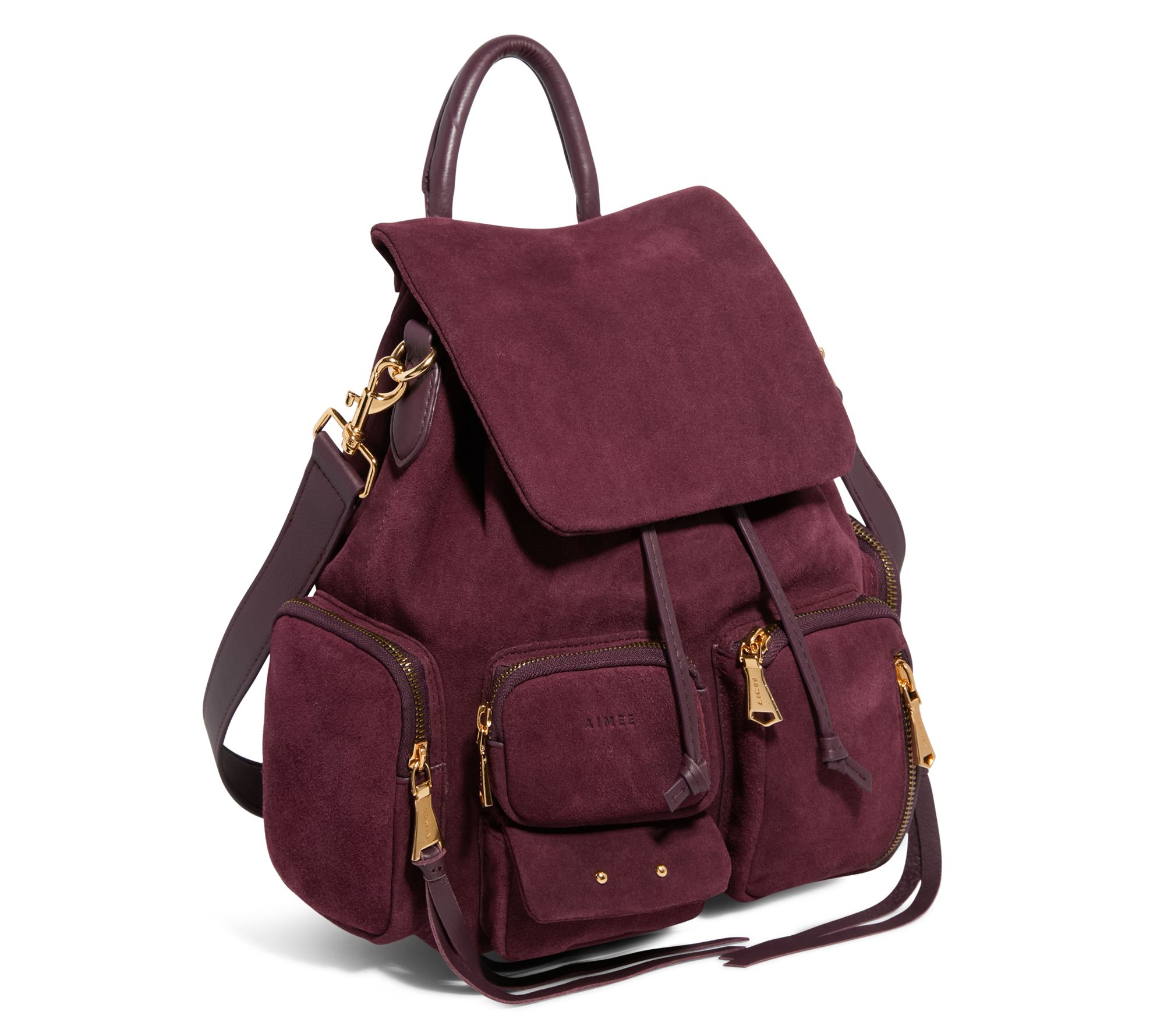 And away we go! Head out for work or weekend travels with this Aimee Kestenberg leather backpack that keeps all your daily necessities organized and within reach. Multiple exterior pockets offer quick access to small items, while the lock closure and drawstring help keep everything secure. From Aimee Kestenberg.