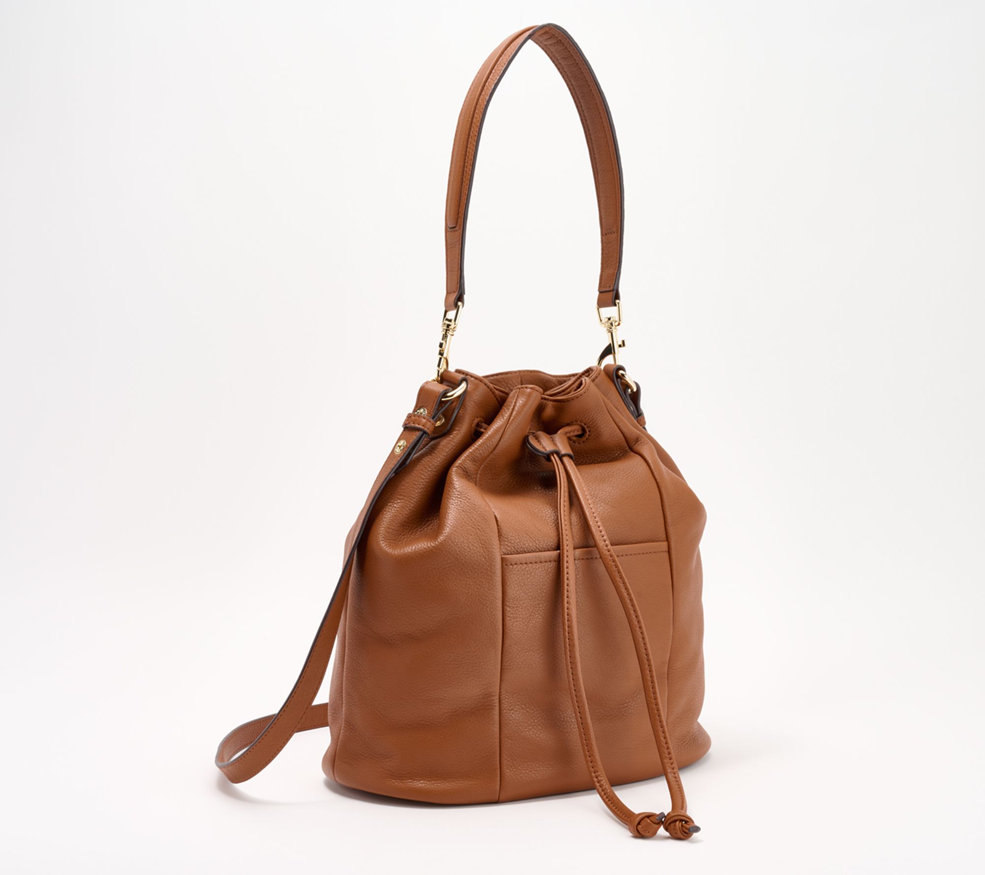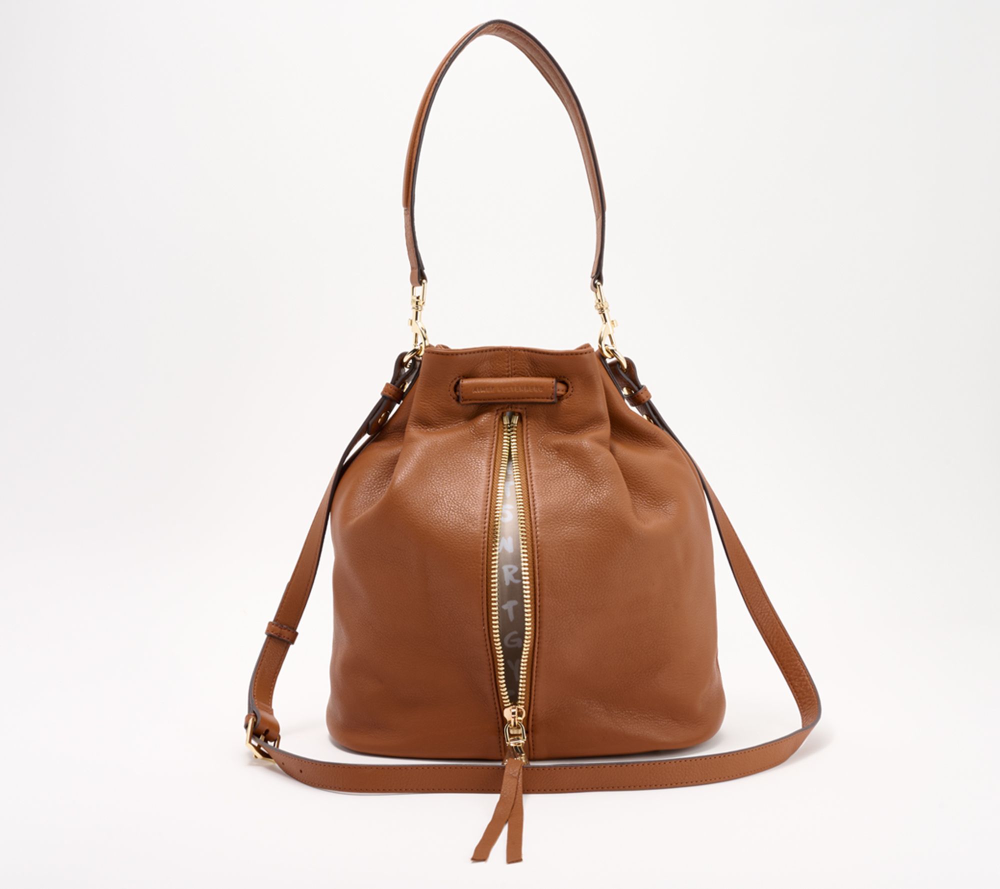 Chic and unique, this convertible shoulder bag keeps your belongings secure with an oversized zipper for added storage space. The drawstring top closure allows for easy access to your everyday items, and with multiple pockets, organization is a breeze. From Aimee Kestenberg.