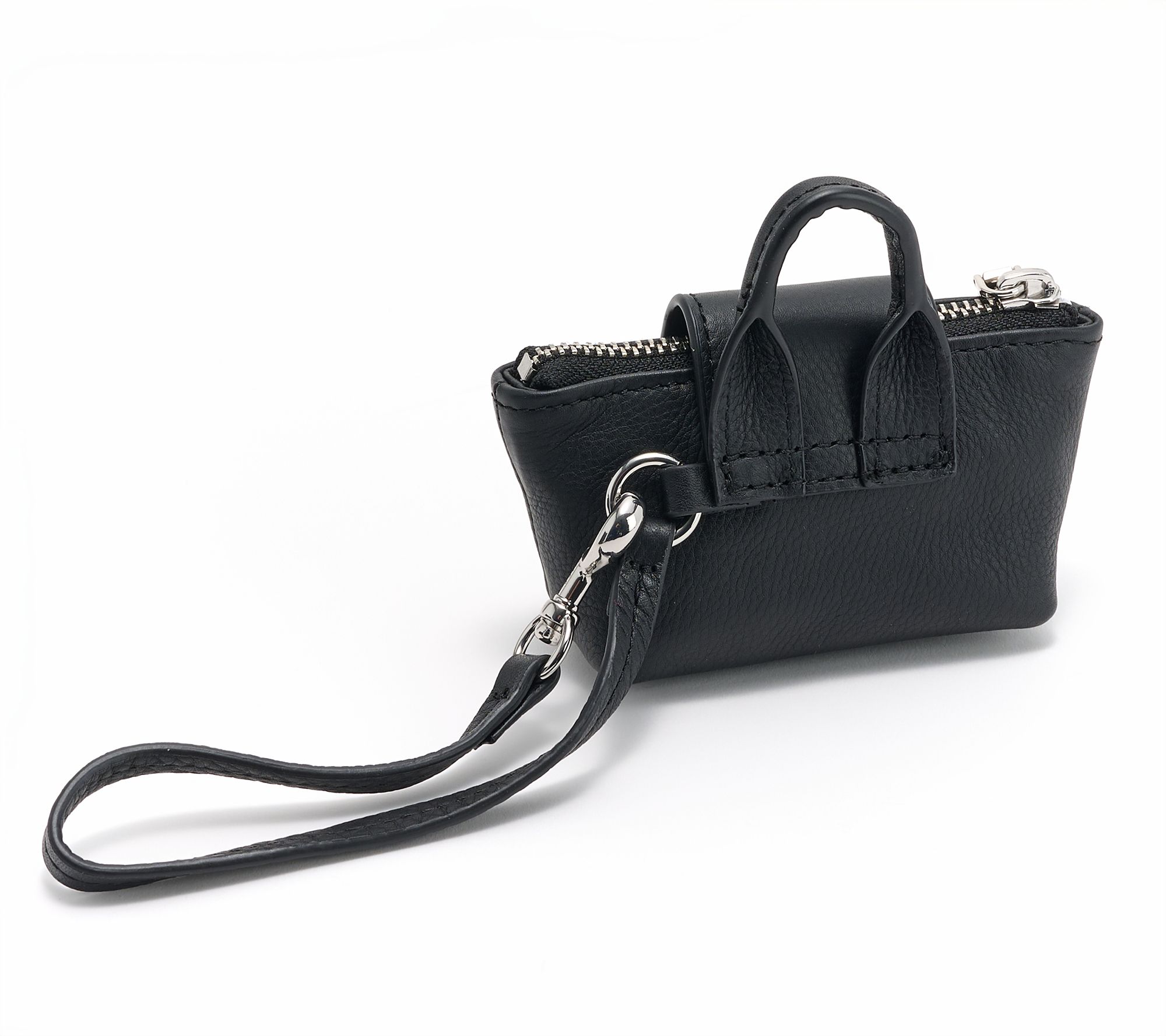 Measures approximately 5"L x 2"D x 2.5"H with a 1.25" handle and a 5.75 wristlet strap drop; weighs 0.20 lb