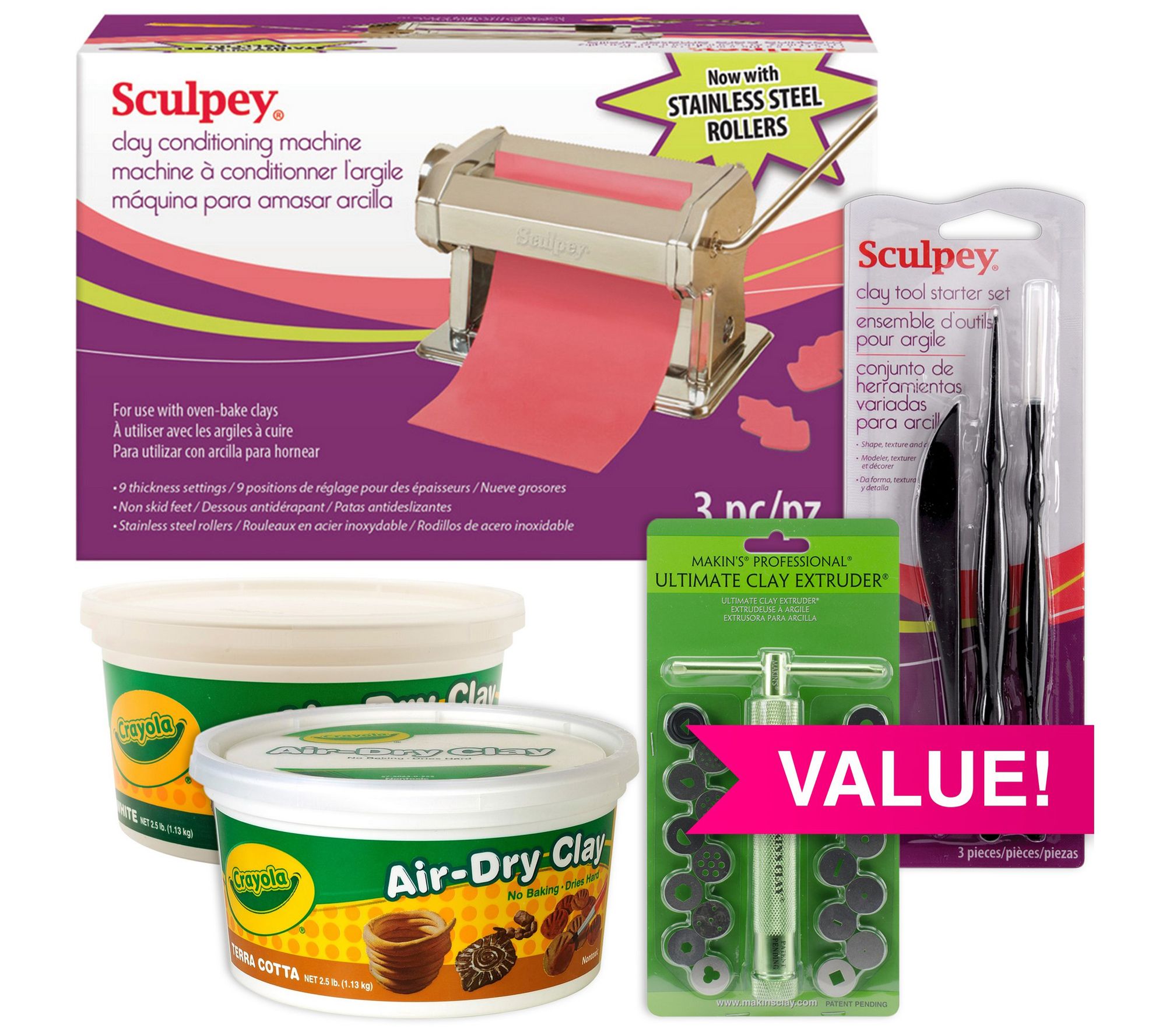 Air Dry Clay Plus Extruder and Conditioning Machine Bundle