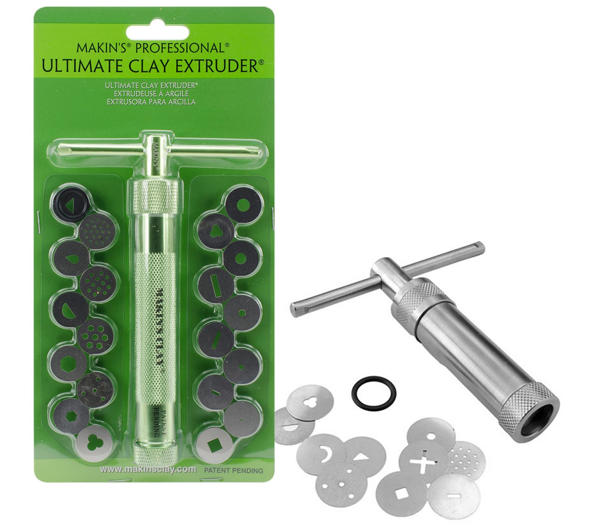This air dry clay plus extruder works with all types of clay so you can create many different embellishments for your projects. From Polyform.