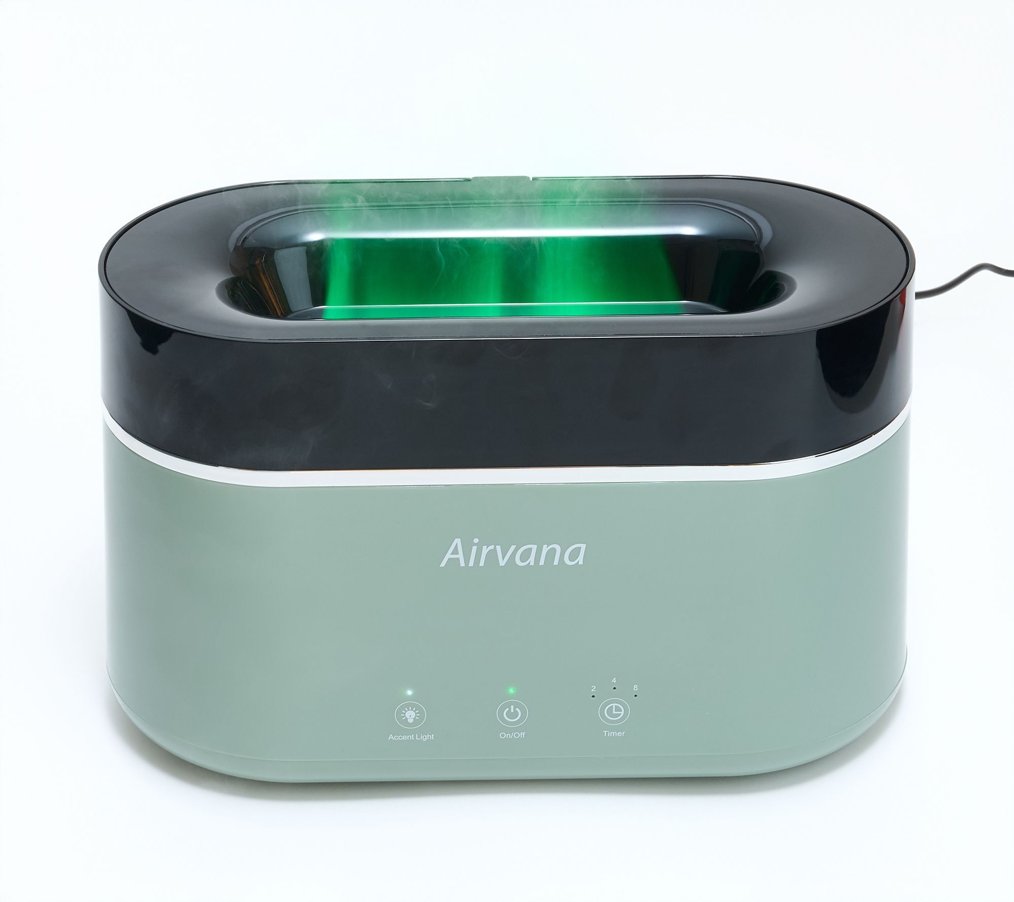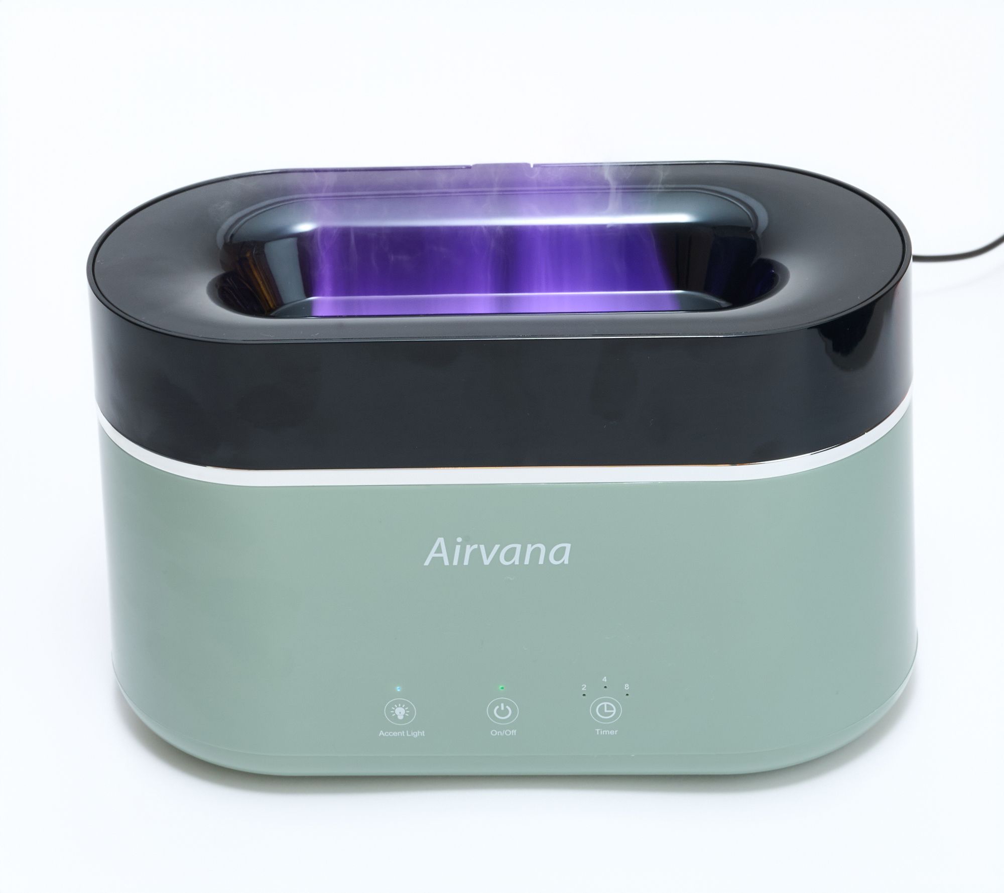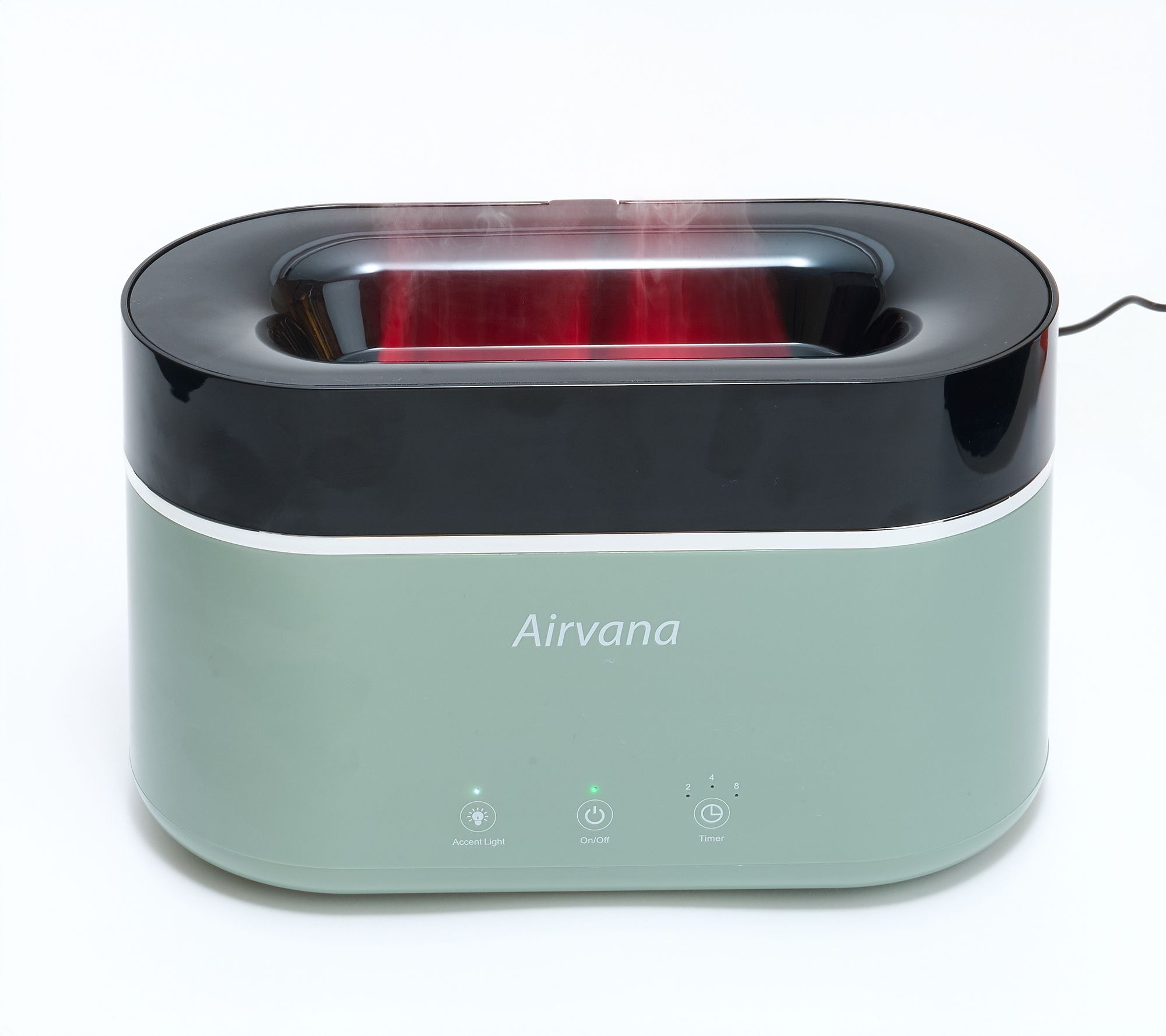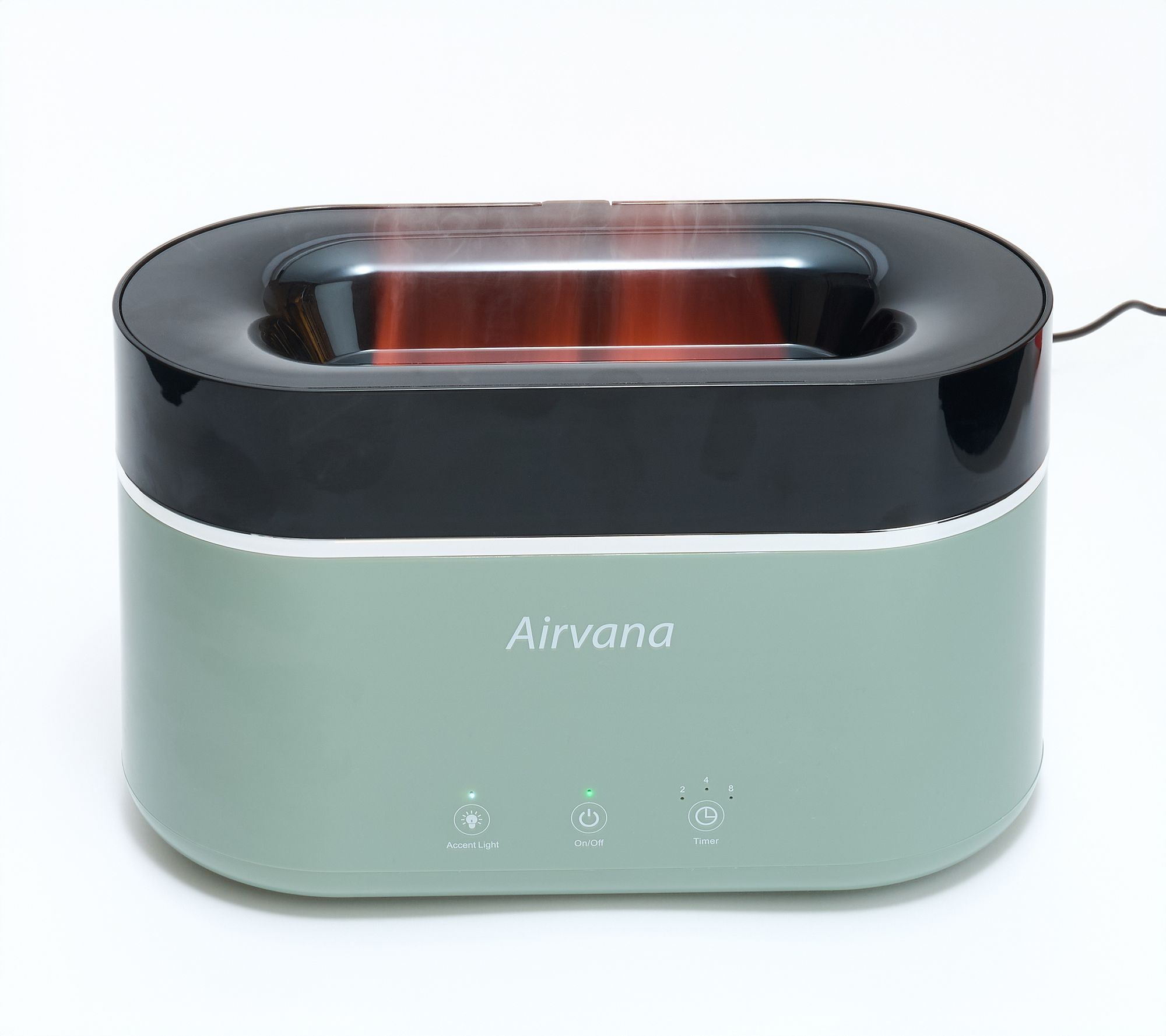 More than just a humidifier, the Airvana Aquaflame combines a convenient top-fill design with a captivating flame effect -- in your choice of flame color! Featuring an ultrasonic design, the compact humidifier fits neatly in small spaces, on countertops, and on nightstands, so you can moisten the air without having to make space. What's more, the Aquaflame includes a convenient essential oils tray for adding your favorite scent along with the inviting ambience. From Airvana.