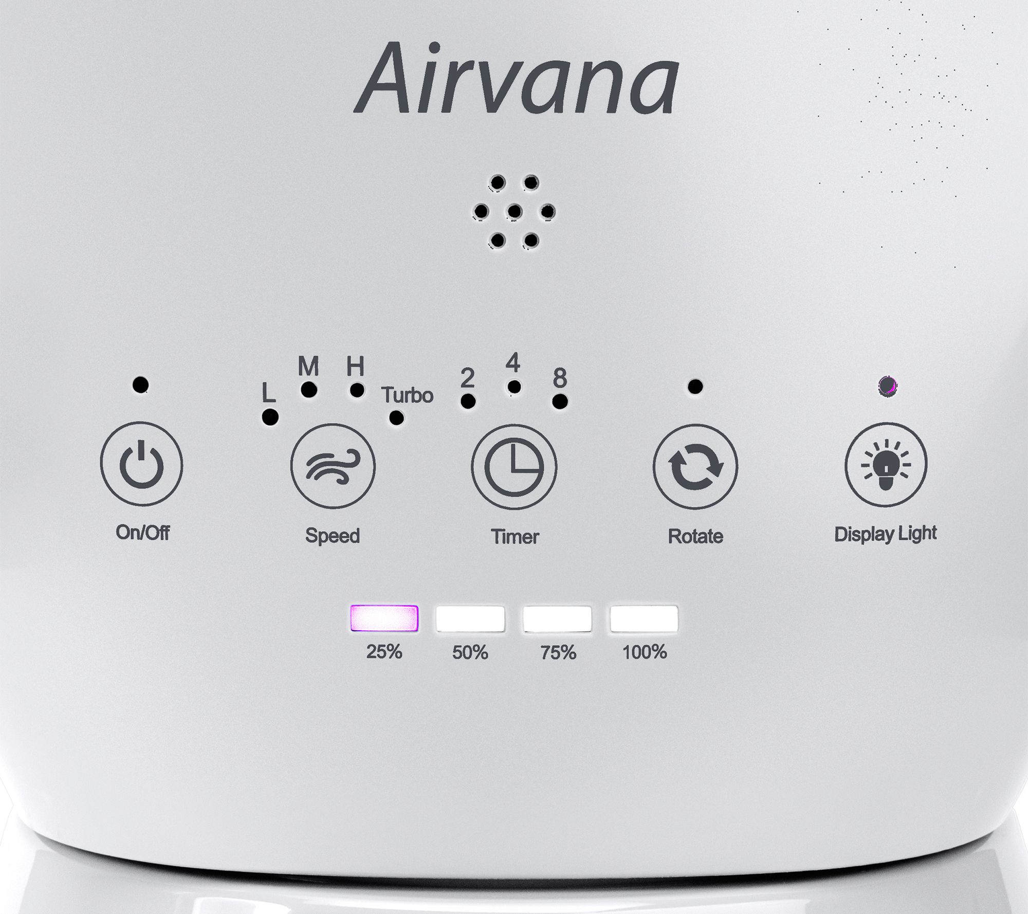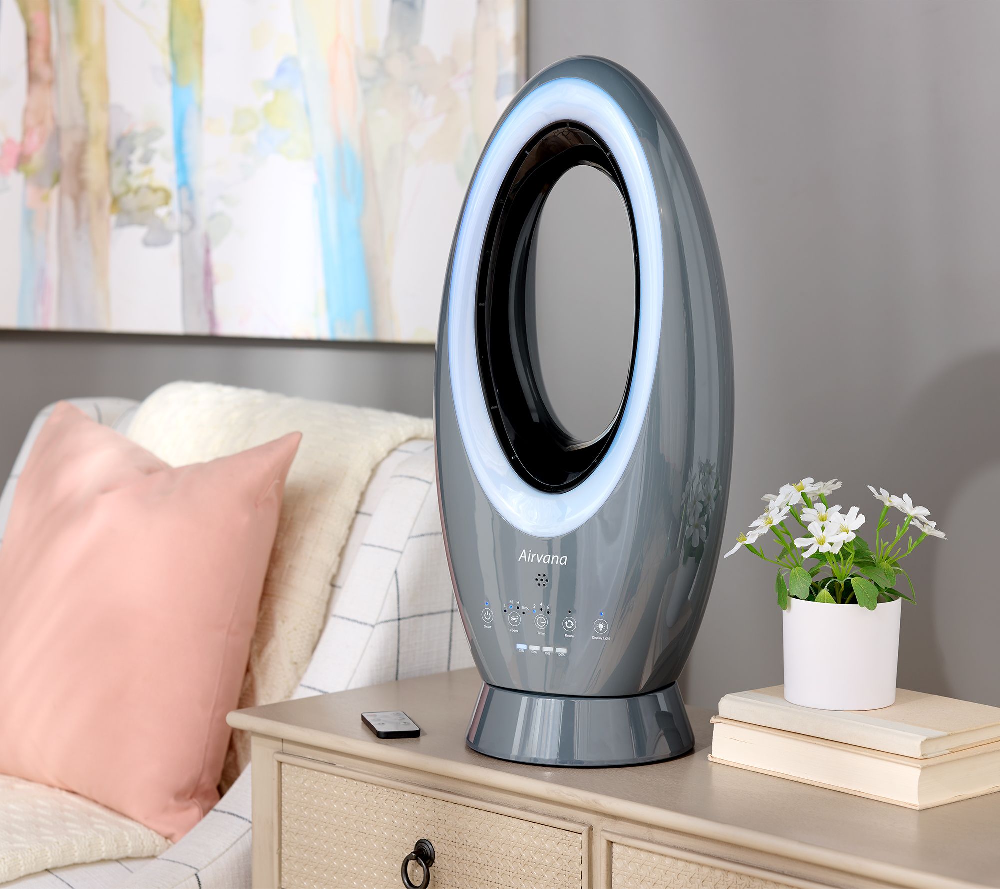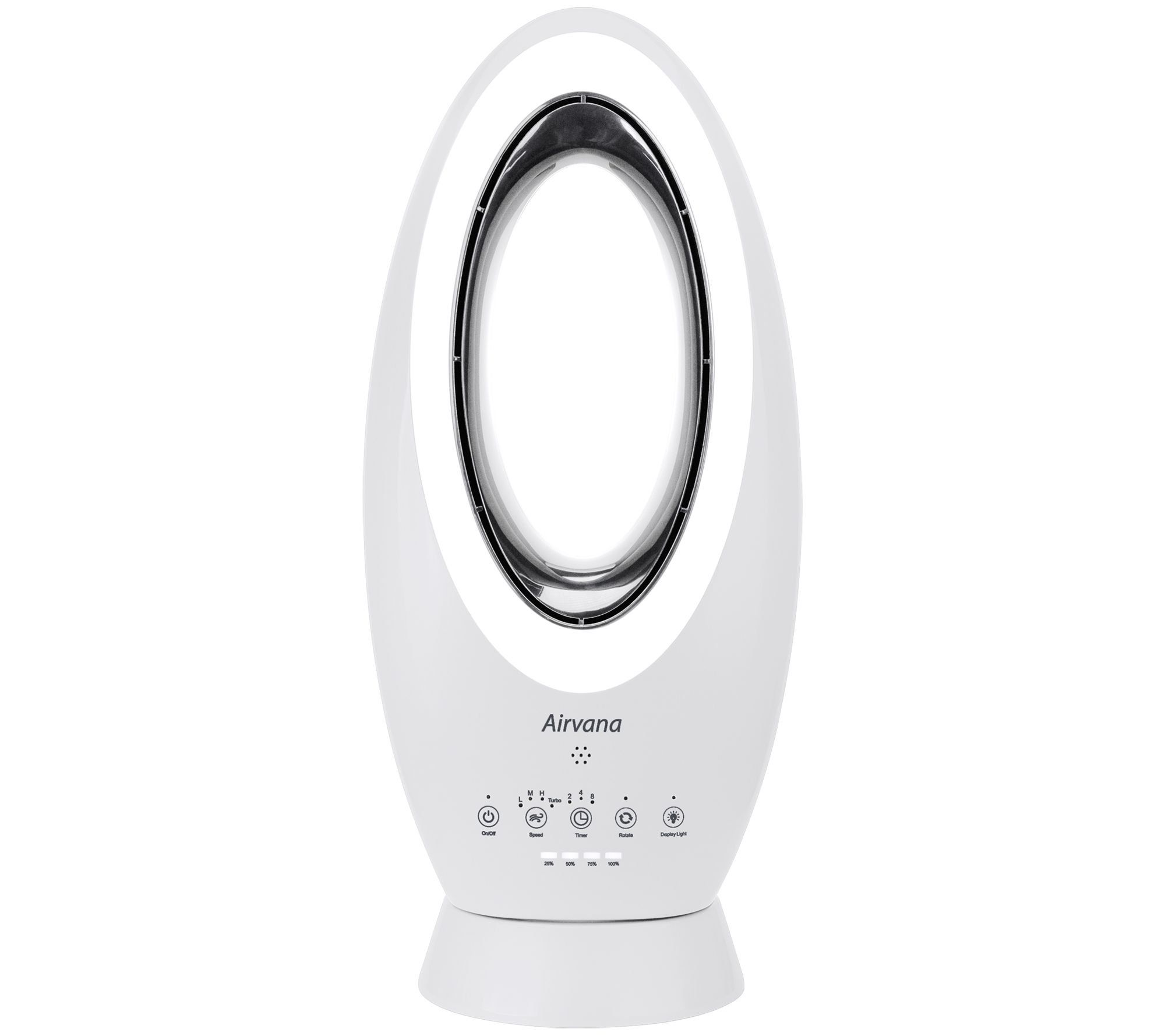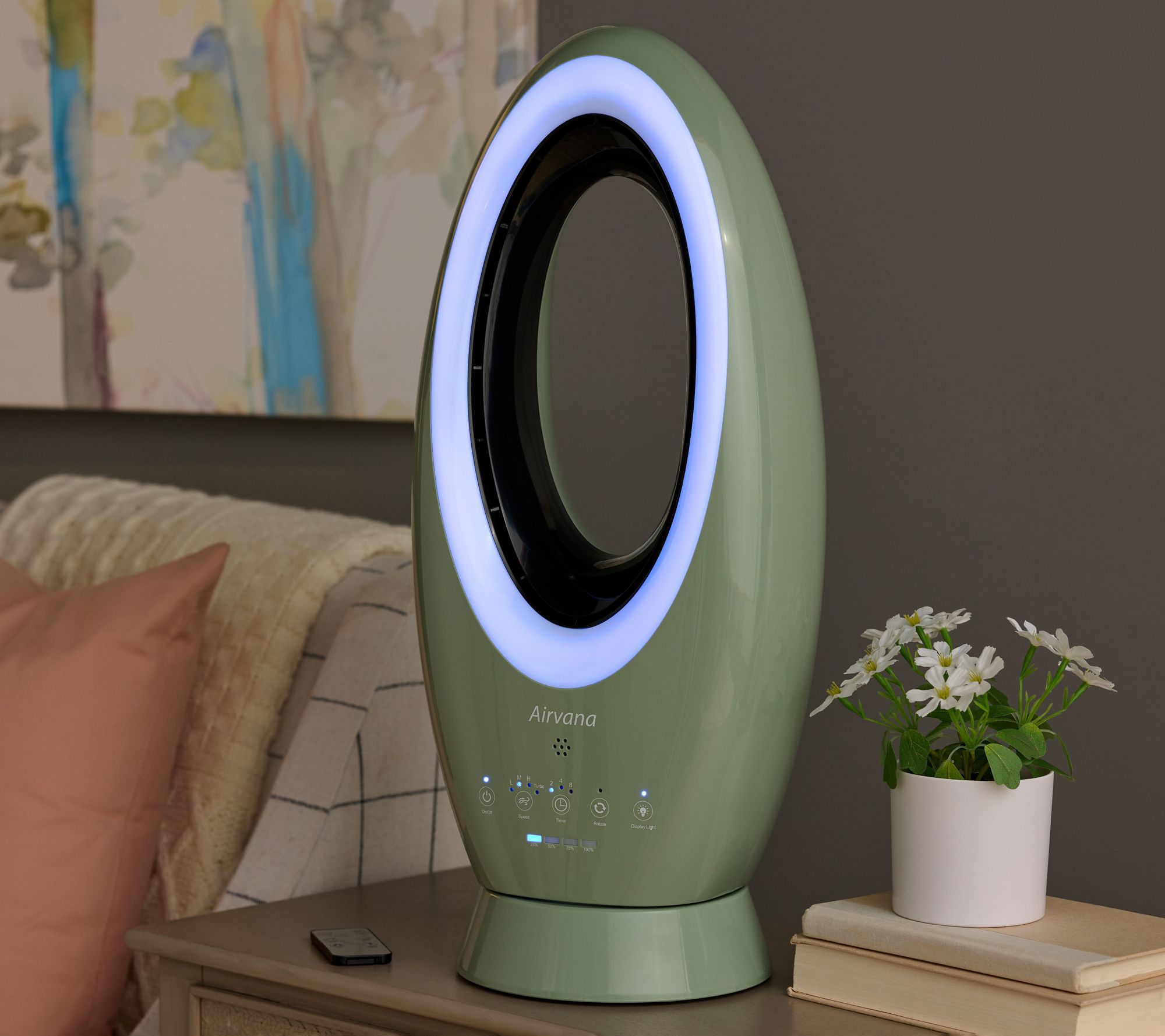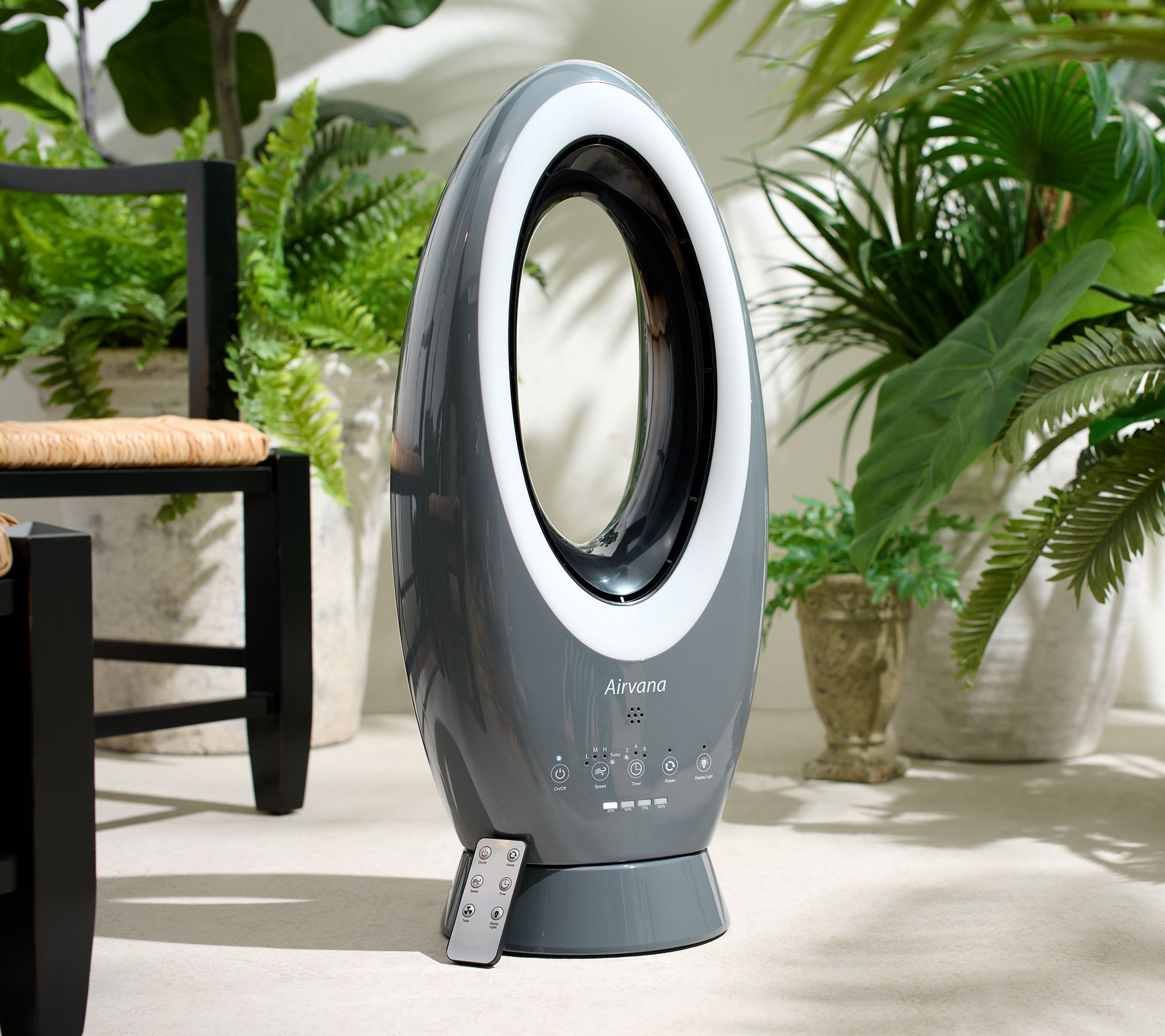 With four fan speeds (gotta love Turbo for sweaty workouts), optional rotation for full-room coverage, and a fun light feature, this elegant air mover fits seamlessly into your busy life -- and your decor -- like the super fan you've always dreamed of. (Score!) Plus, with no exposed blades, it provides a refreshing breeze without the worry of curious little hands or playful pets getting too close. From Airvana.