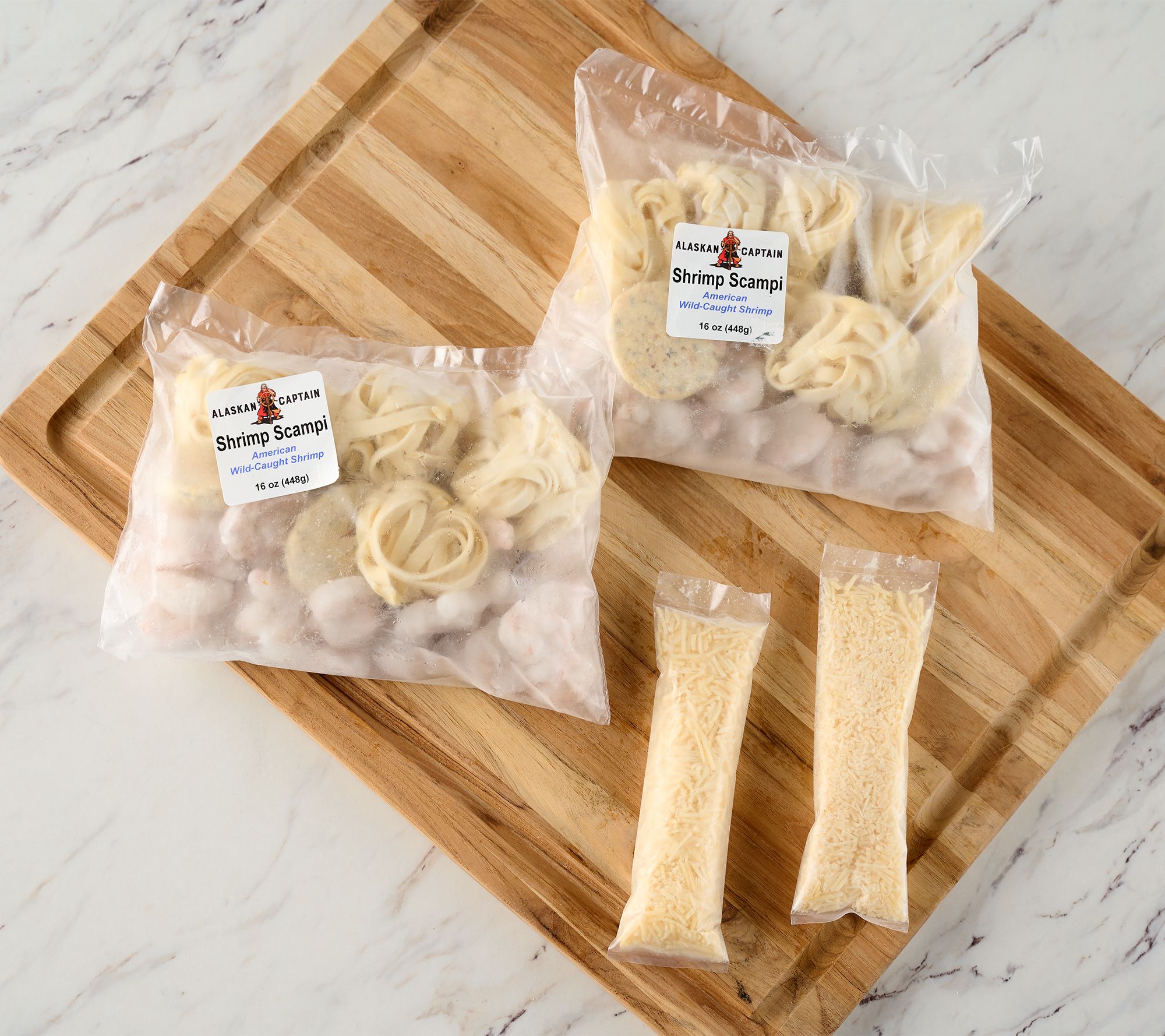 Includes two 1-lb bags of shrimp scampi with pasta