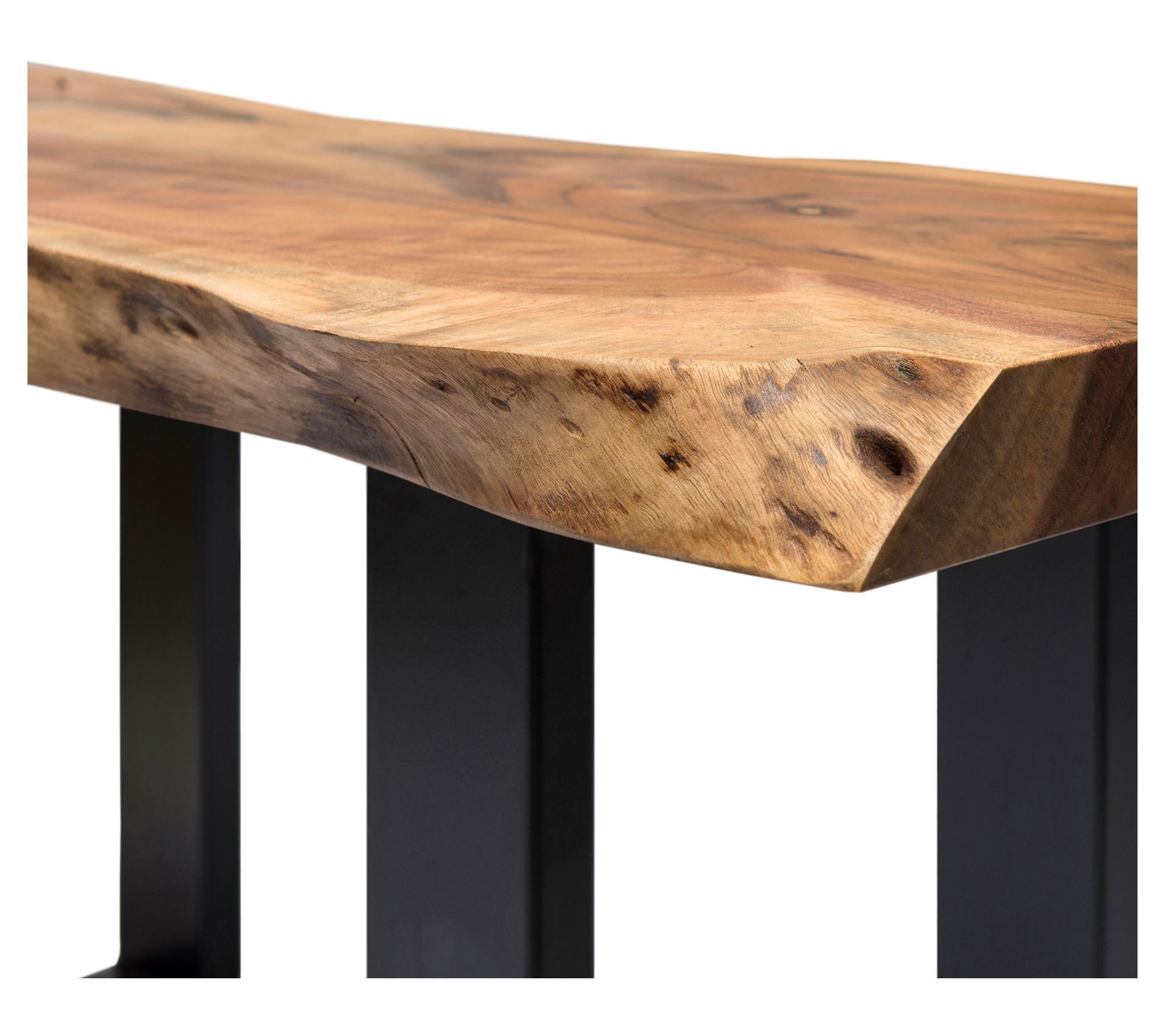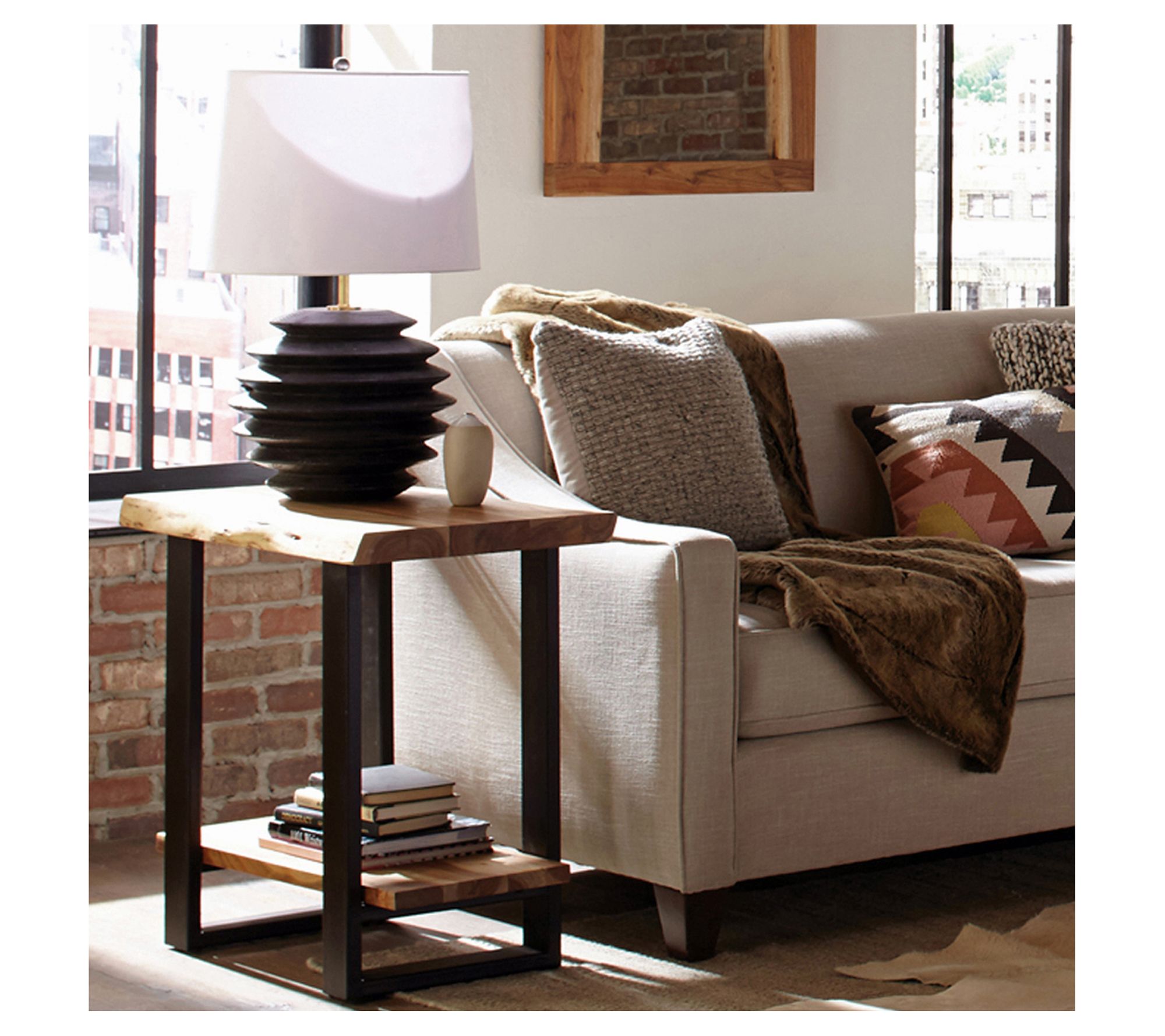 Create a welcoming spot for your morning coffee or favorite books with the Alpine End Table. Showcasing the organic charm of solid acacia wood and set atop bold black metal legs, this versatile accent table adds modern industrial flair to any space. The spacious lower shelf effortlessly holds decor or storage baskets while durable construction keeps up with everyday living. From Alaterre Furniture.