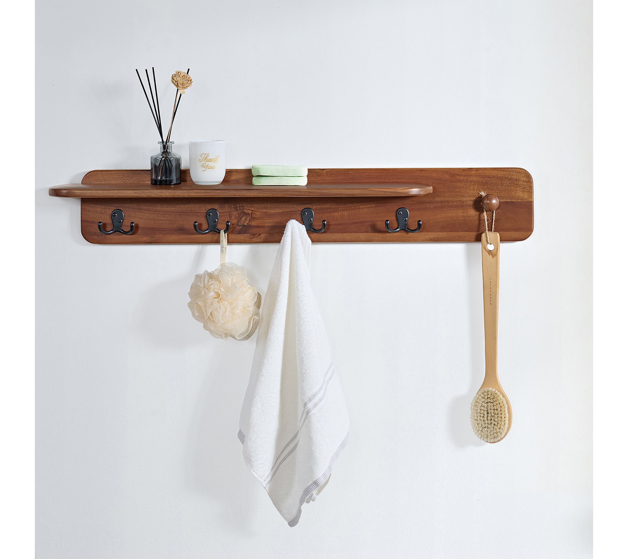 • Solid acacia wood and metal hooks