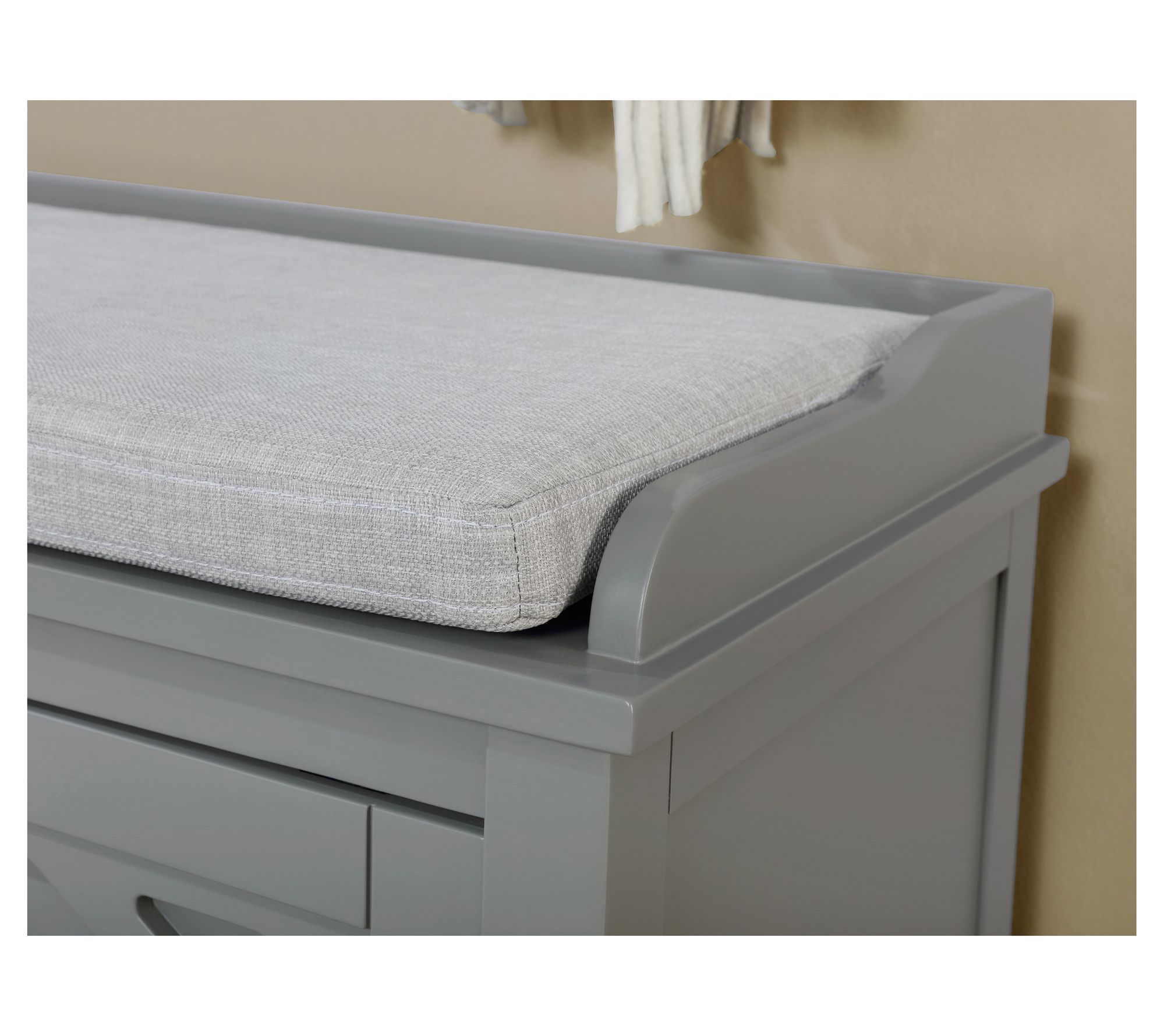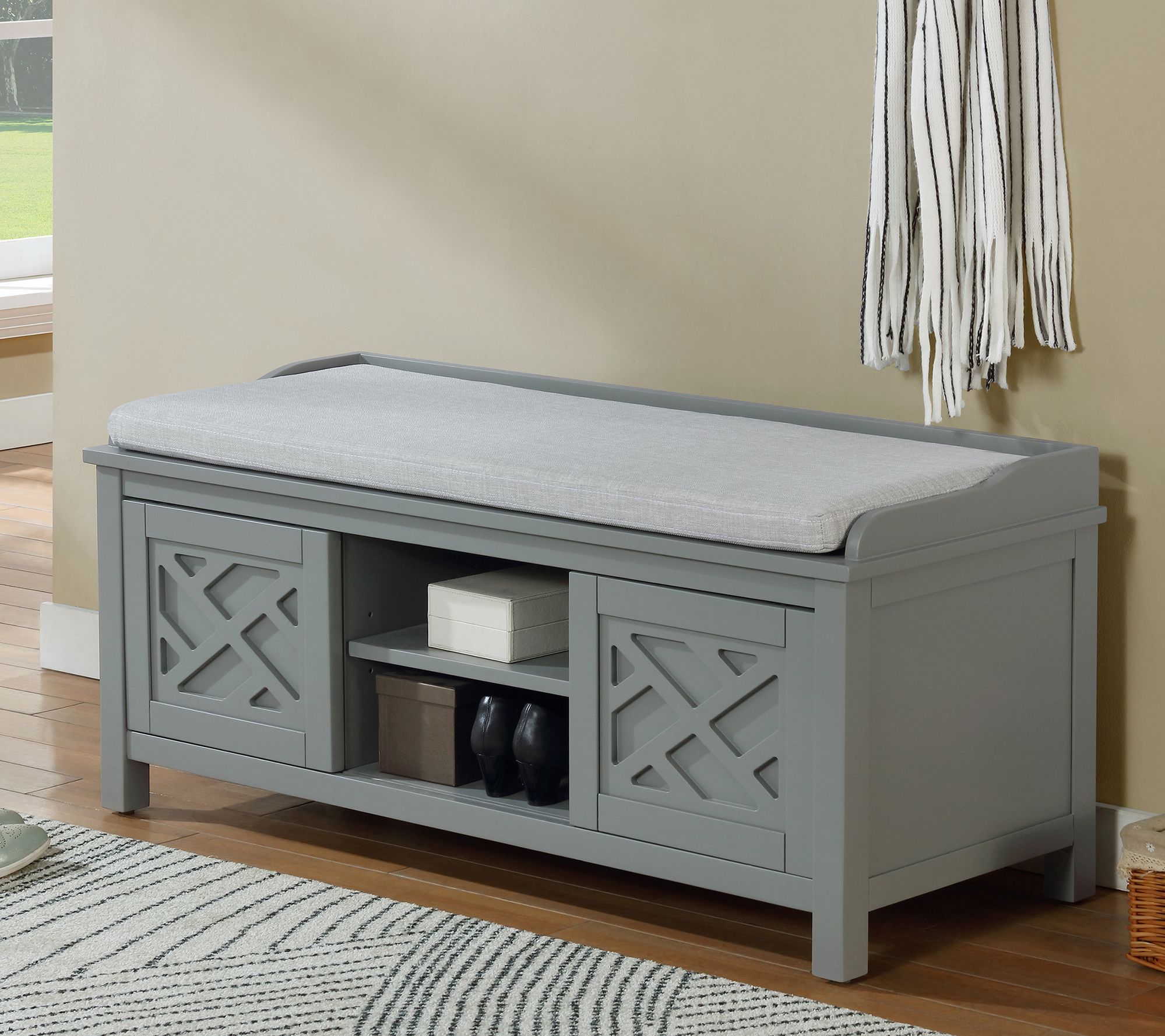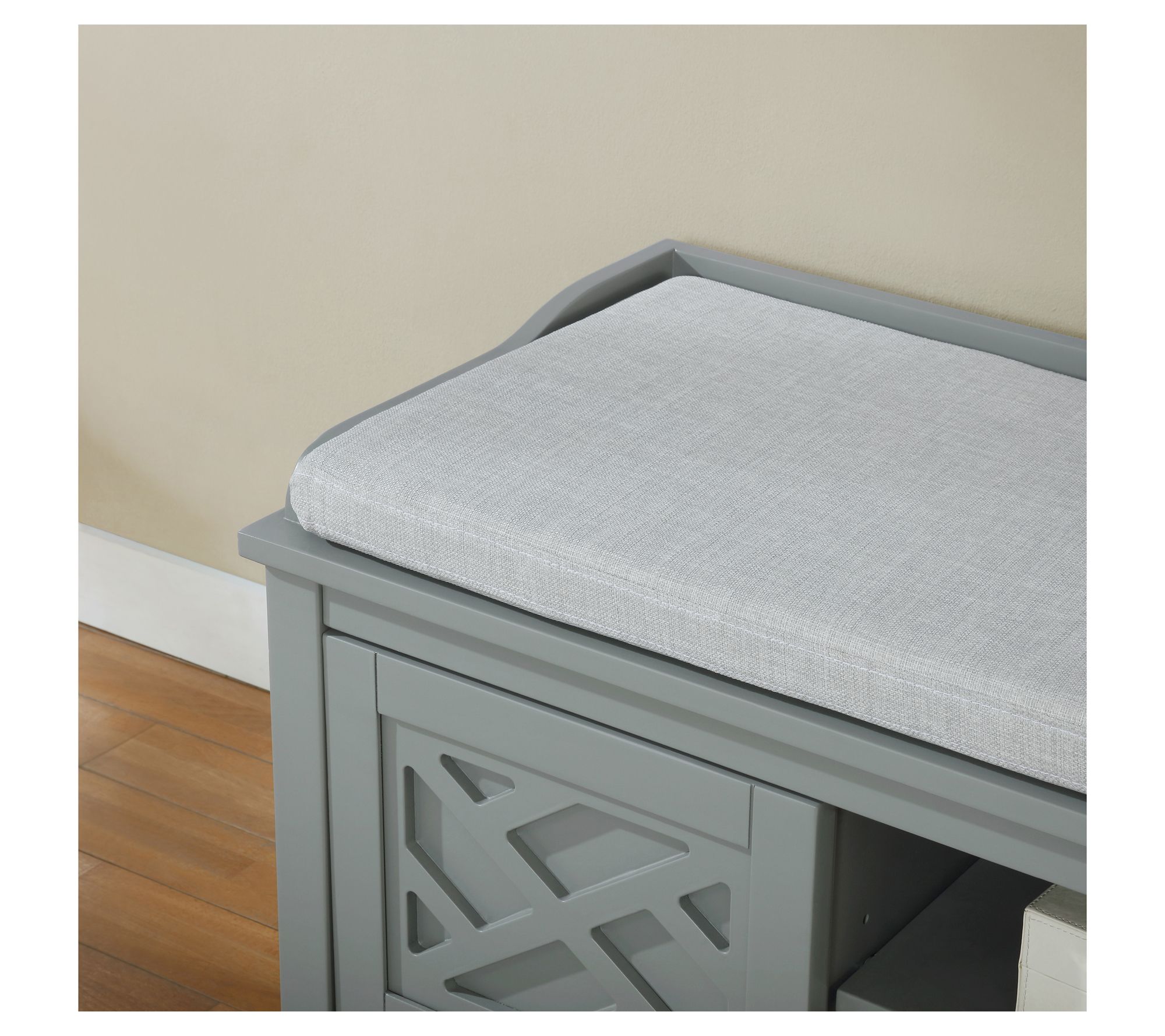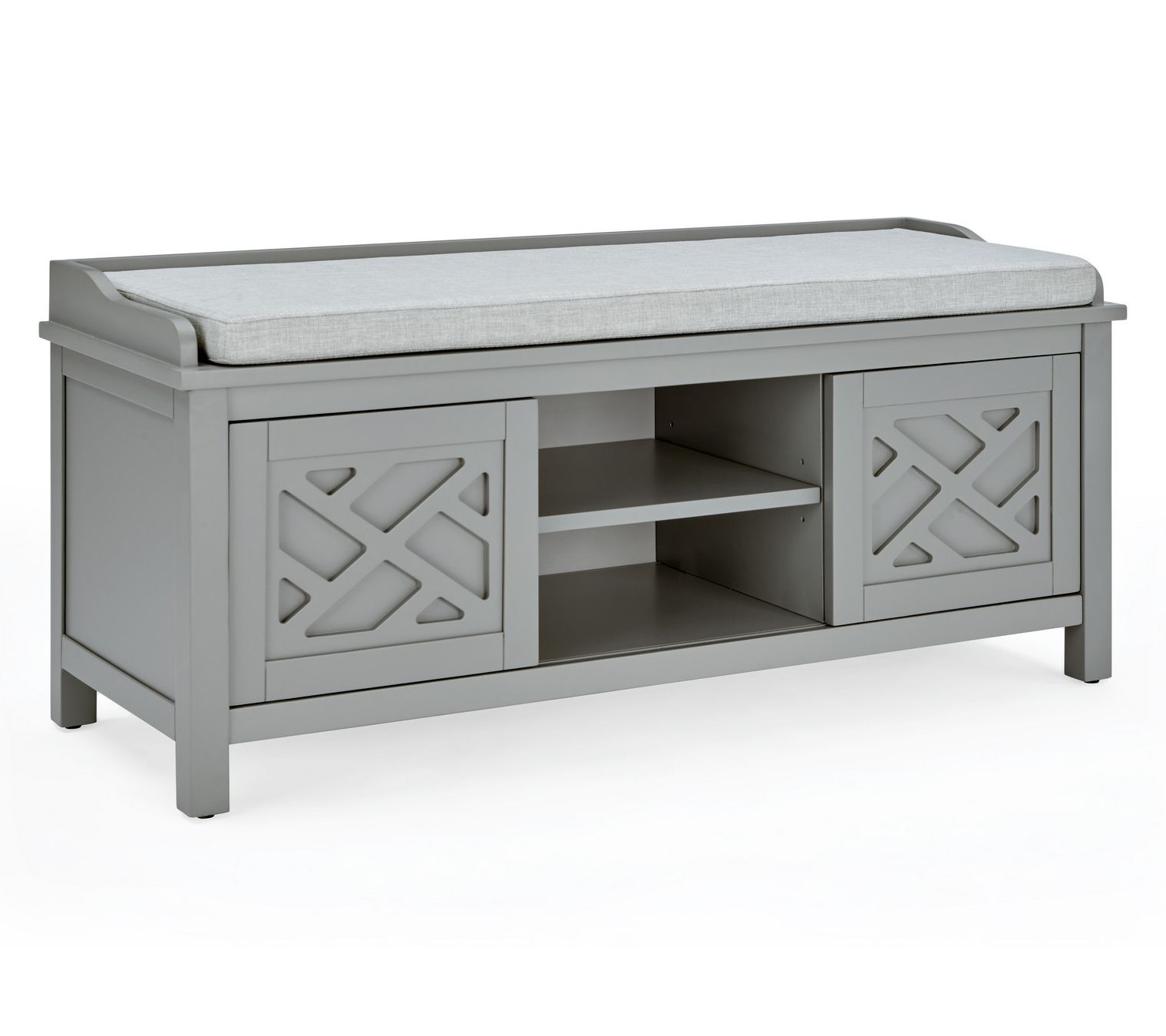 A welcoming spot to organize shoes, bags, and entryway essentials, this storage bench creates a tidy and inviting foyer with its elegant dove gray and white finish and modern square pattern. The built-in cubbies and adjustable shelves keep everything neatly tucked away, while the decorative cushion offers a comfortable seat as you get ready to head out the door. From Alaterre Furniture.