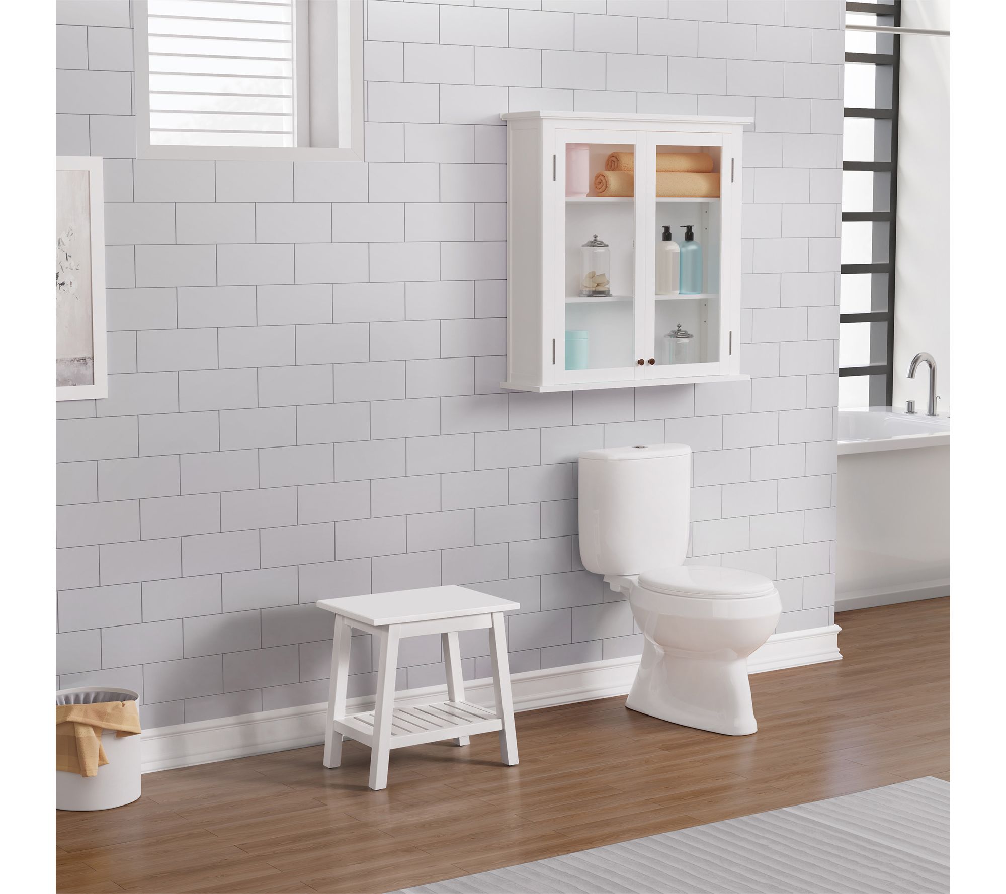 Add a welcoming touch to your entryway or organize essentials in any corner with this bench stool. Its space-saving design and built-in shelf make mornings smoother -- stash shoes, towels, or daily must-haves while enjoying sturdy seating for putting on boots or prepping for the day. From Alaterre Furniture.