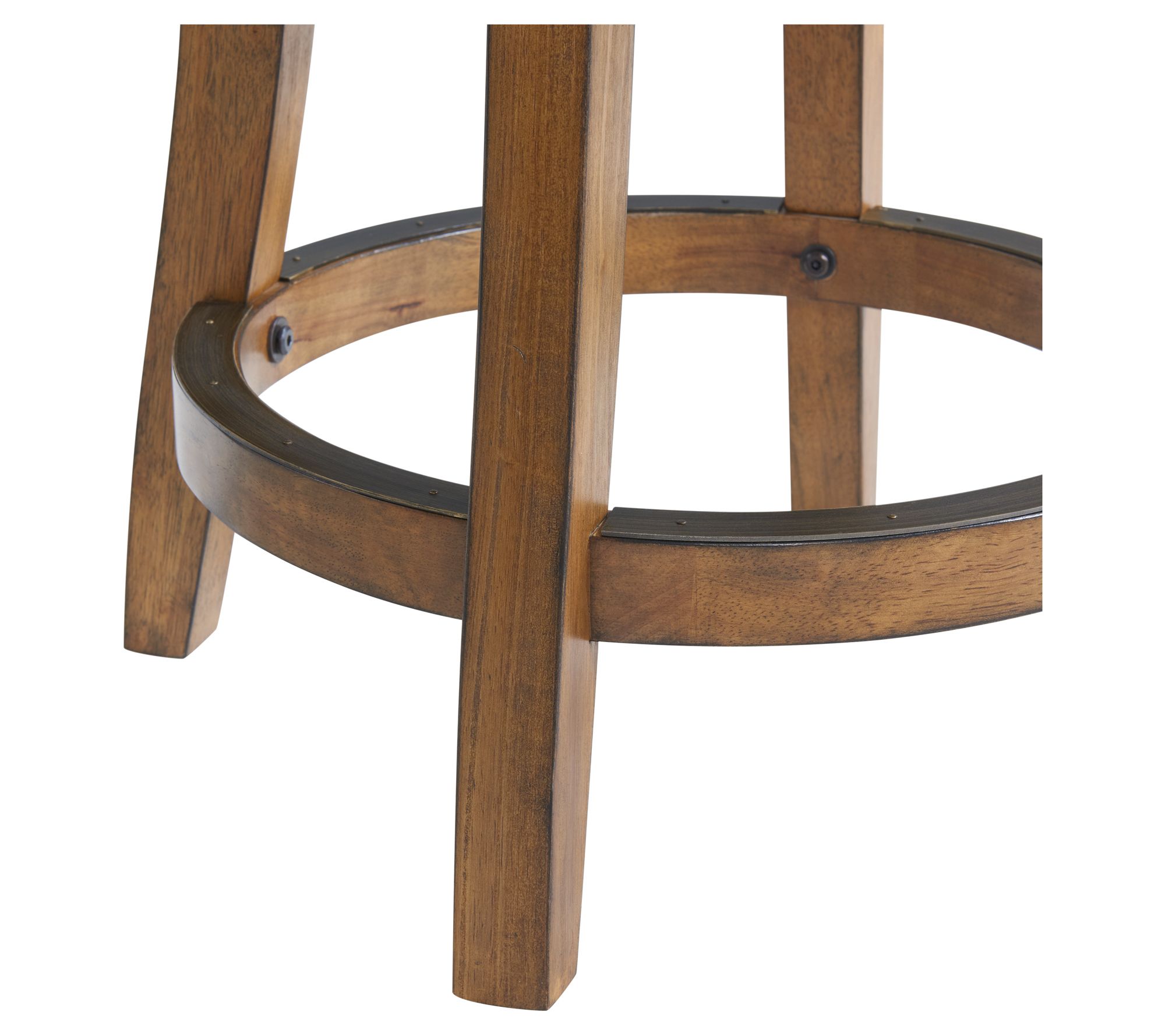 Add a stylish and comfortable touch to your kitchen or dining space with this set of Ellie counter height stools. The plush upholstered seats and supportive rubberwood frames make lingering over meals a joy, while the 360-degree swivel and memory return keep conversation flowing -- no matter where the party moves. From Alaterre Furniture.