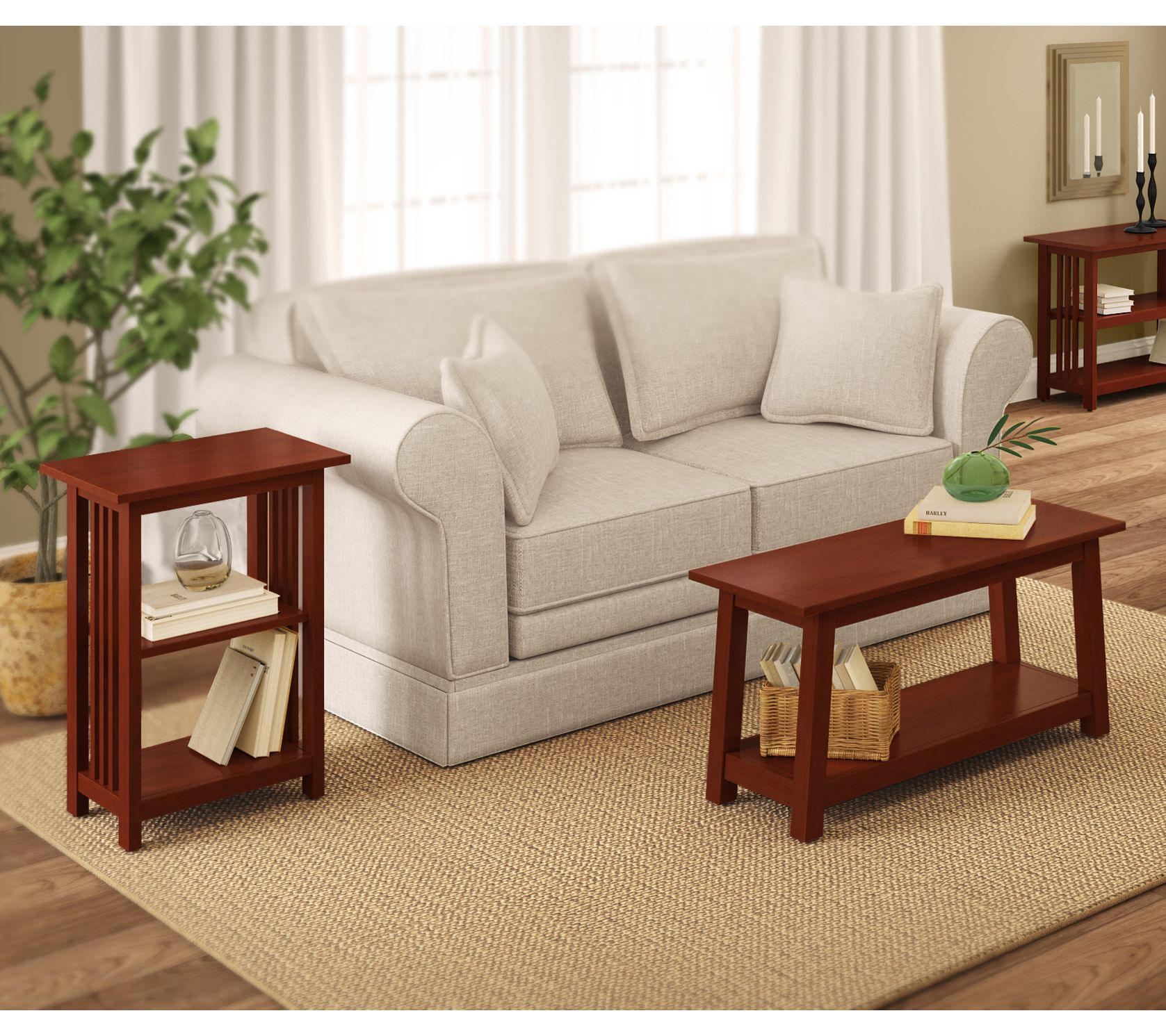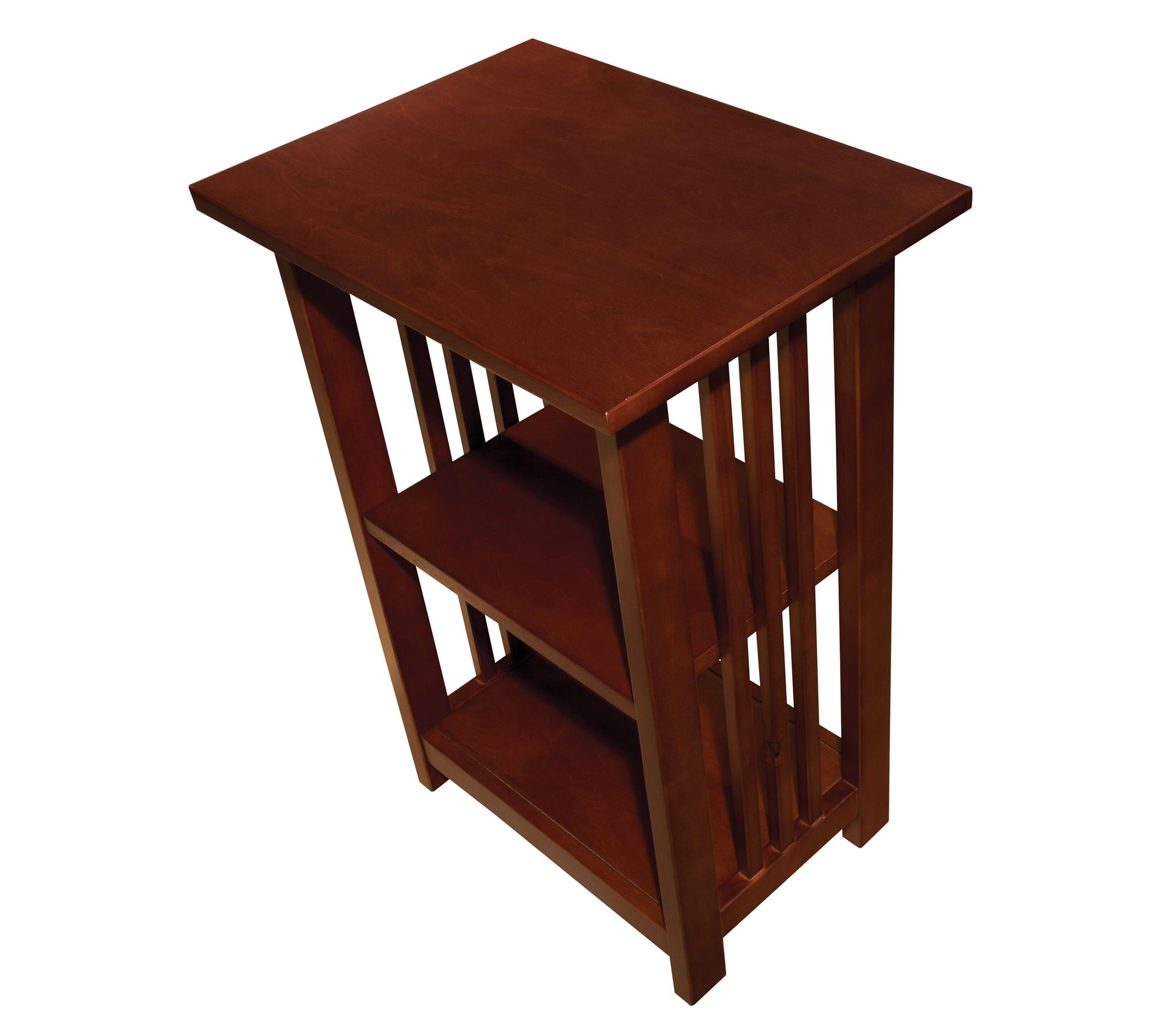 Pull up a chair and settle next to the Mission 2-Shelf End Table, a timeless piece that's just right for your living room, bedroom, or entryway. Sturdy shelves invite you to display plants, store your current reads, or keep small essentials handy, while the warm finish complements both cozy and classic spaces. From Alaterre Furniture.