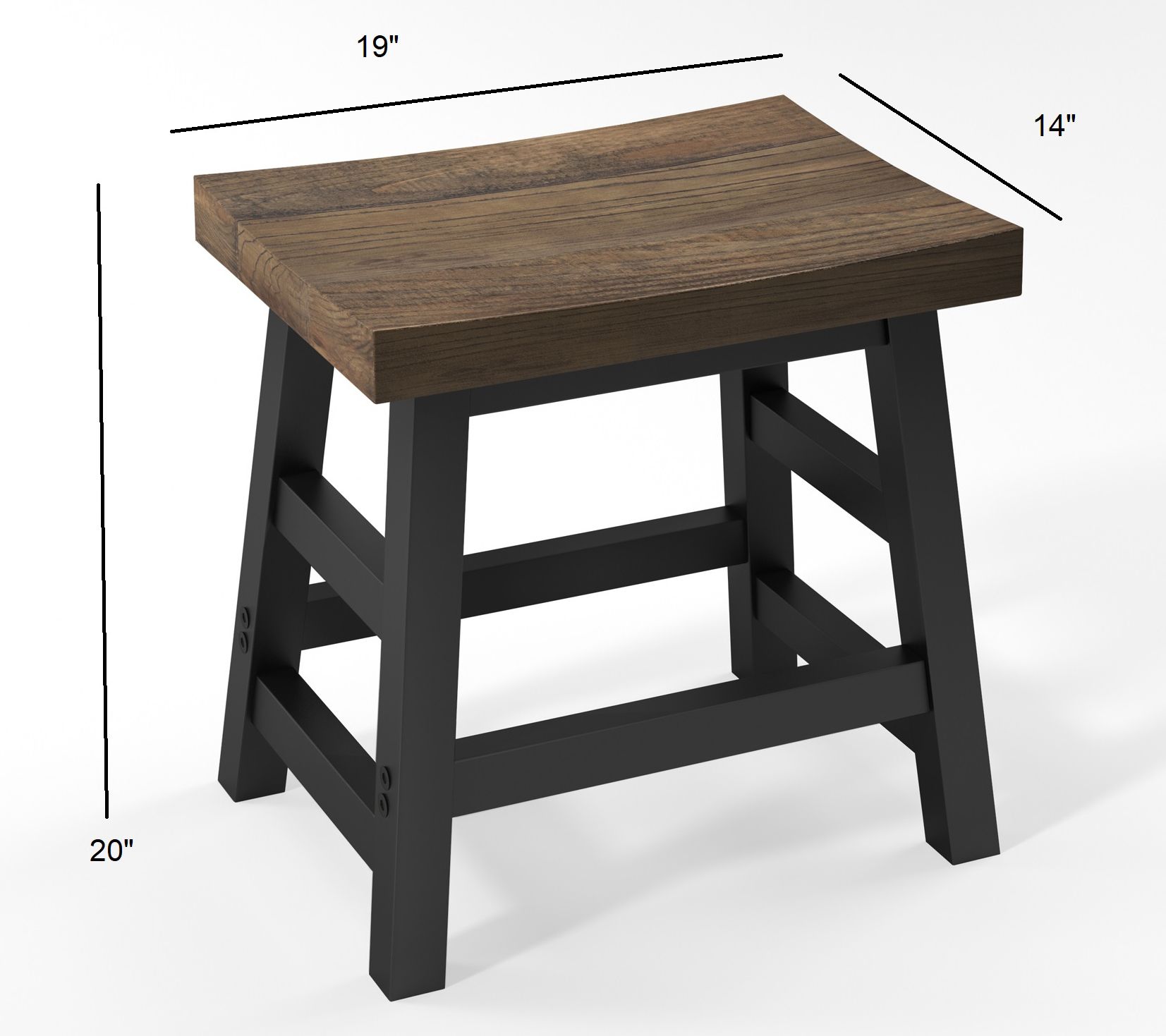 Bring rustic appeal and smart seating into your home with this Pomona 20-inch counter stool. Perfect for everything from quick breakfasts at the kitchen island to extra guests in the dining room, its solid pine wood seat and sturdy black metal frame offer reliable comfort and effortless style. The backless design slides neatly under counters or tables for a spacious, uncluttered look. From Alaterre Furniture.