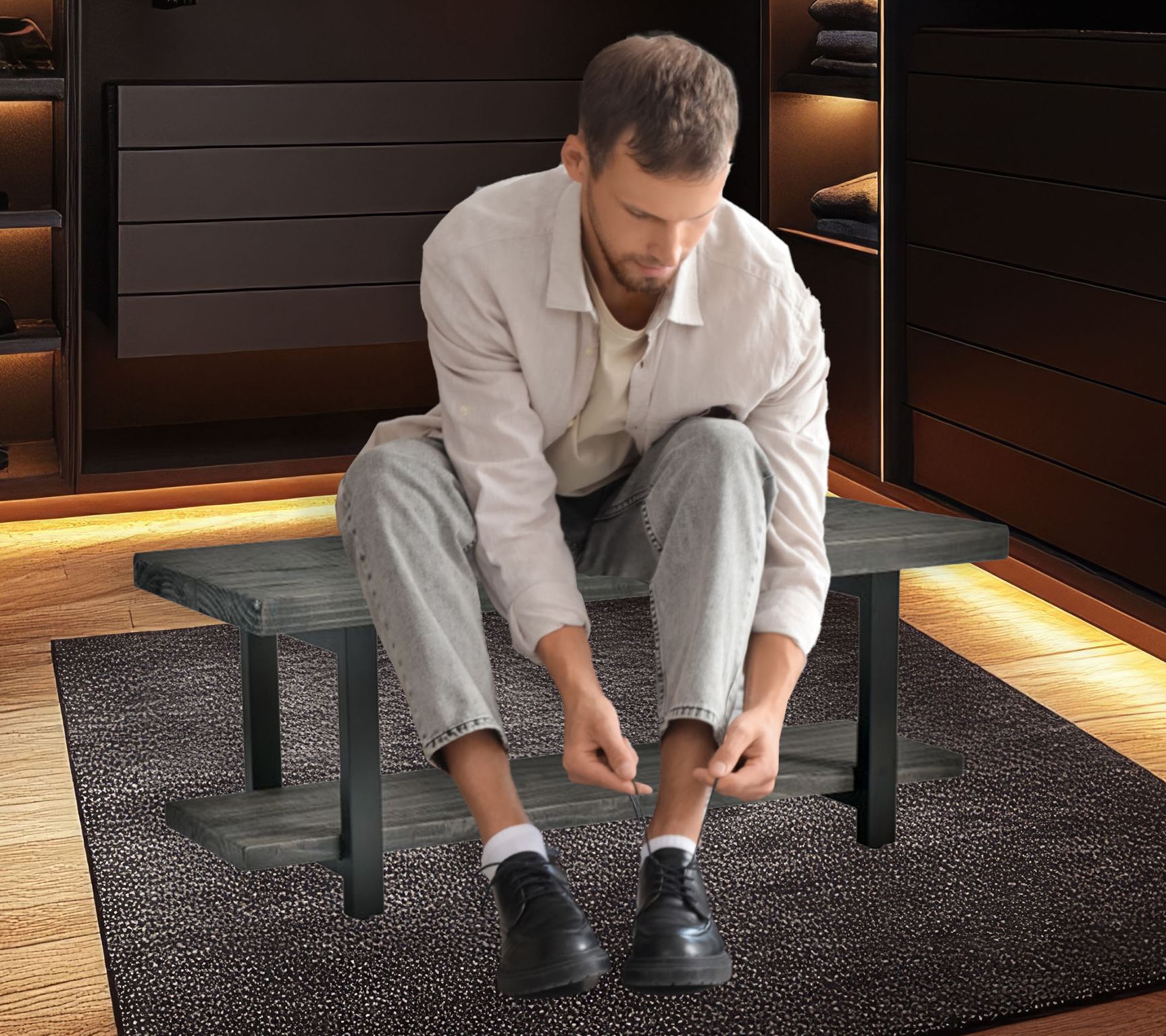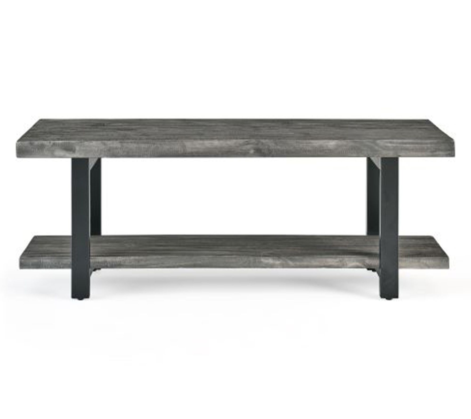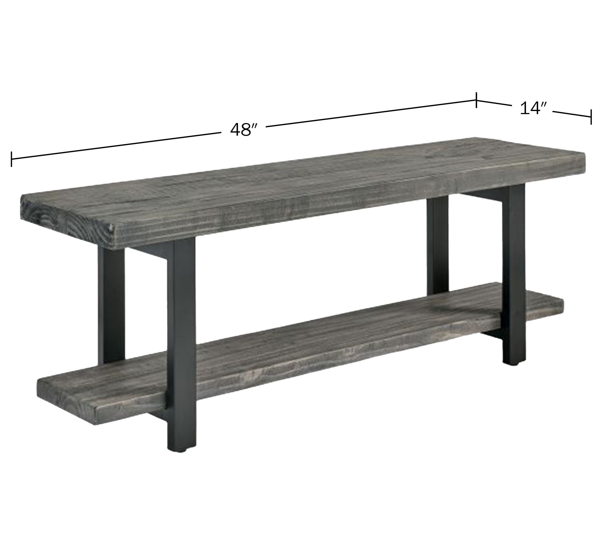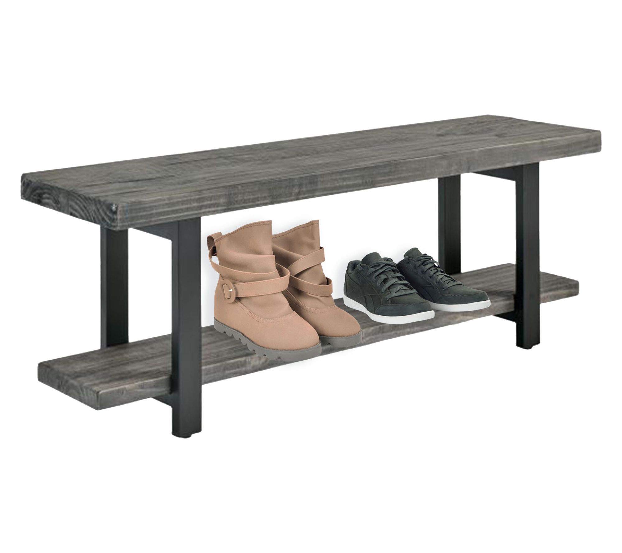 With charming rustic-industrial style and the warmth of slate gray pine, this entryway bench adds character and versatility to your home. Tidy up your space by stowing shoes or accessories on the convenient lower shelf, and enjoy a sturdy spot to sit while getting ready for the day. From Alaterre Furniture.