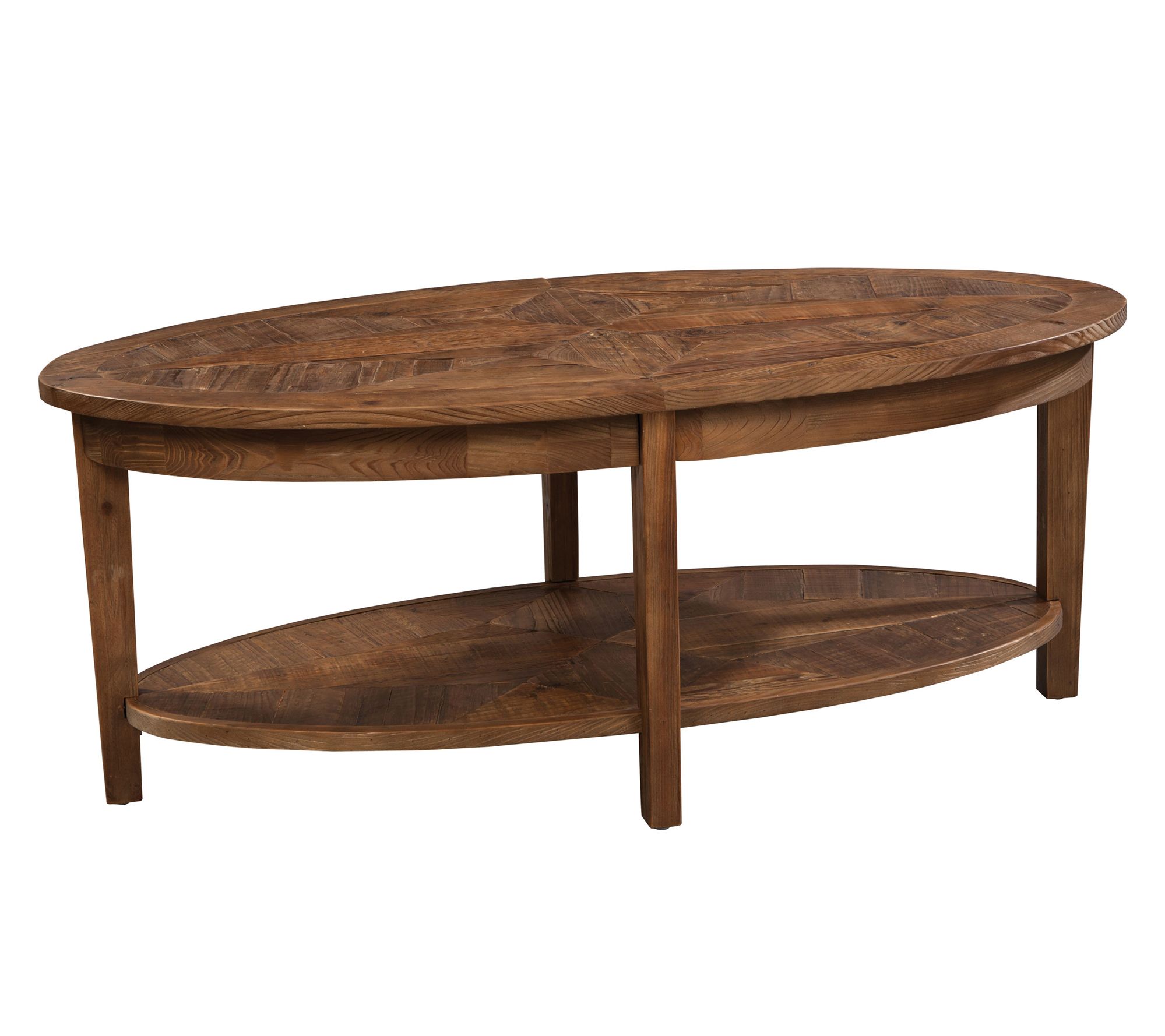 Bring inviting warmth and rustic character to your living room by gathering around this oval cedar coffee table, complete with a handy lower shelf for added storage or display. The beautiful wood detailing stands out in any setting, making it easy to style with books, trays, or decor. From Alaterre Furniture.