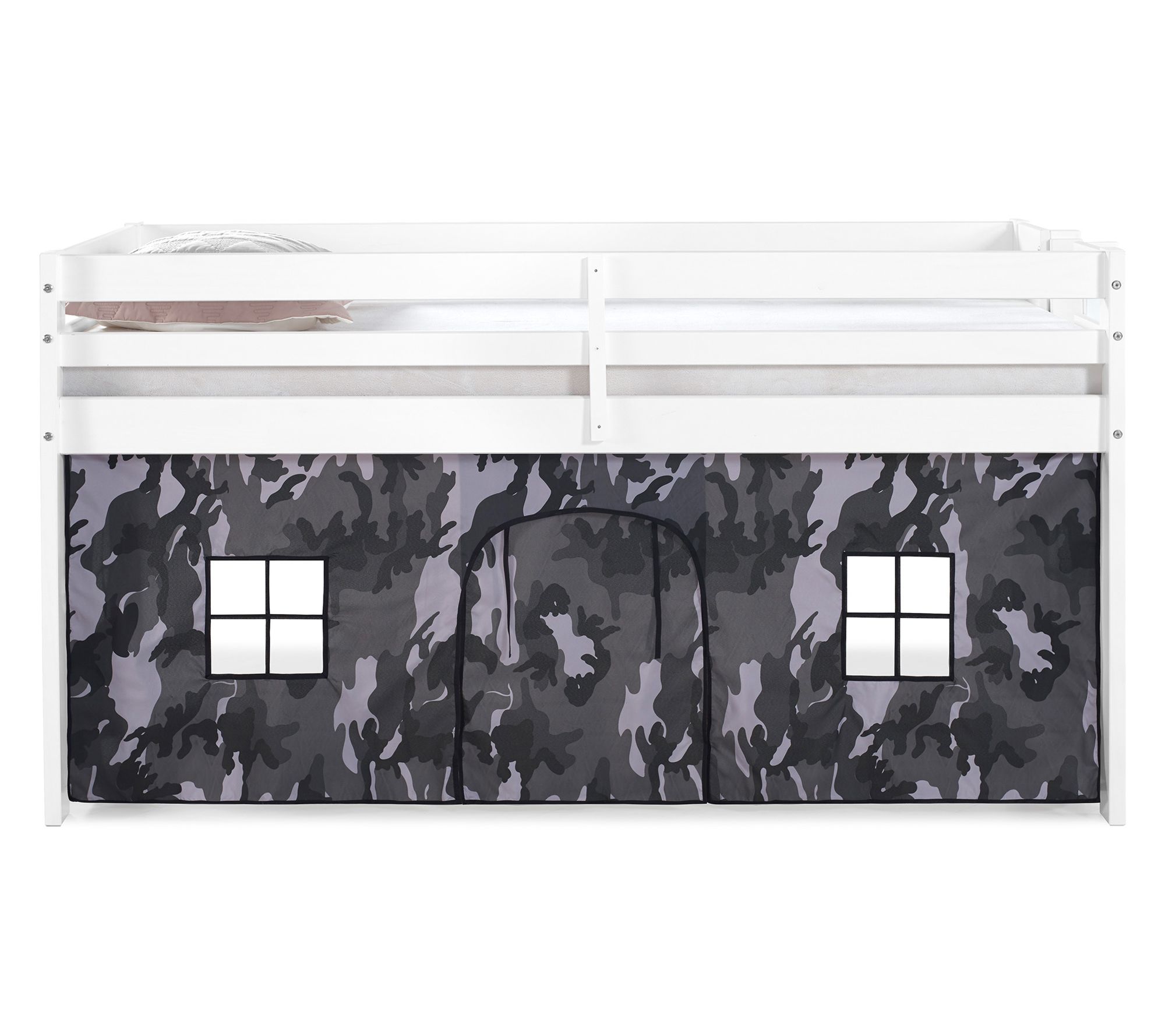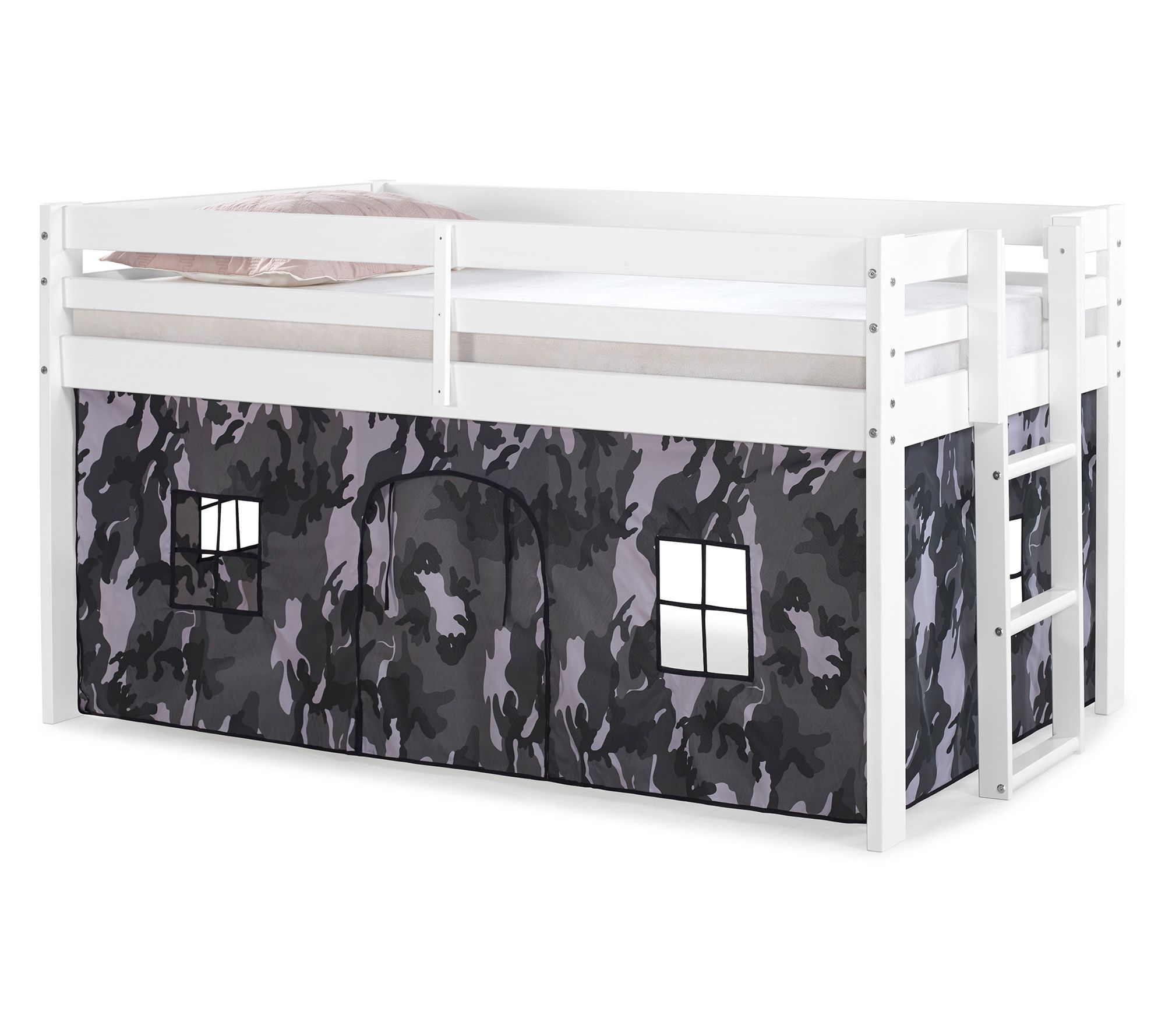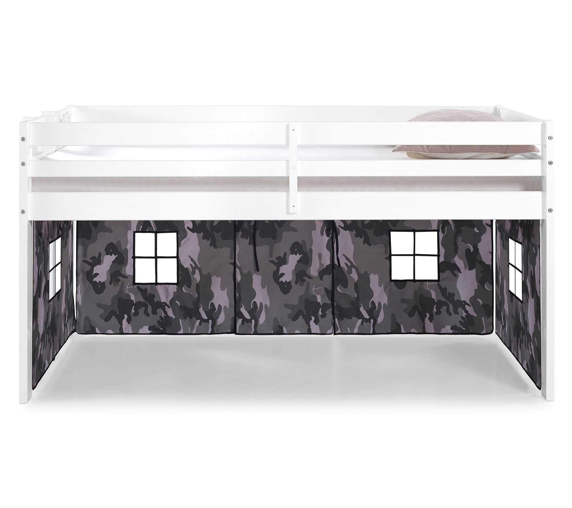 • Includes junior loft twin bed and playhouse tent