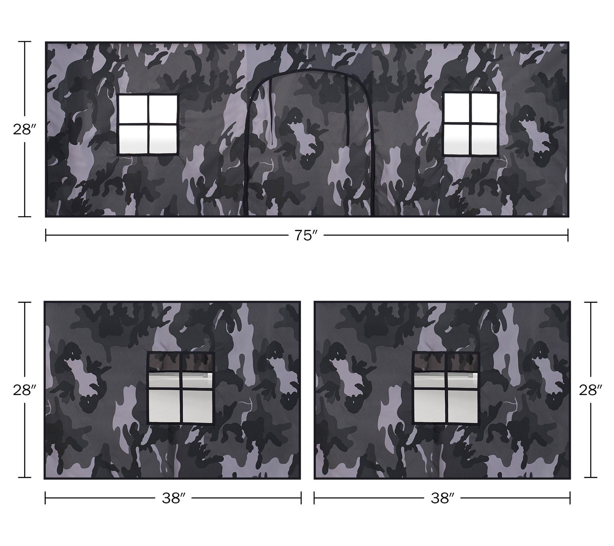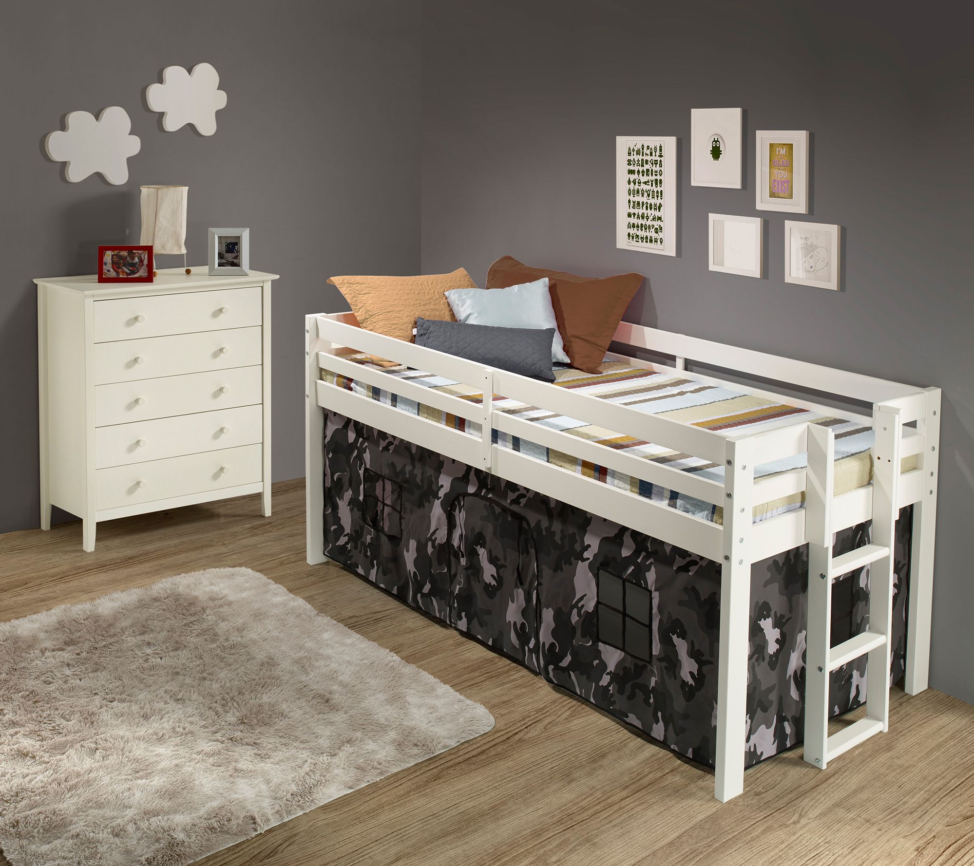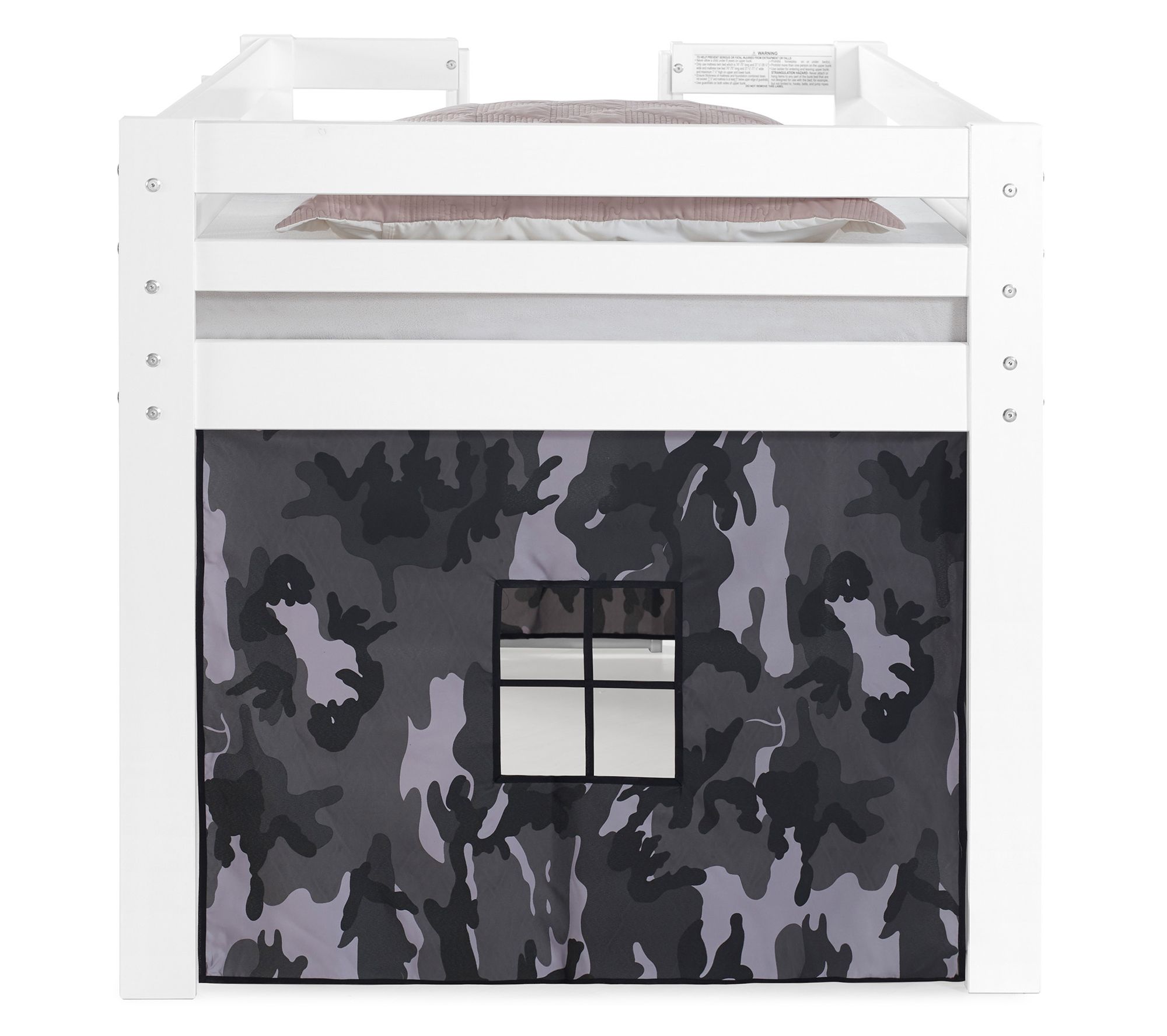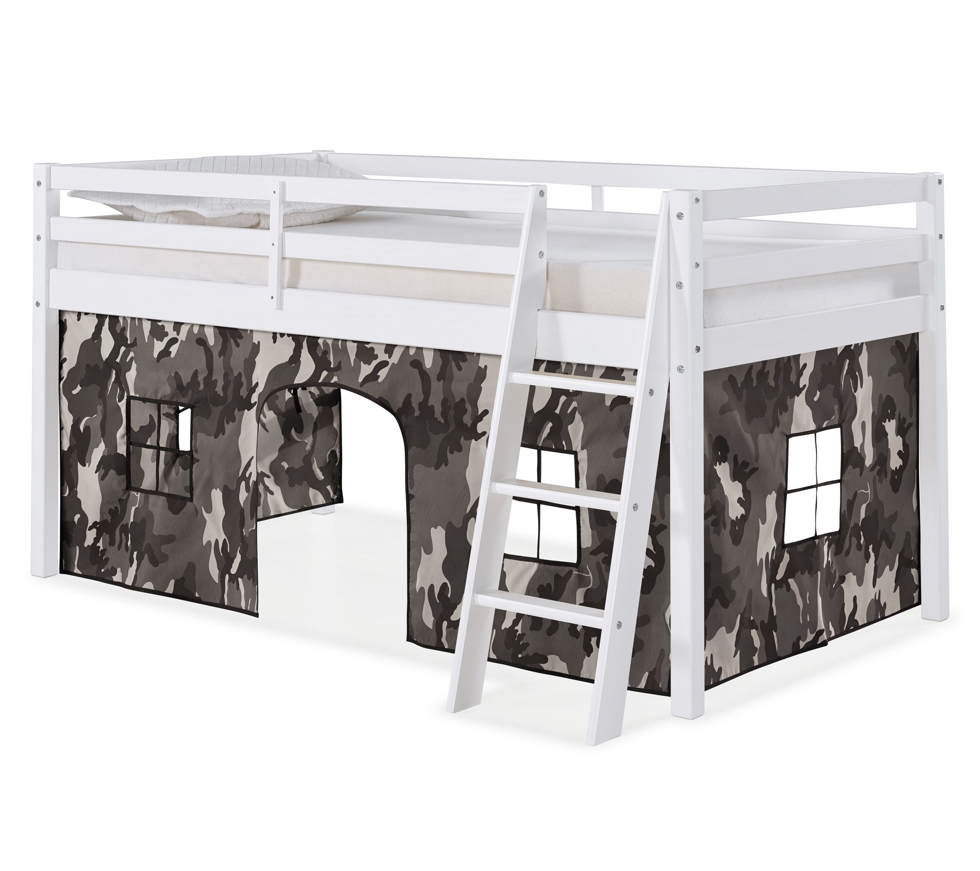 • Includes junior loft twin bed and playhouse tent