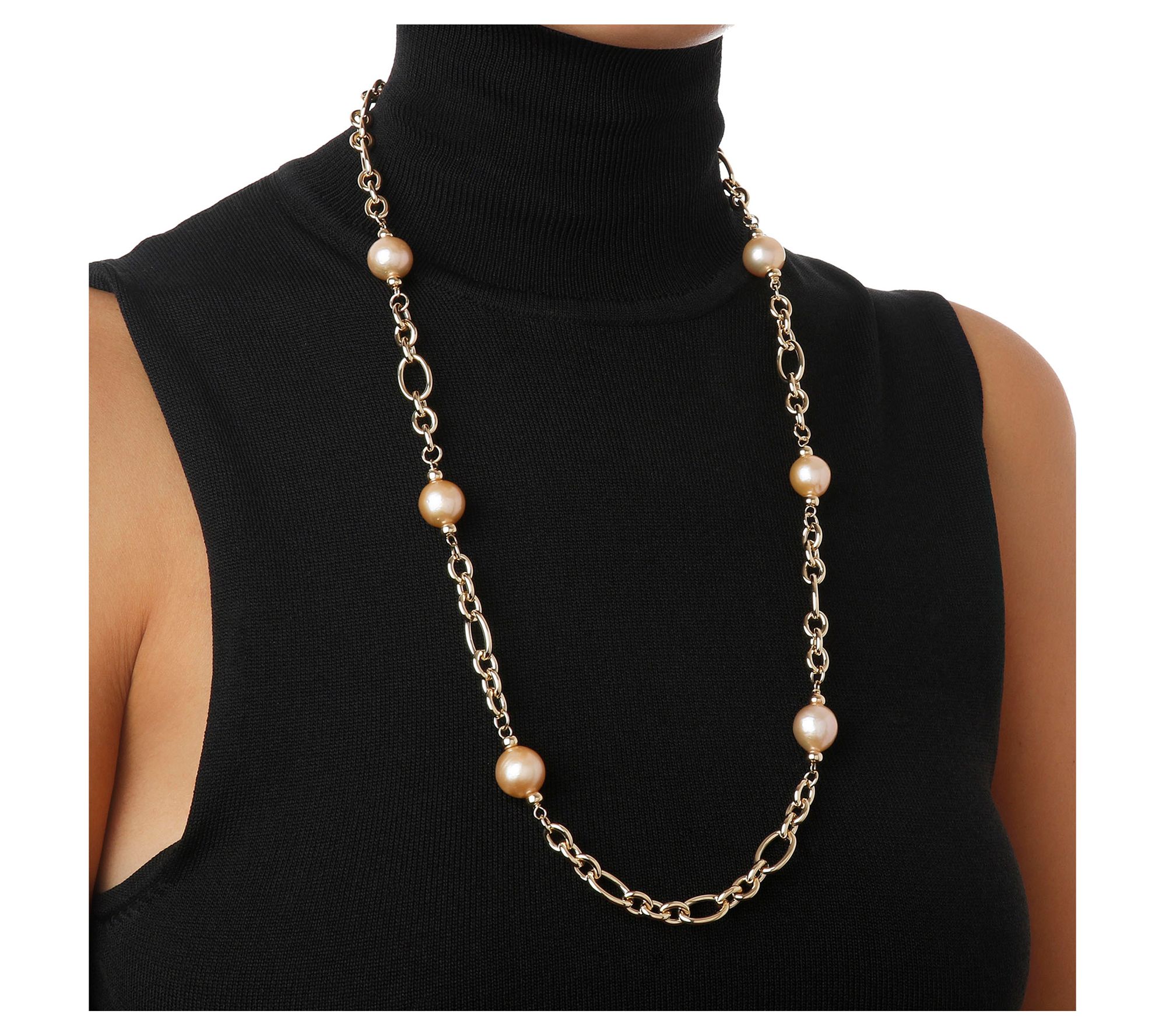 A flawless fusion of elegance and versatility, this 14K gold necklace is accented with cultured freshwater pearl stations and is stunning by itself or paired with shorter pieces. From Alberto Milani.