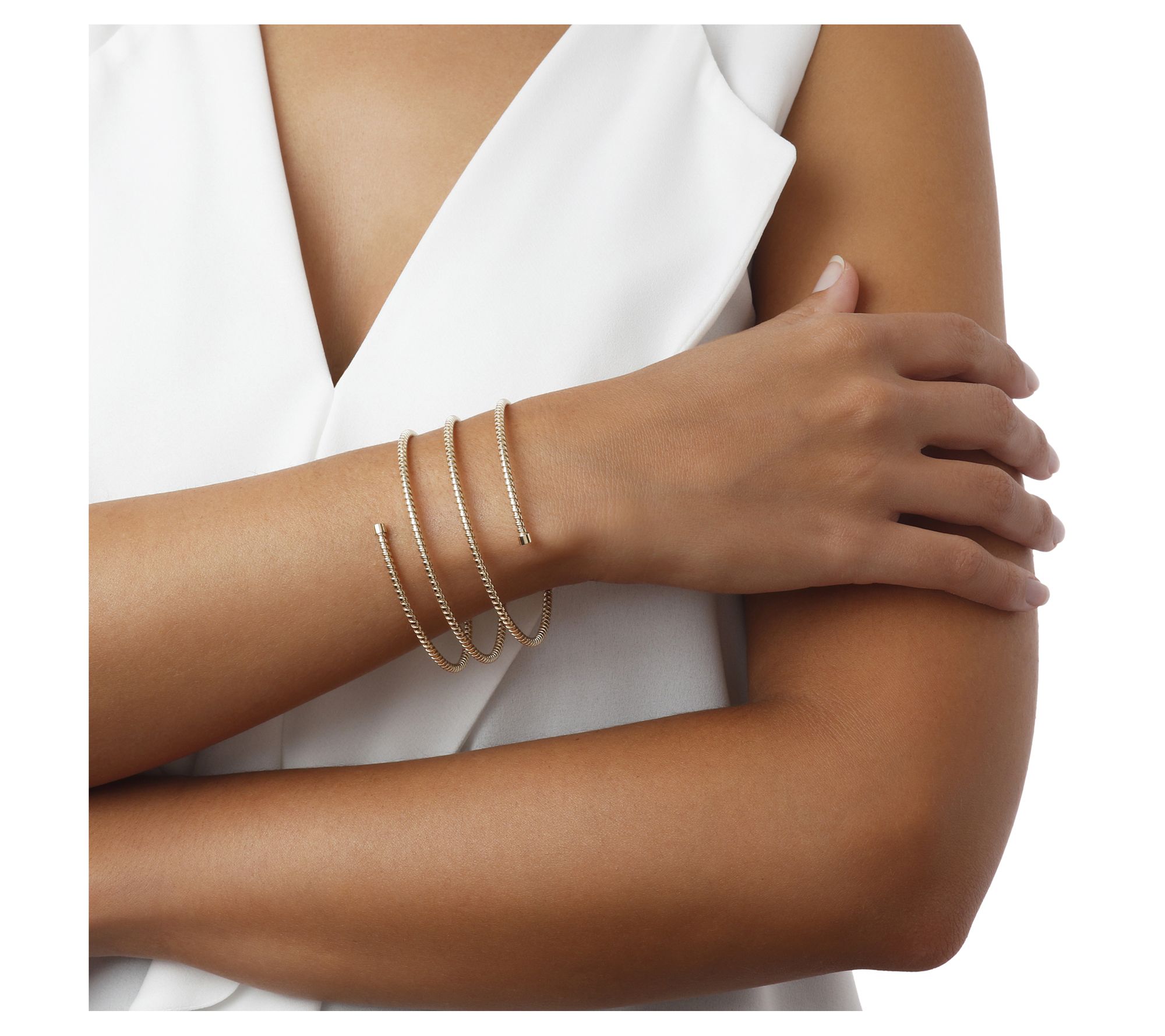 Execute a layered look just by slipping on this multi-row wrap bangle, complete with a chic spiral cuff closure. From Alberto Milani.