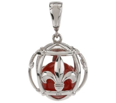 • Highly polished; faceted, round gemstone bead encased in sphere with fleur-de-lis and cross motif