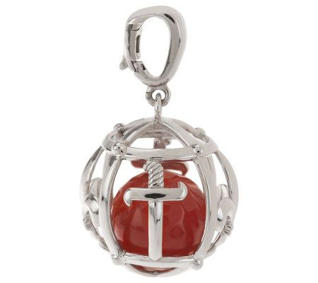 Beautiful from every angle. A faceted, round gemstone is encased in a sphere with a fleur-de-lis and cross motif, lending this sterling silver enhancer its distinctive flair. From Aldo Orta.