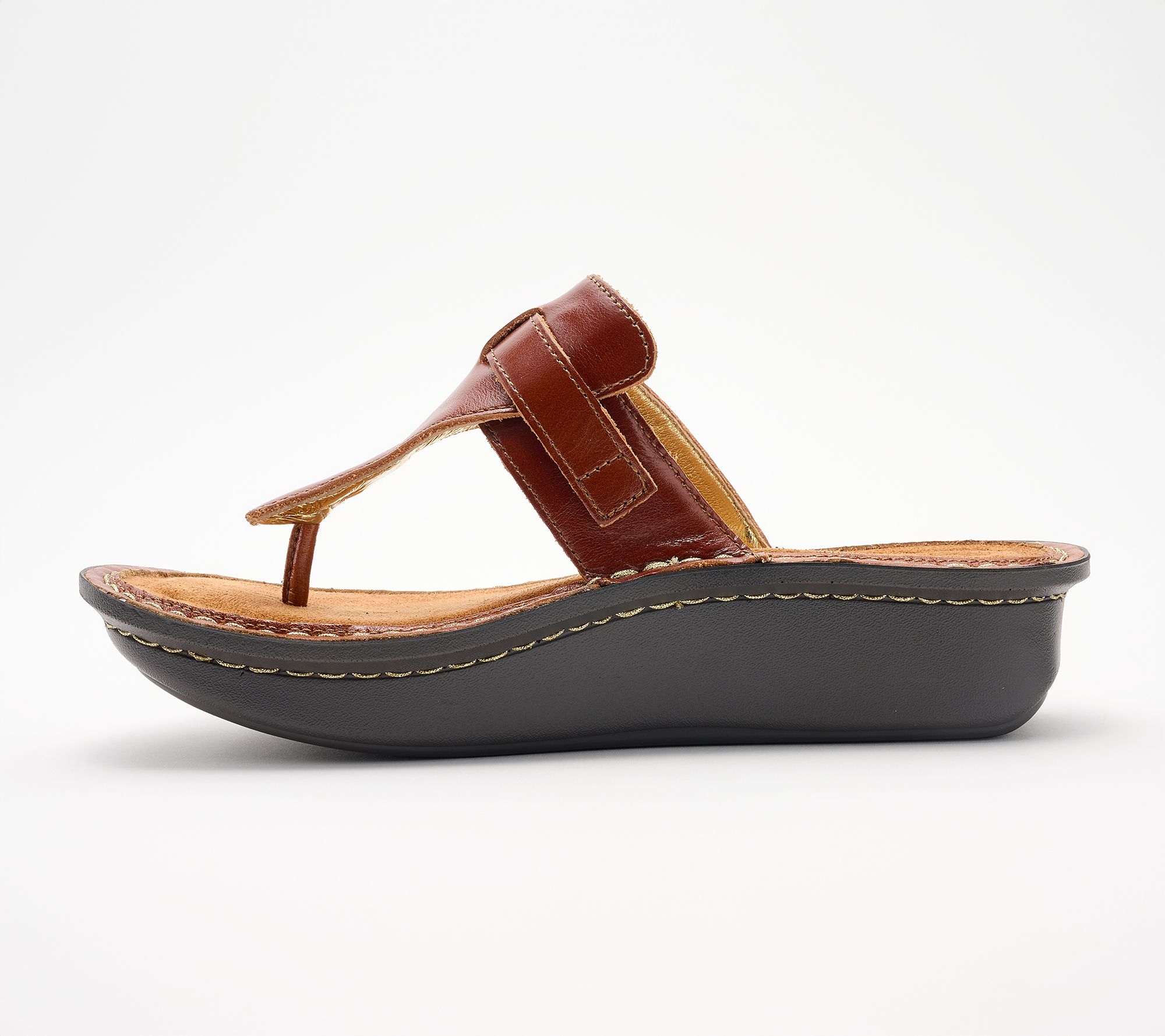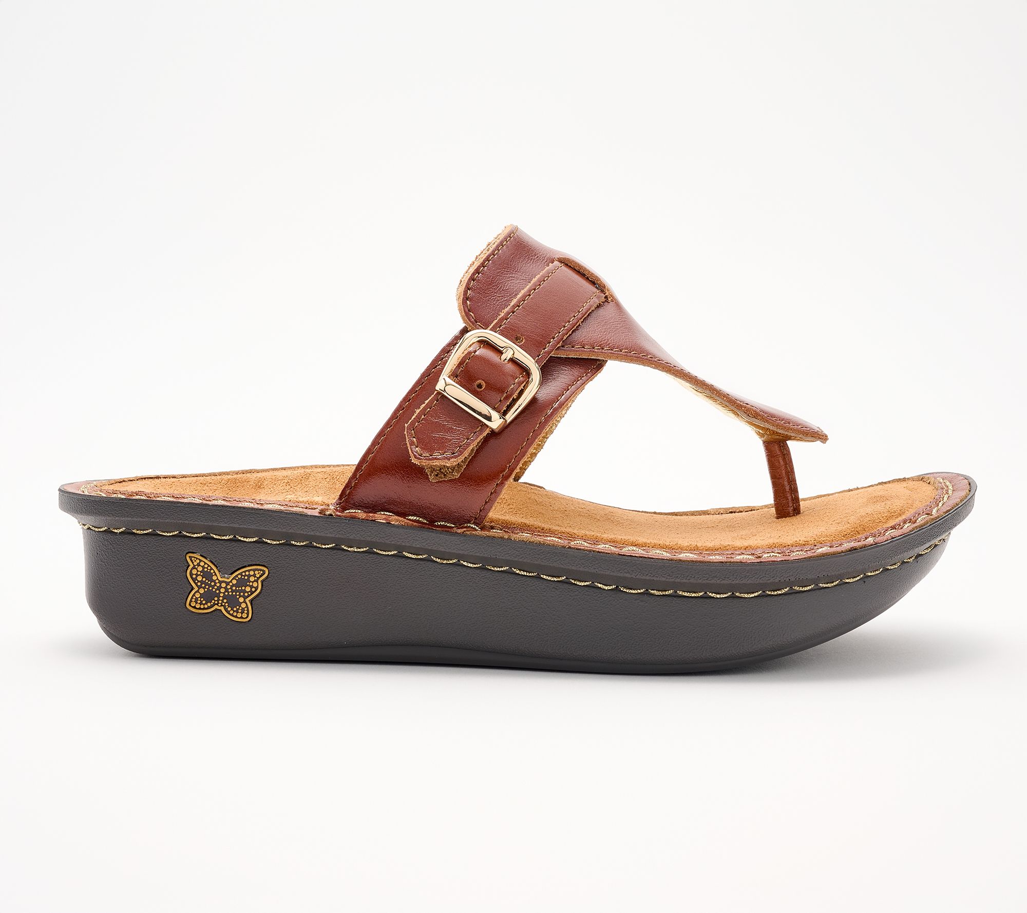 Slip-on thong sandals deliver easygoing comfort with adjustable straps -- ideal for spontaneous outings or laid-back weekends. The rich leather upper combines style and practicality, while the microsuede footbed keeps every step plush. From Alegria.