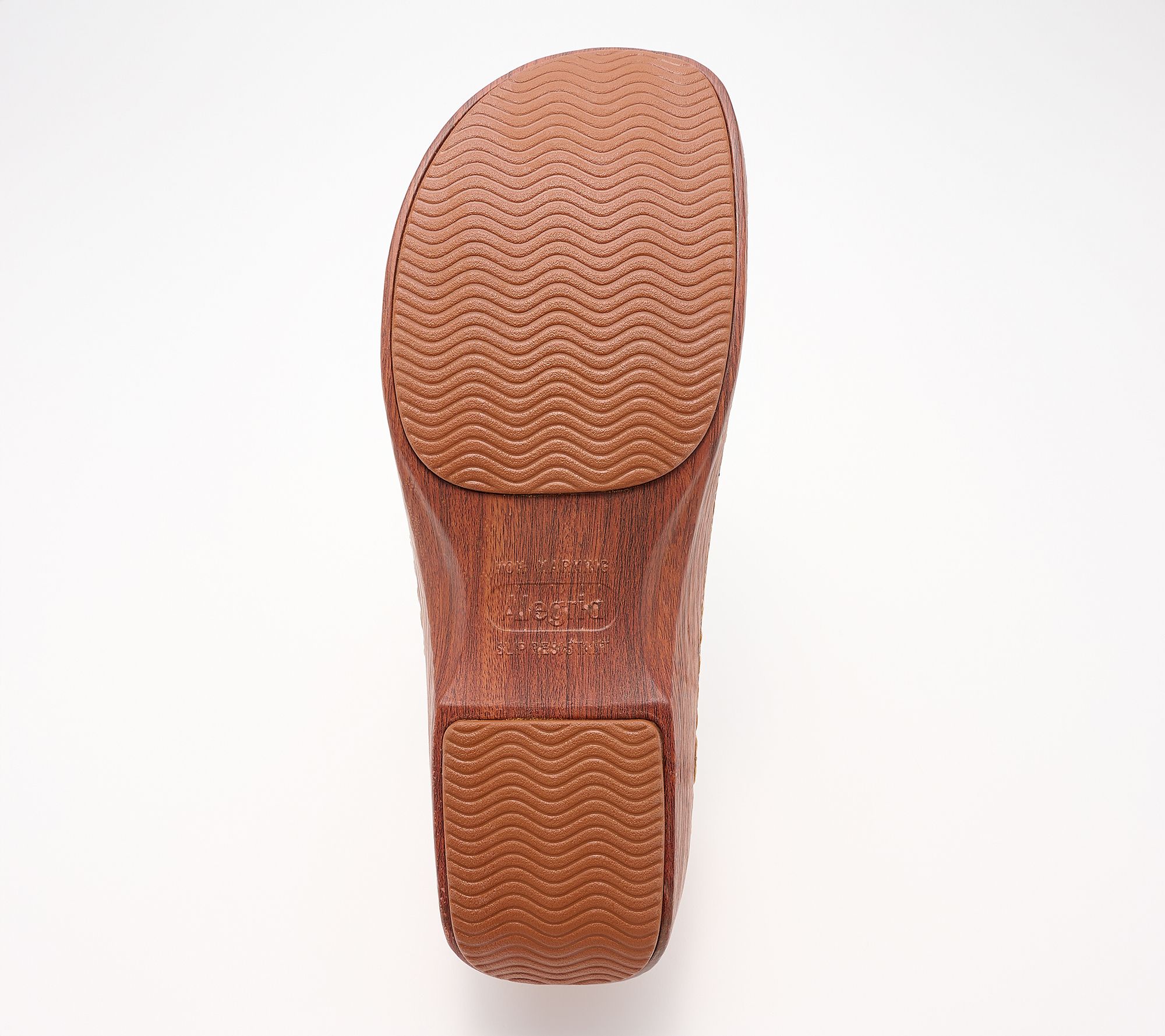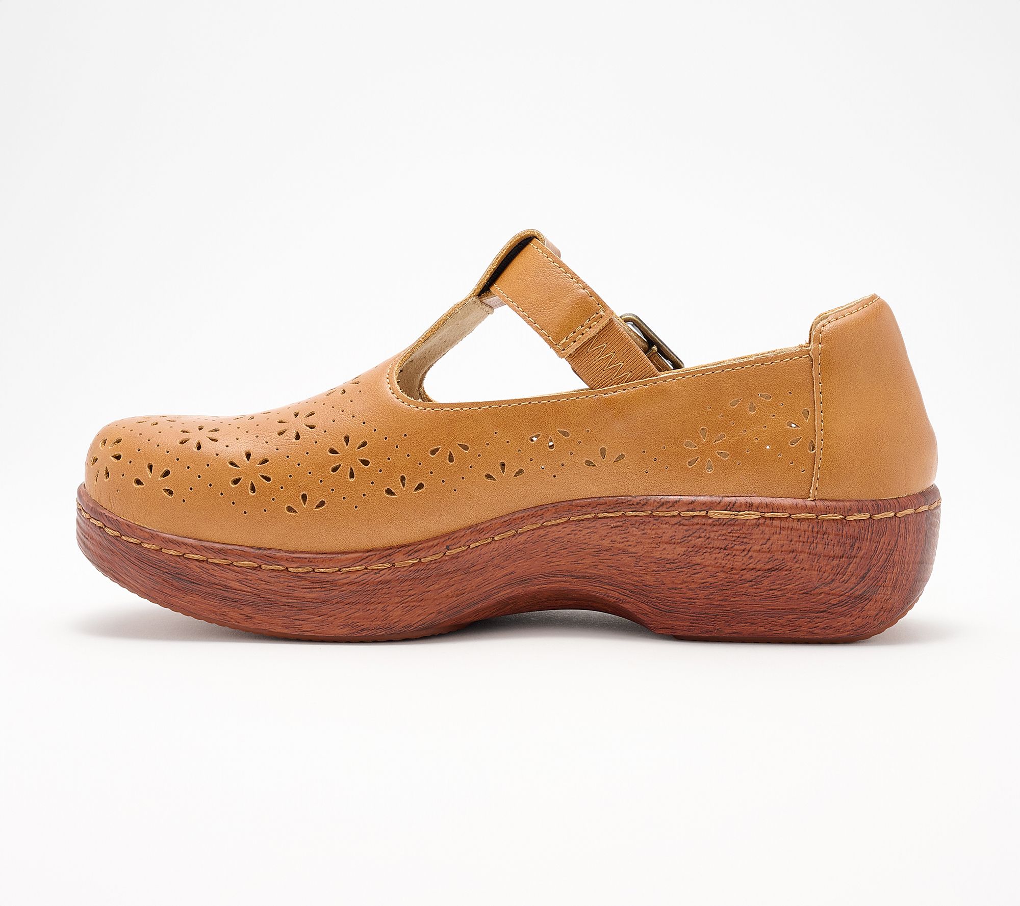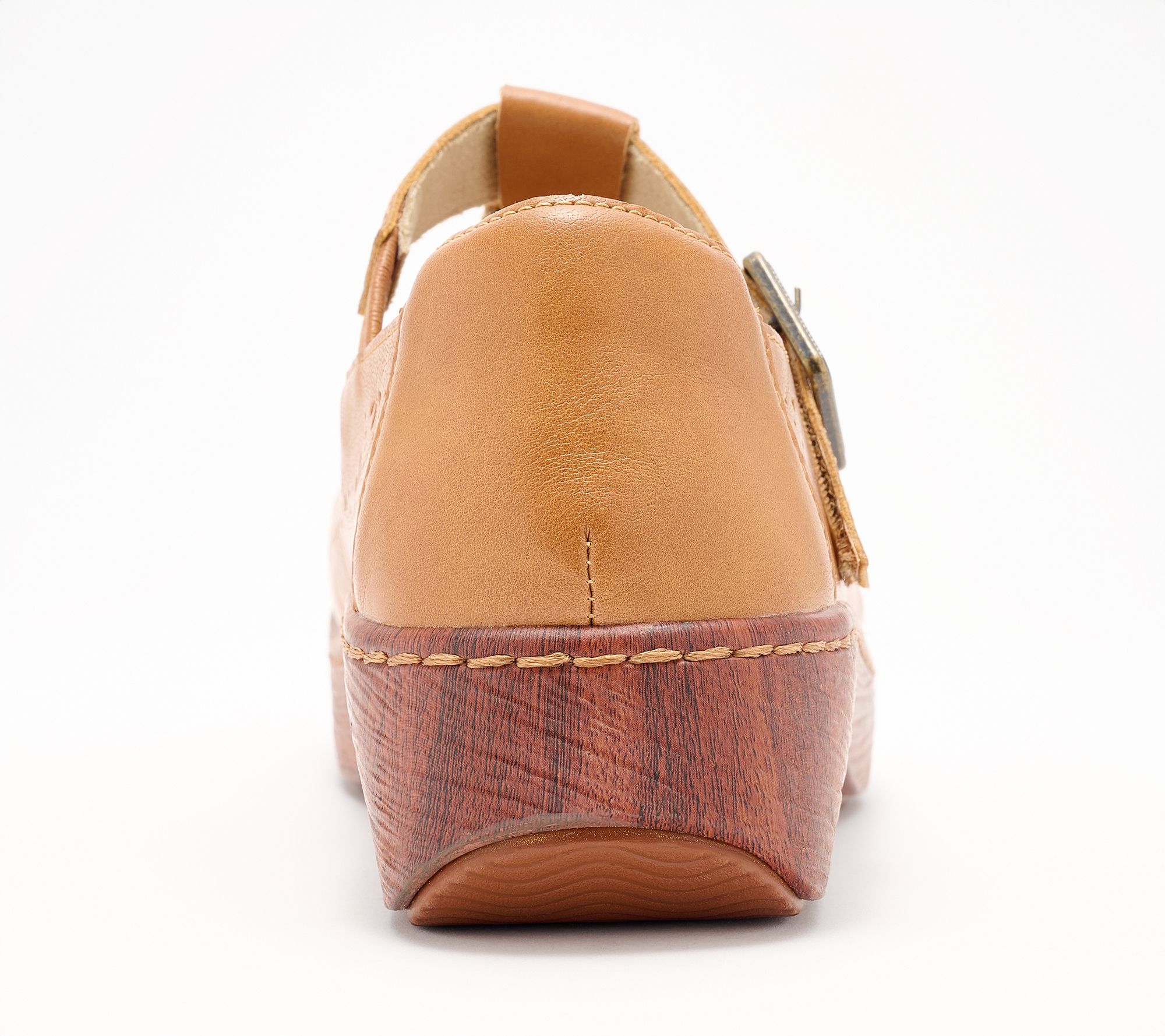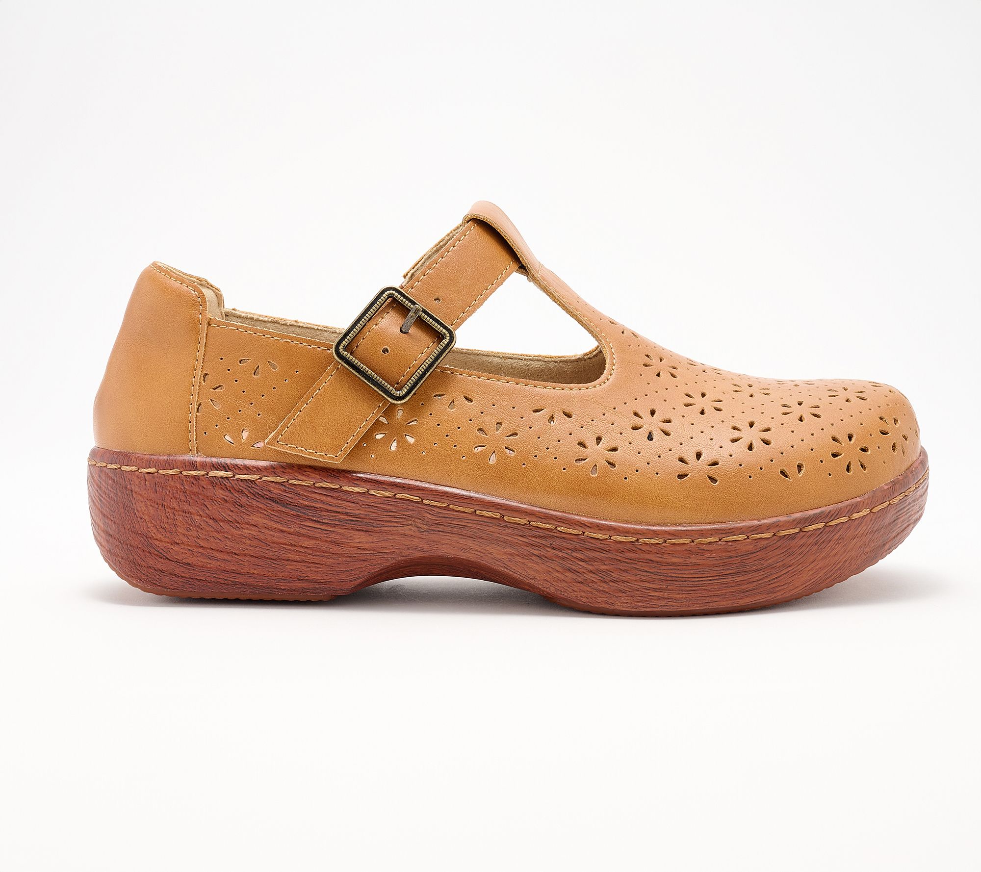 A stroll through your day gets easier thanks to this fisherman clog that blends a leather upper with a soft microsuede footbed for a comfortable experience. The adjustable hook-and-loop strap with a decorative buckle makes it a cinch to find your perfect fit, whether you're heading to brunch or walking around town. From Alegria.