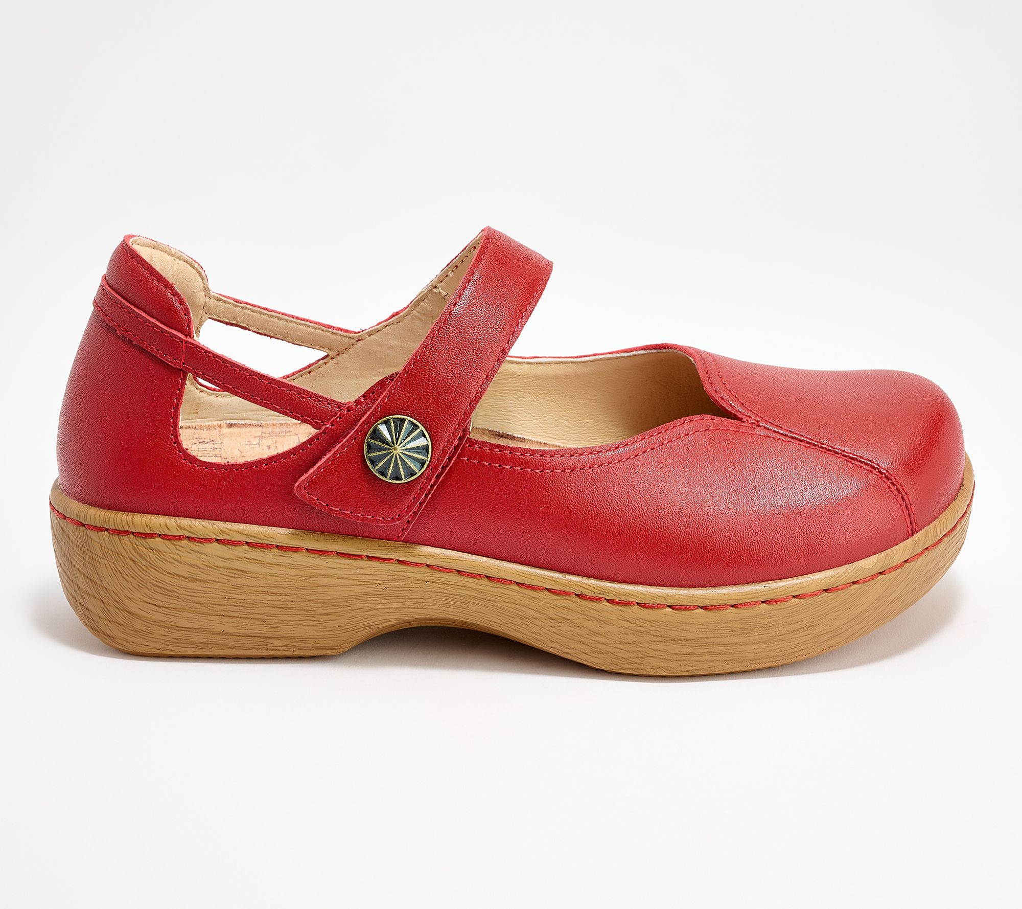 Whether you're headed to work, out for errands, or relaxing with friends, these Mary Janes deliver all-day comfort with their padded collar and supportive, removable microsuede footbed. The adjustable hook-and-loop strap offers a secure fit, while the leather upper keeps your look polished from morning to night. From Alegria.