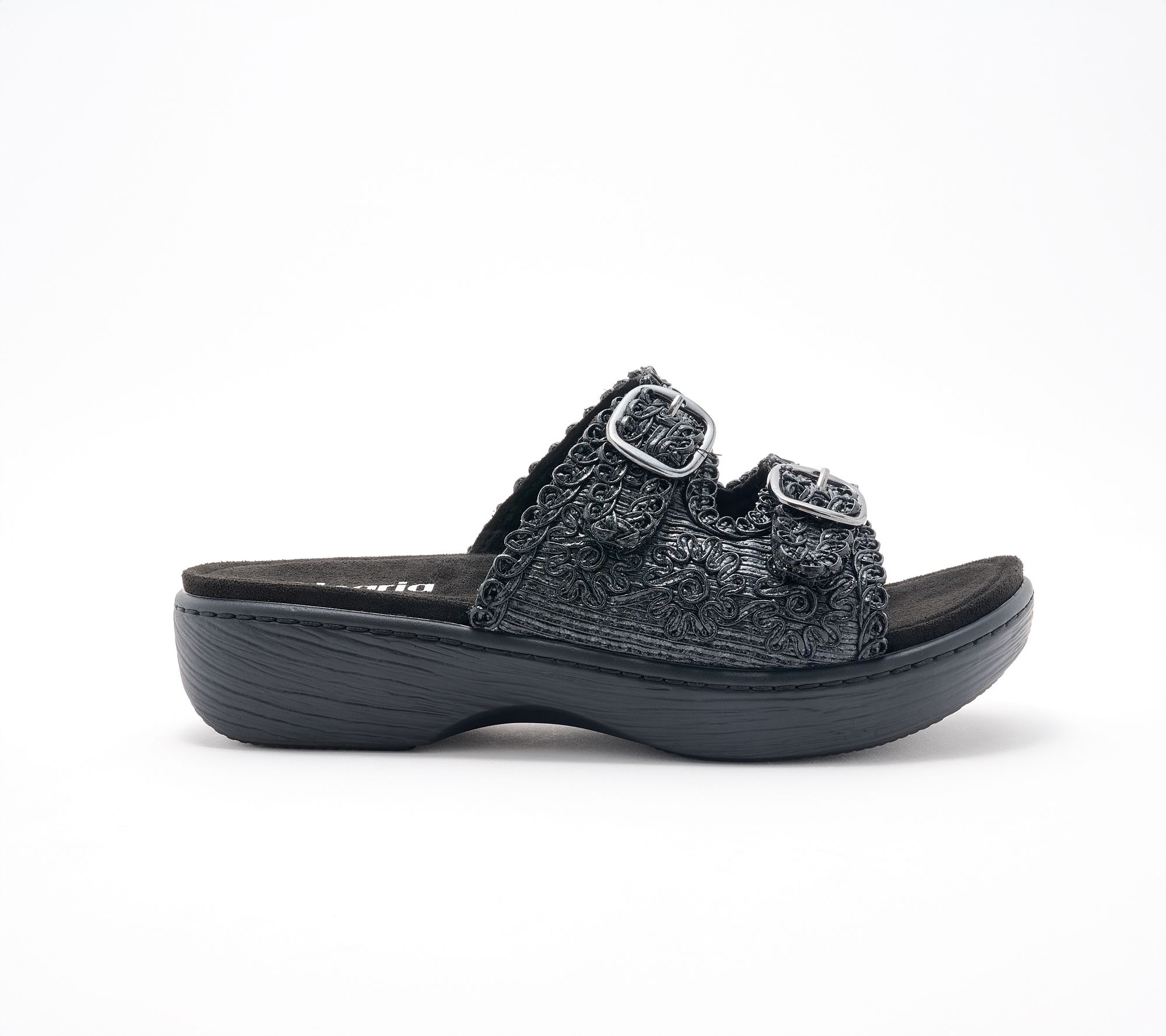 Alegria Raffia Adjustable Buckle Slide Sandals - Oona