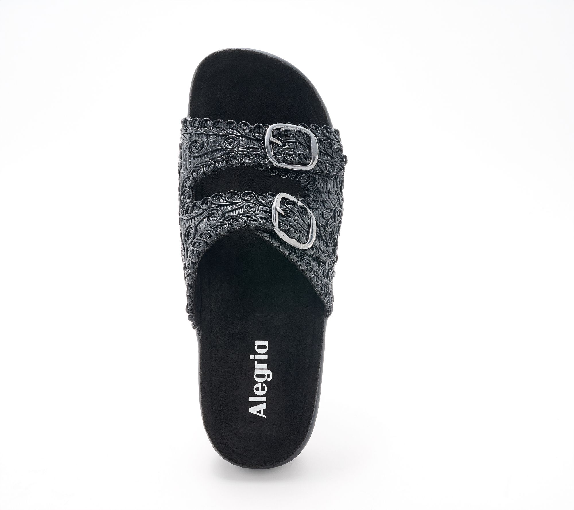 Breeze through outdoor gatherings or relaxed afternoons with these raffia double buckle slide sandals, where an adorable braided upper and two adjustable hook-and-loop straps create a customized fit that's as easy as summer should be. The microsuede footbed adds a touch of softness, making them ideal for slipping on whenever comfort and style are both top priorities. From Alegria.